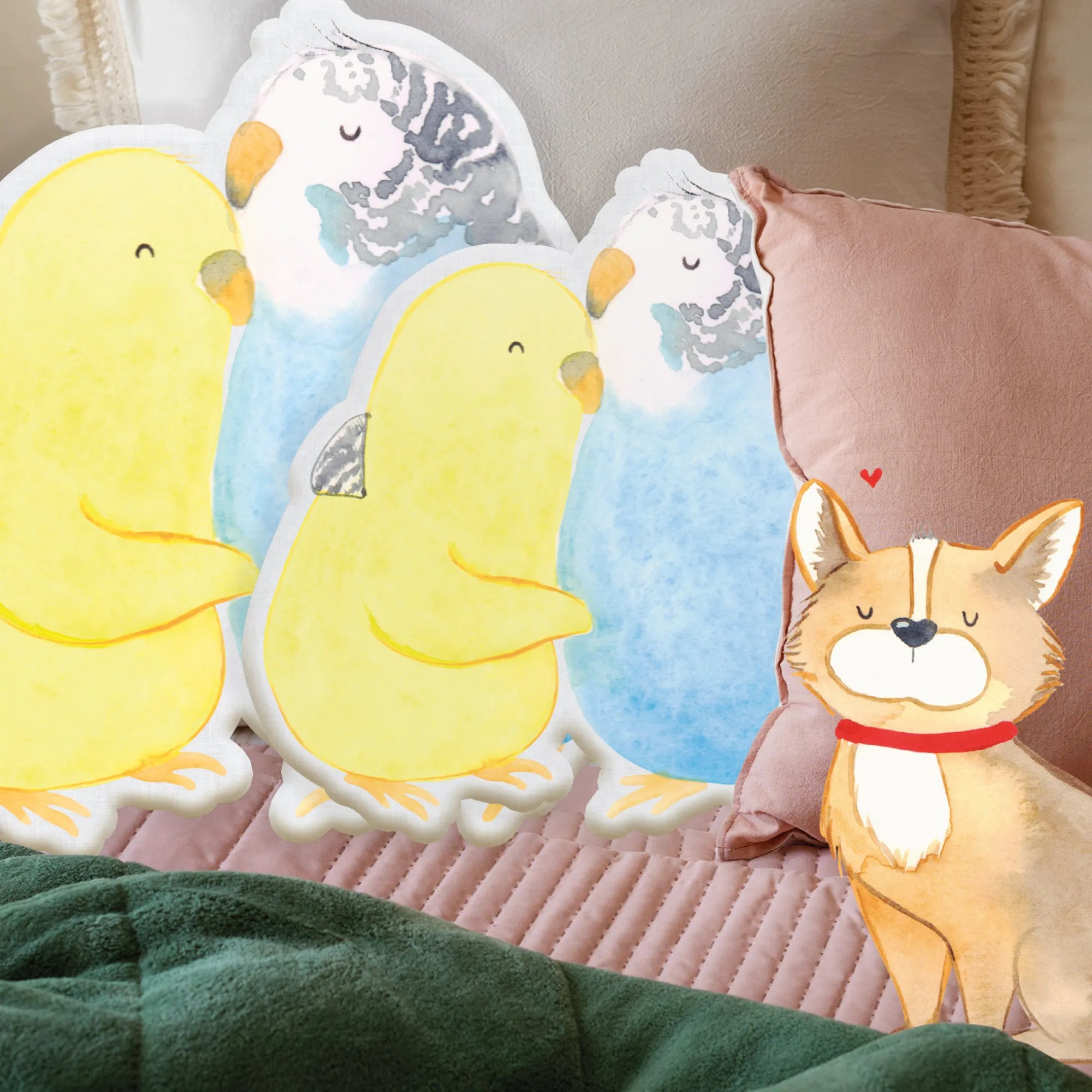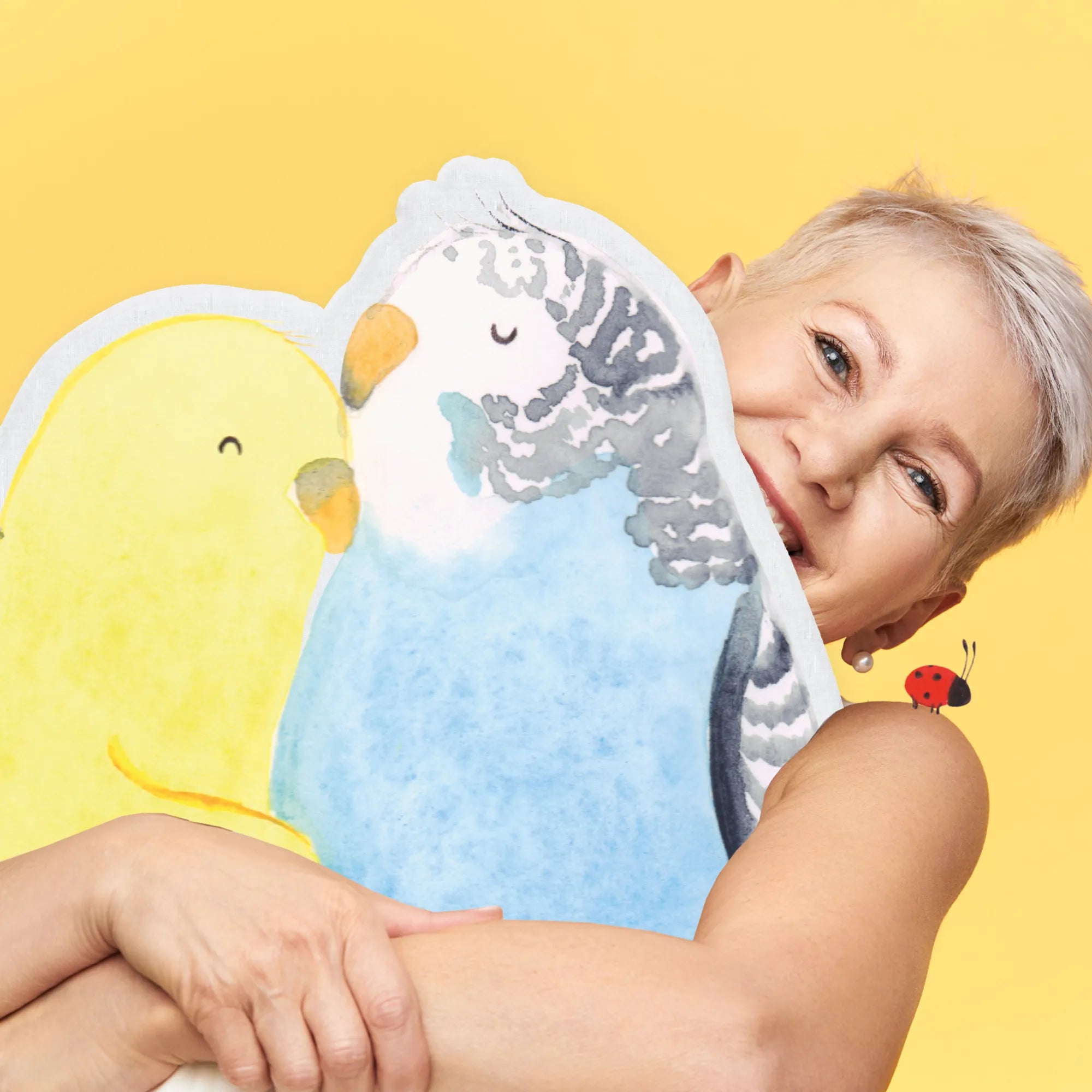 Verschenke ein Stück Geborgenheit und zeige: Du bist nicht allein – mit dem Kuschelkissen „Wellensittich Liebe“ von Mr. & Mrs. Panda.