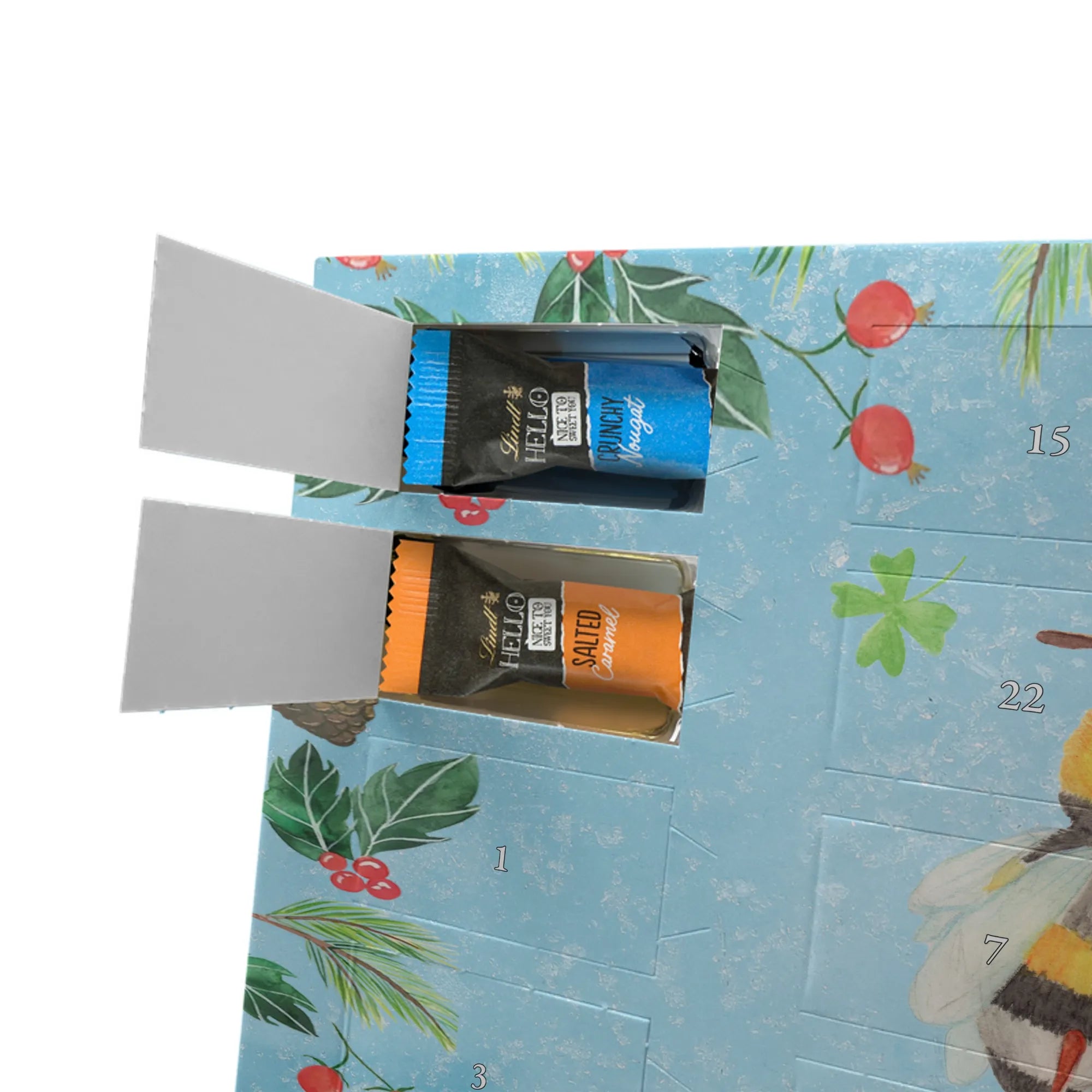 Dieses entzückende Motiv zeigt zwei handgezeichnete Bienen, die Verbundenheit und Freude ausstrahlen. Ob als Geschenk für die Freundin, Geschenk für den Freund, zum Jahrestag, Valentinstag oder Hochzeitstag – dieser Schokoladen Adventskalender ist ein herzlicher Liebesgruß, der Schmetterlinge im Bauch zaubert.