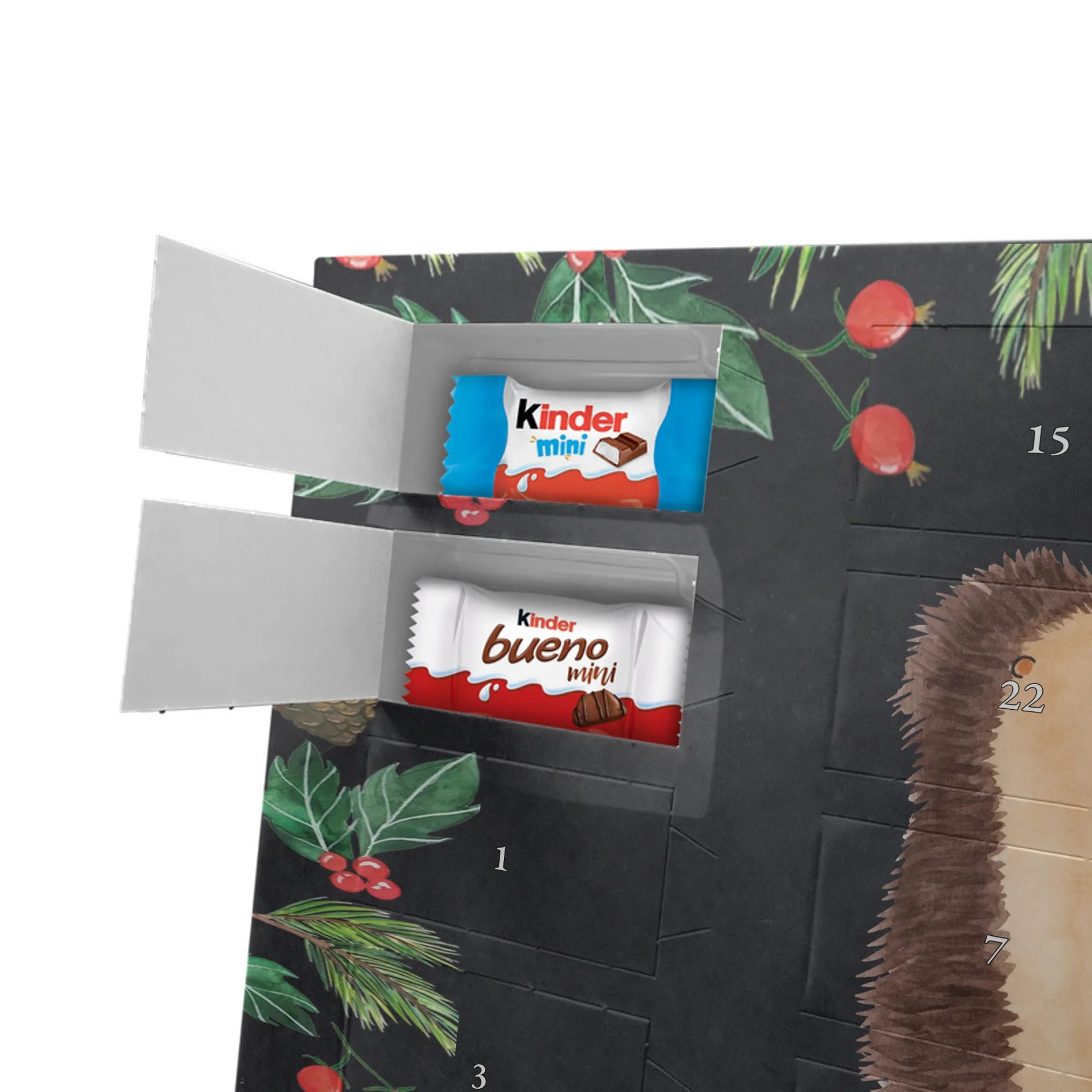 Schoko Adventskalender von Mr. & Mrs. Panda – die charmante Art, sich oder anderen die Adventszeit zu versüßen. Der Kalender ist bedruckt mit wunderschönen Motiven & Sprüchen von Mr. & Mrs. Panda und nicht personalisierbar. Wir legen Wert auf brillante Druckqualität mit seidenmatter Oberflächenveredelung sowie auf bedruckte Seitenflächen für ein stimmiges Gesamtbild. Maße: 355 mm x 245 mm x 11 mm. Besonders praktisch: kann aufgehängt oder aufgestellt werden und passt so in jede Wohnung. Gefüllt mit Markenname Schokolade: Adventskalender gefüllt mit kinder® Schokolade. Inhalt: kinder® Schoko-Bons, kinder® Bueno mini und kinder® Schokolade mini. Die 24 Türchen sind mit kleinen Schoko-Überraschungen bestückt und schaffen jeden Tag Vorfreude. Ob als Geschenk für Kinder, Partner oder als nette Aufmerksamkeit für Kolleginnen und Kollegen – dieser Kalender macht Freude. Robust, schön gestaltet und sofort einsatzbereit für die süßeste Zeit des Jahres!