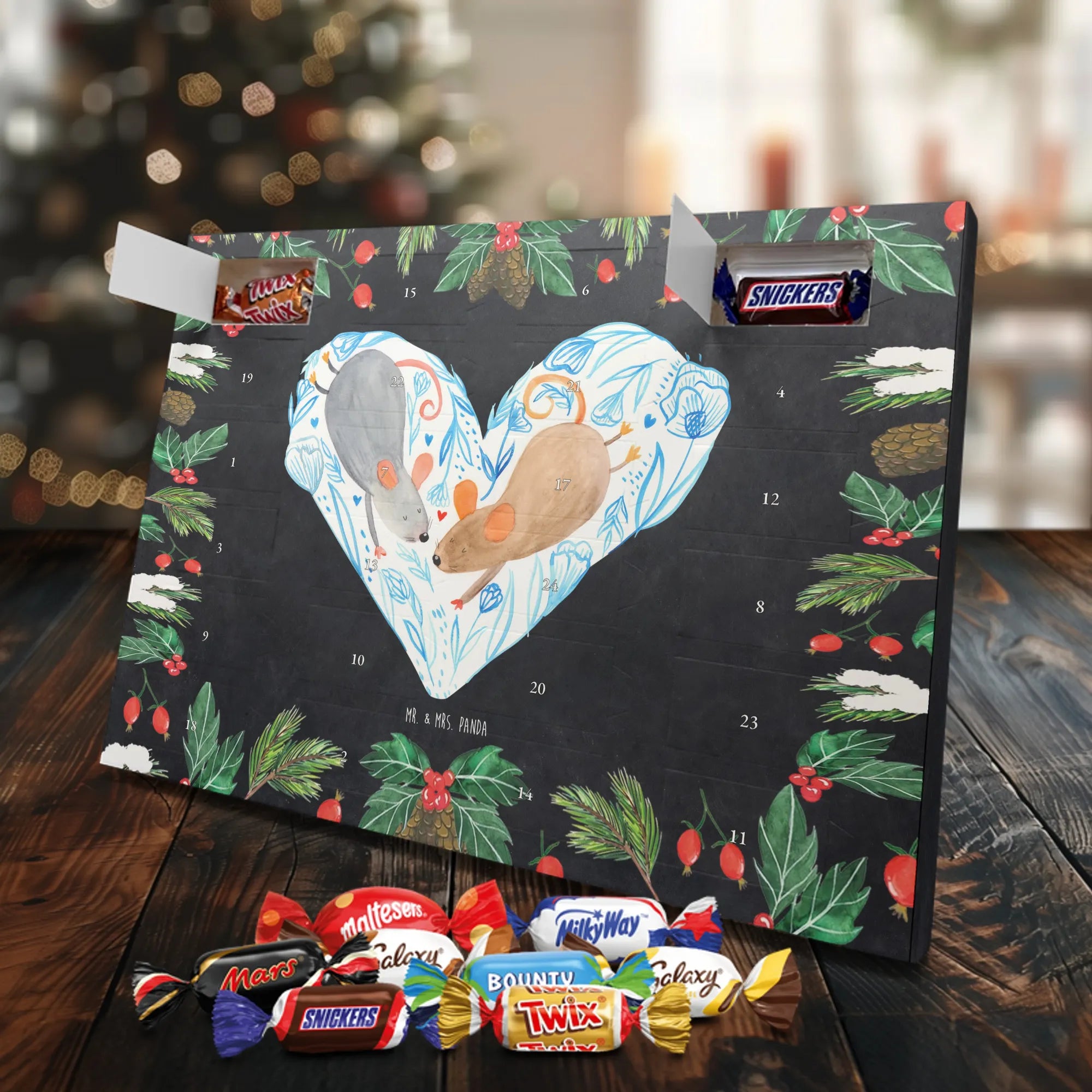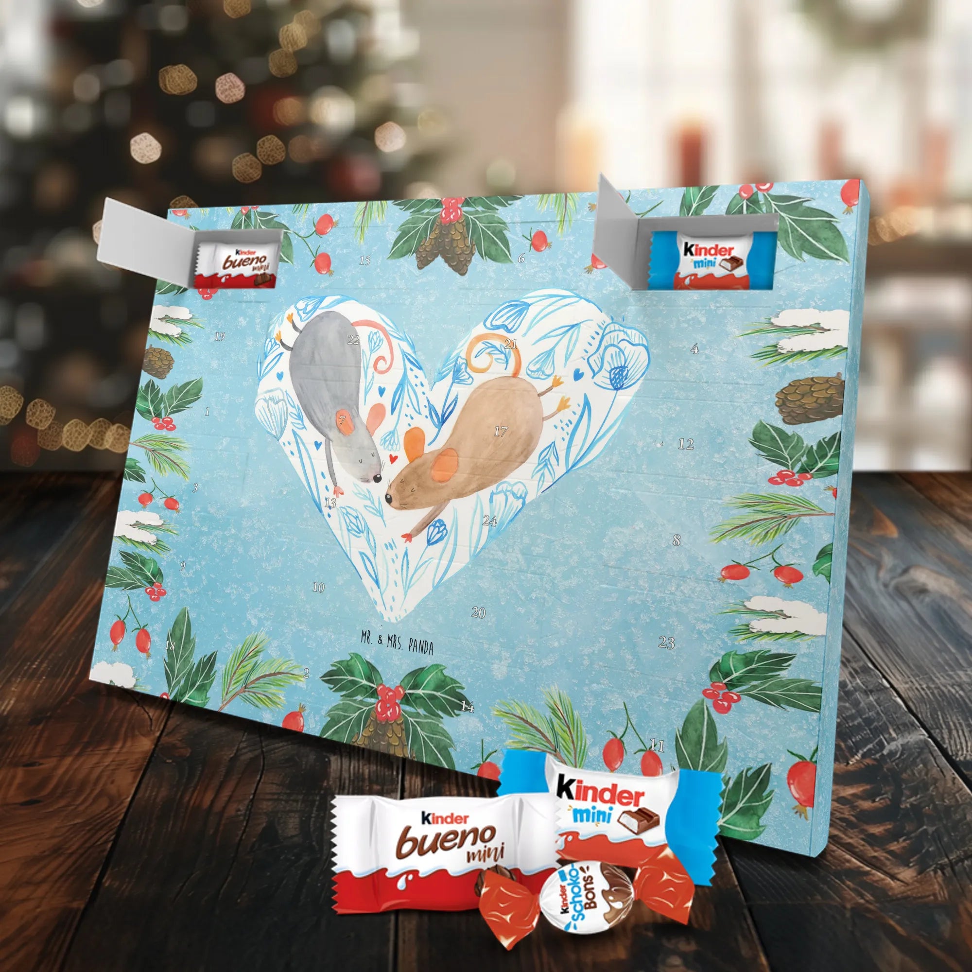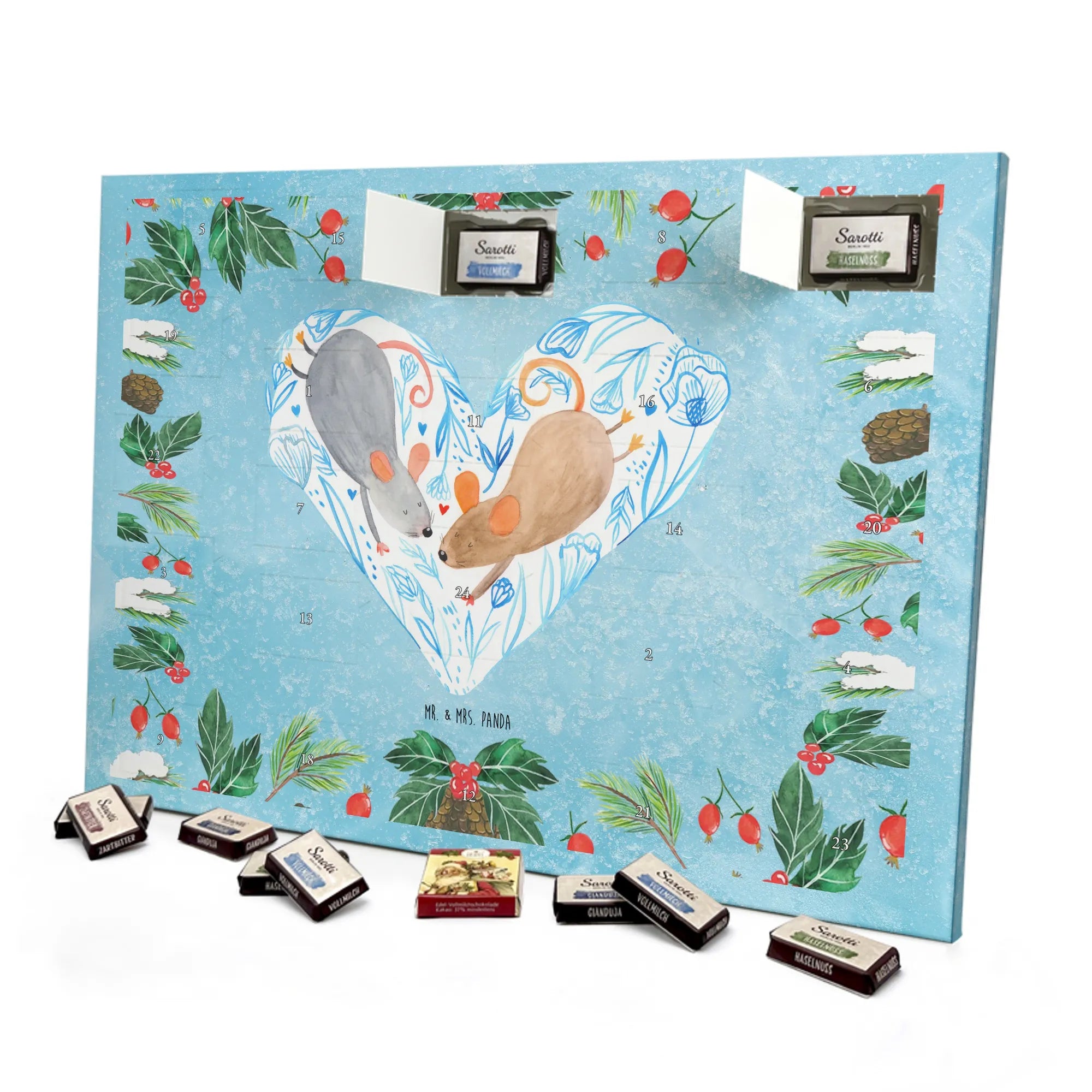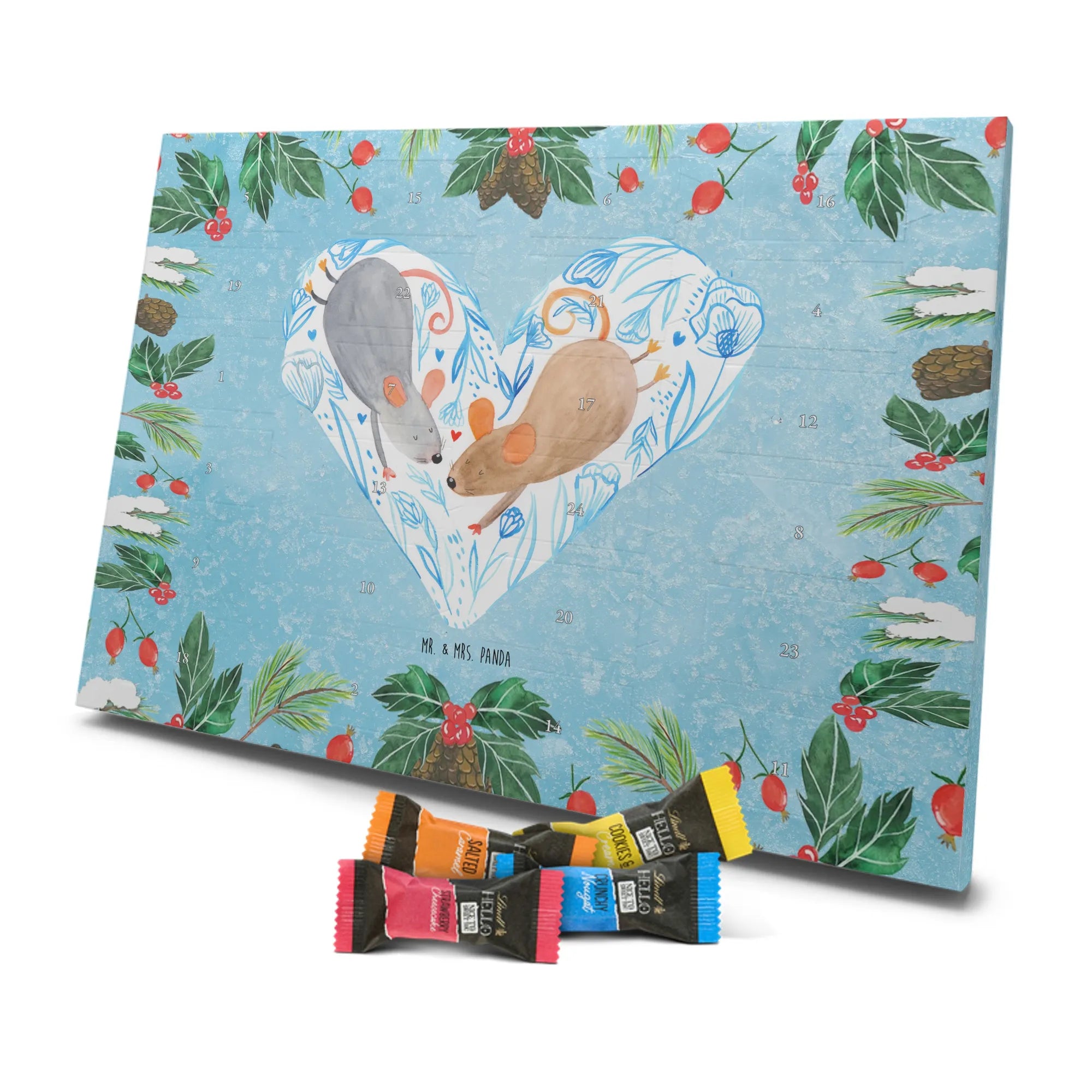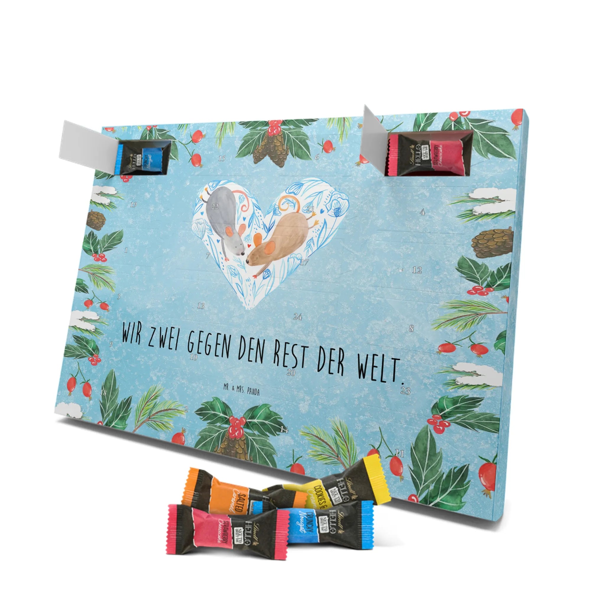 Schokoladen-Weihnachtskalender Mäuse Herz - Classic - mit Spruch - Eisblau