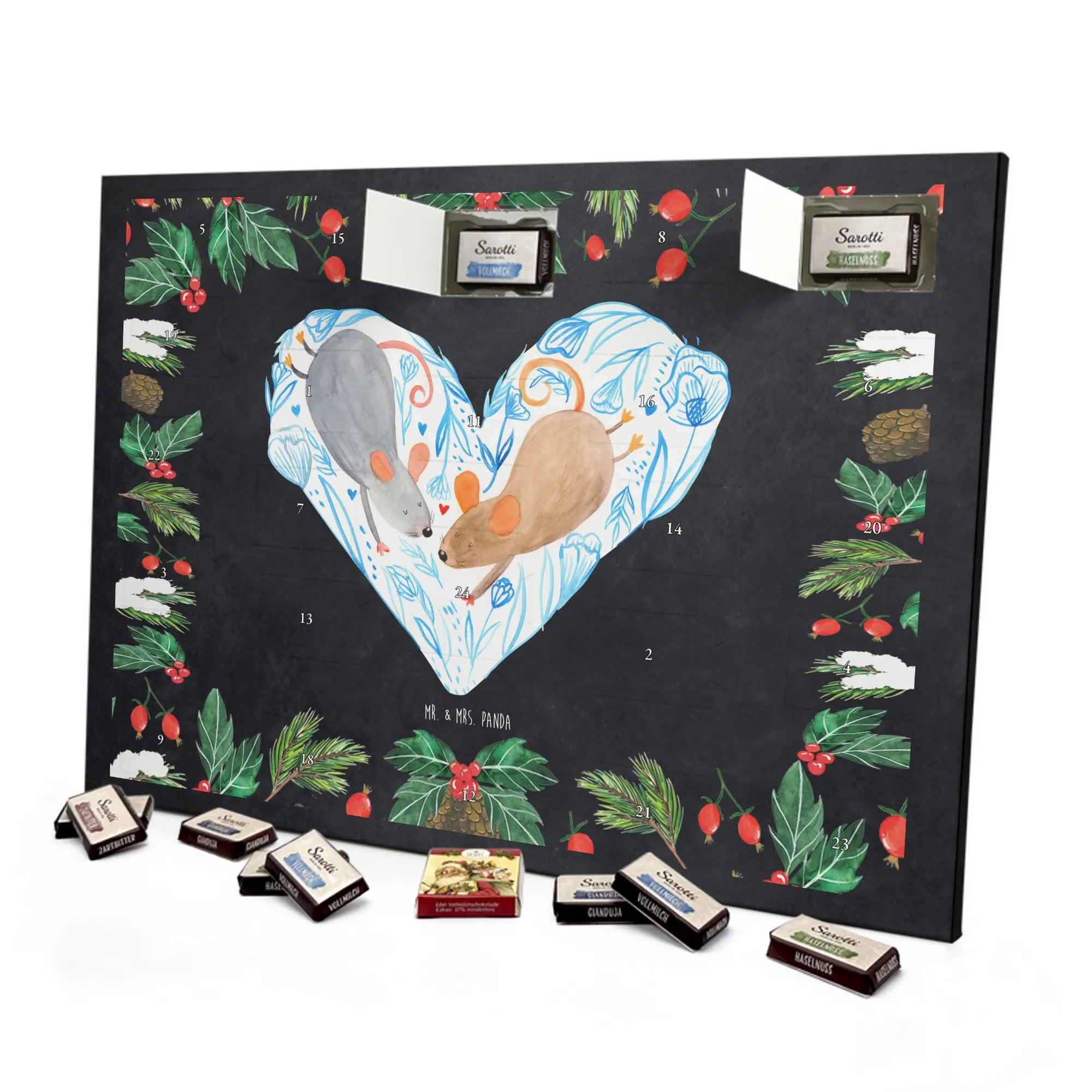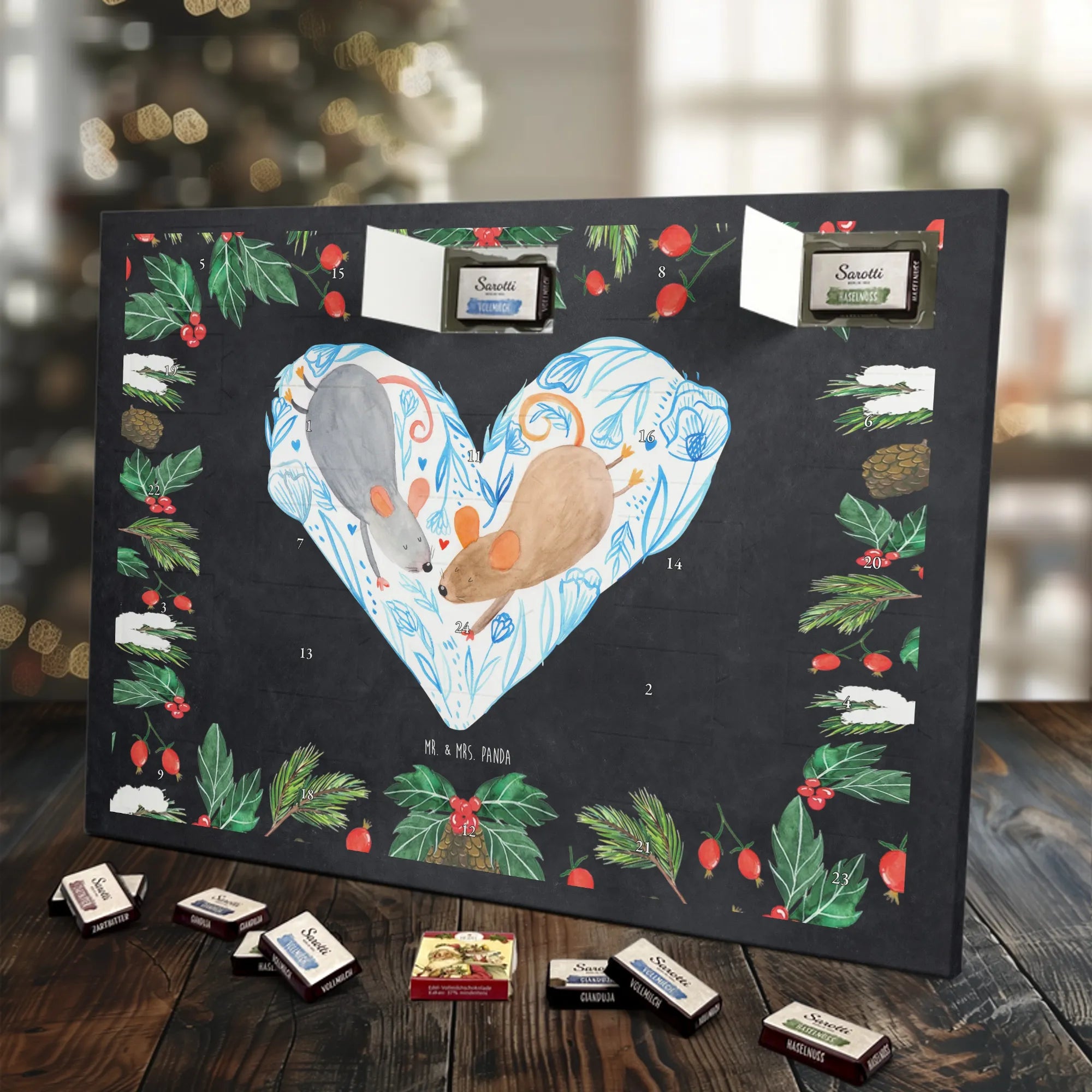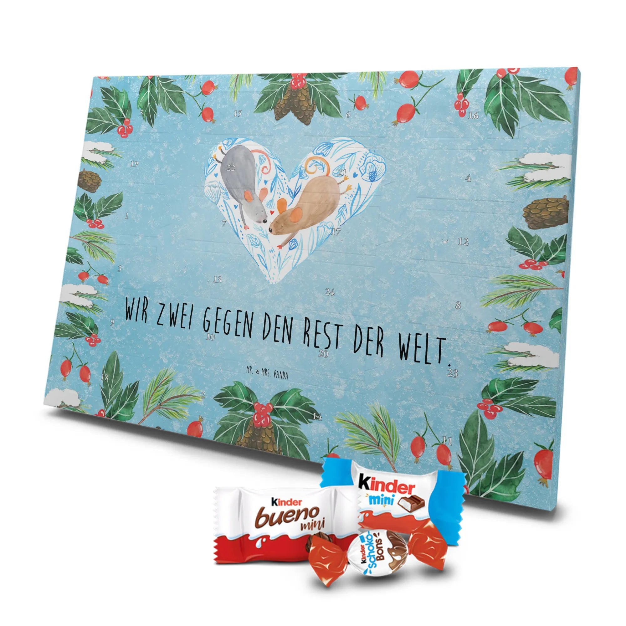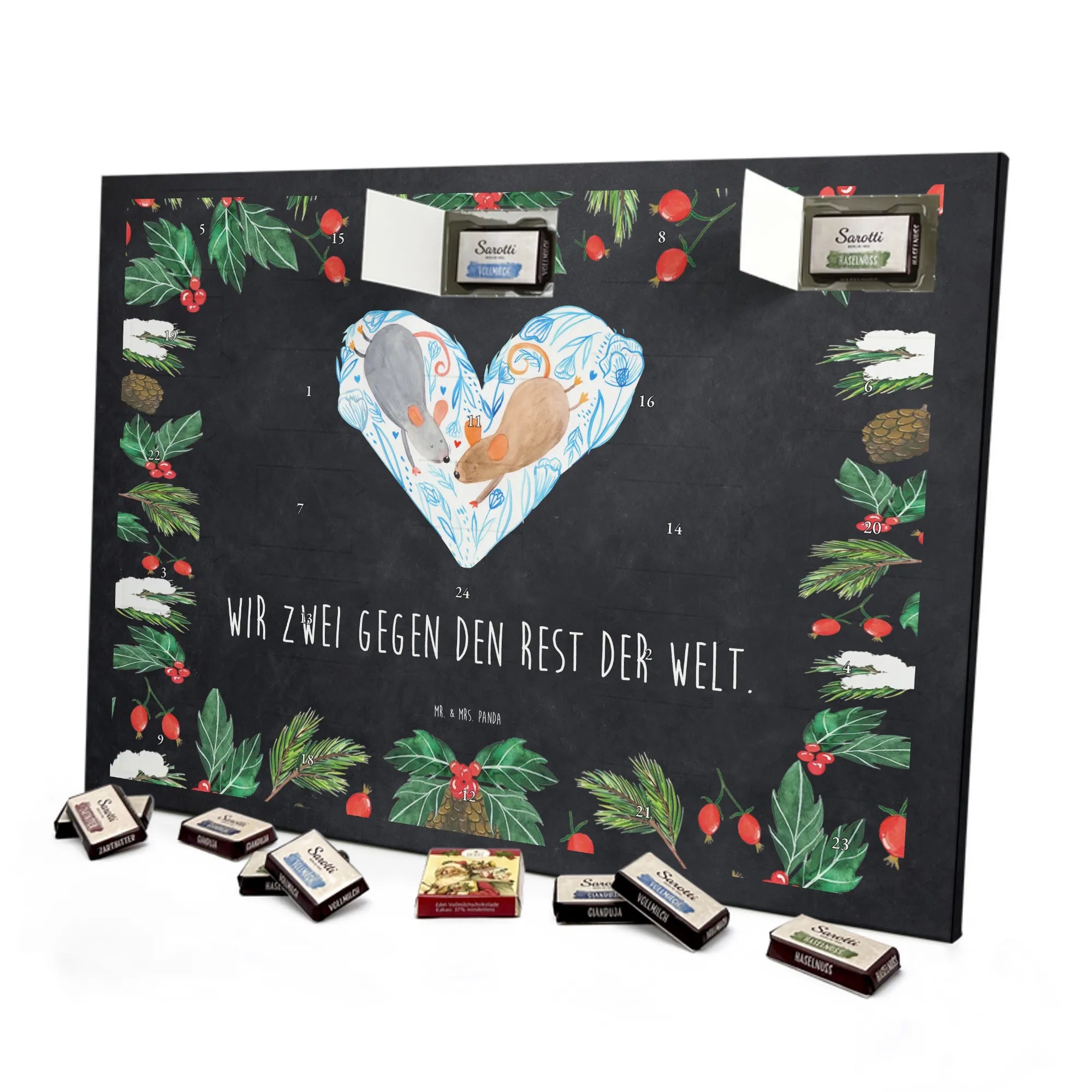 Schokoladen-Weihnachtskalender Mäuse Herz - Classic - mit Spruch - Eisblau