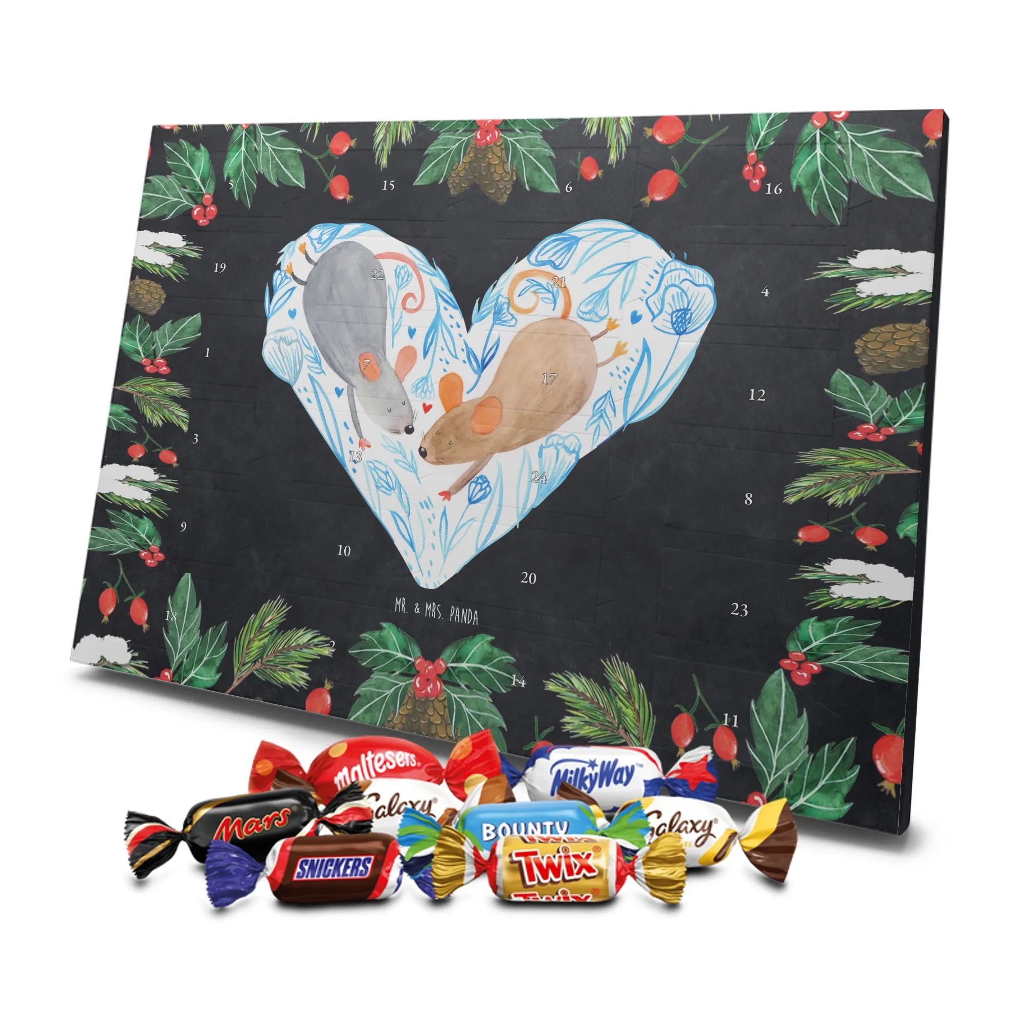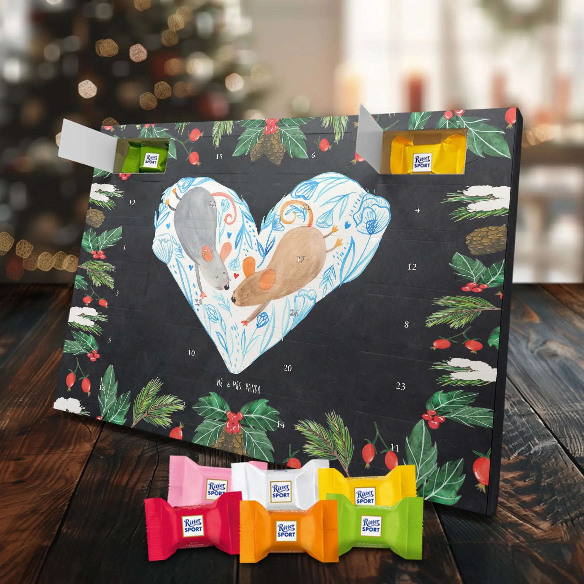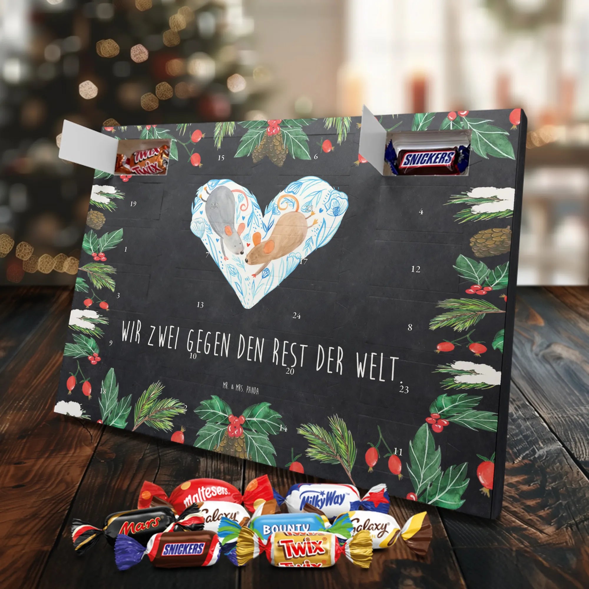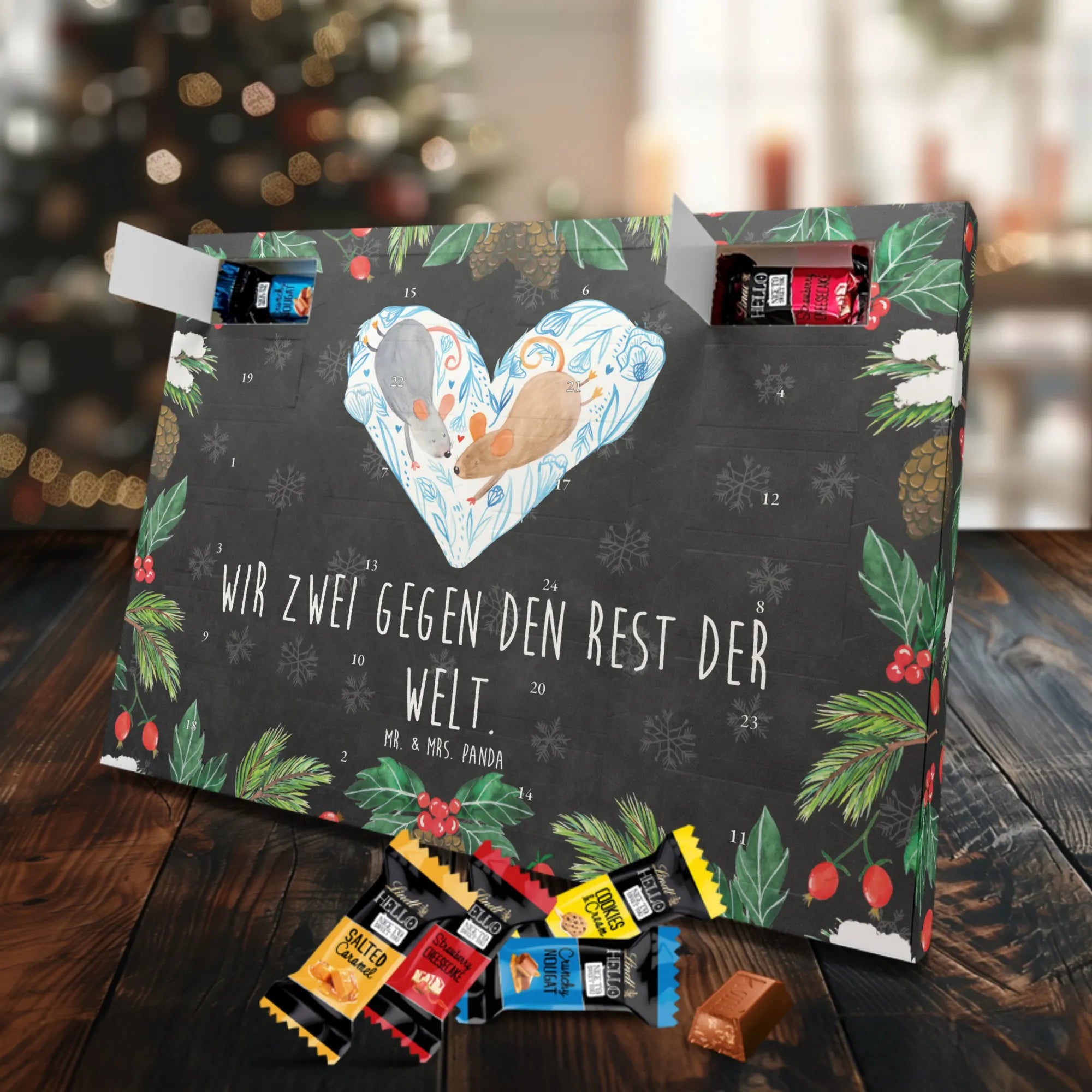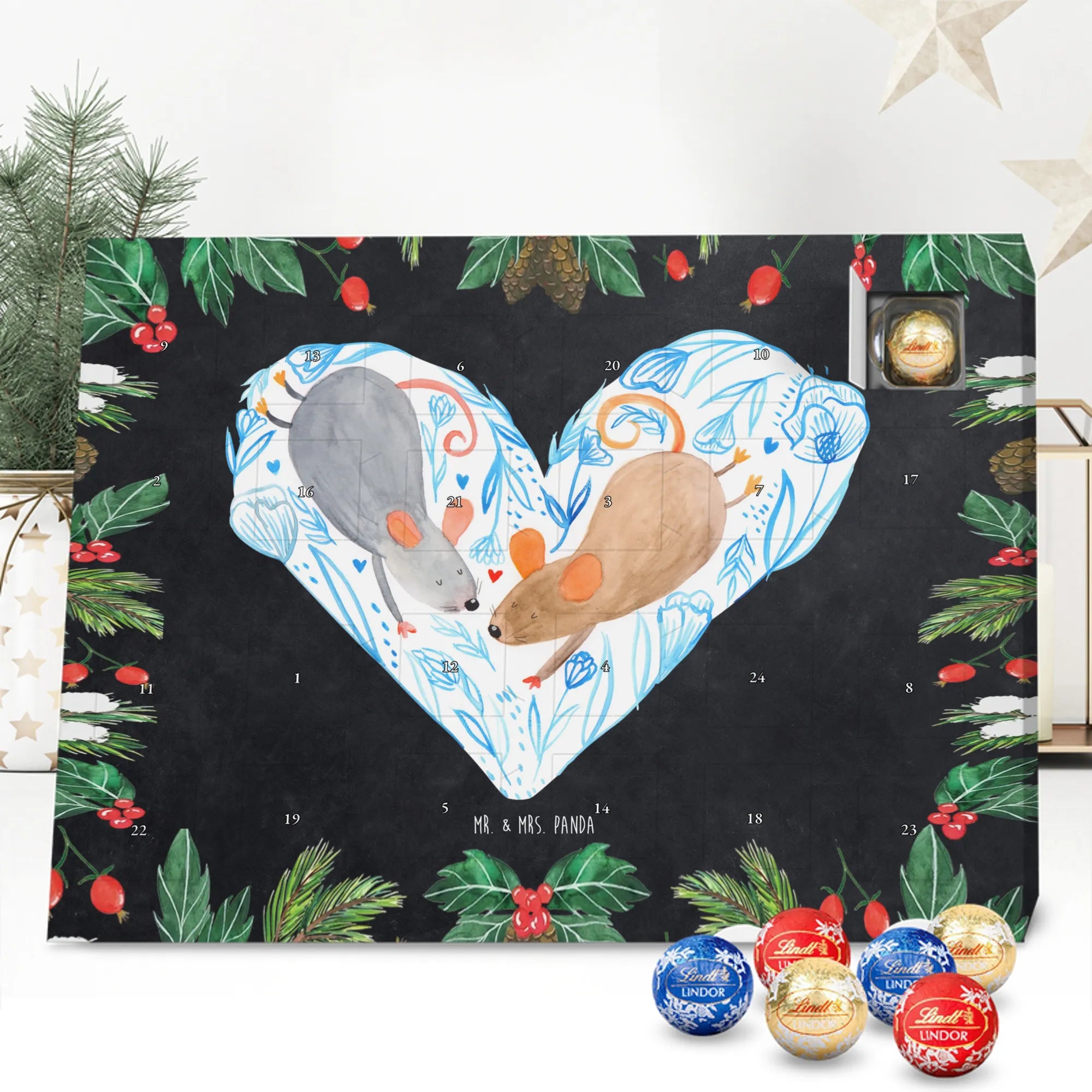 Schokoladen-Weihnachtskalender Mäuse Herz - Classic - mit Spruch - Eisblau