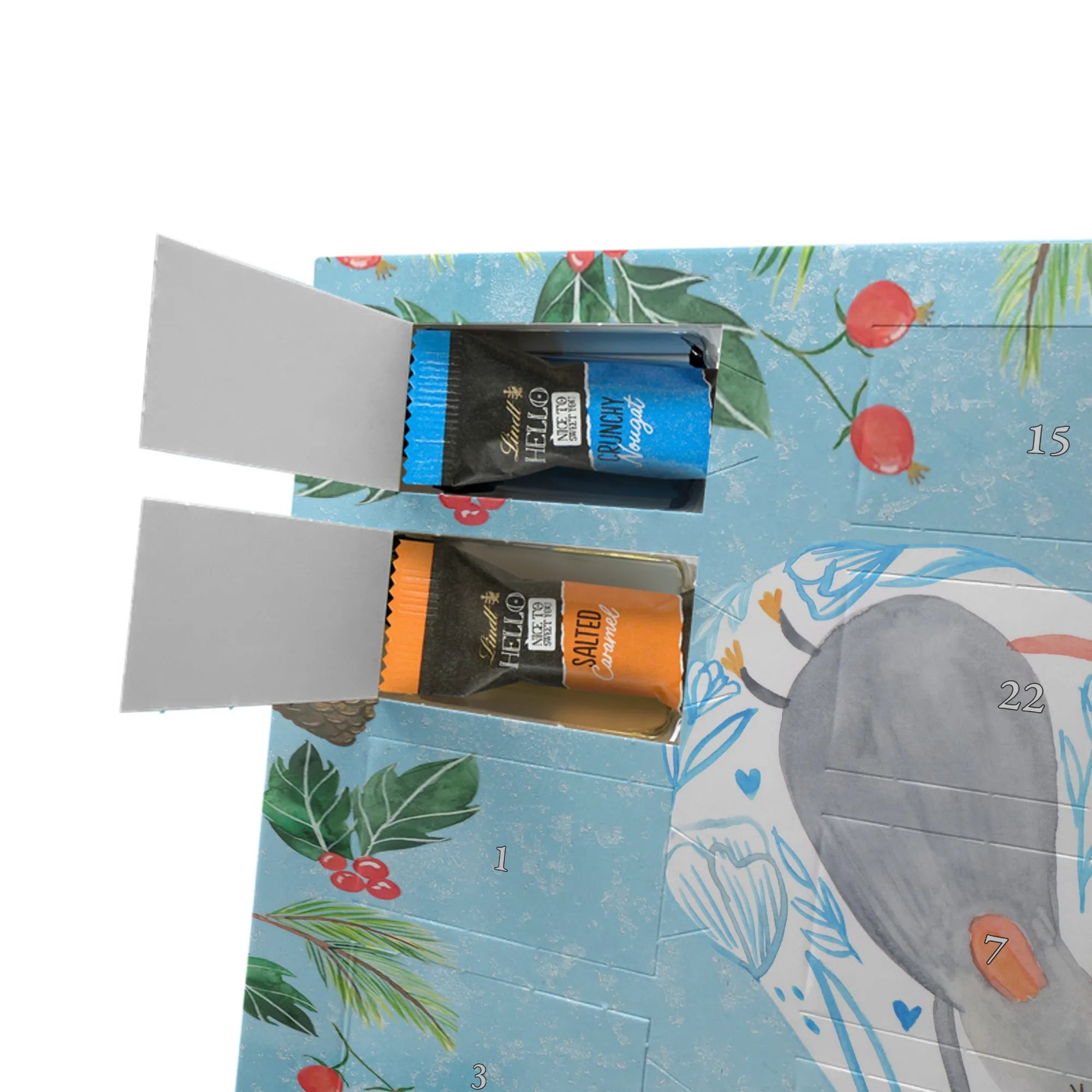 Entdecke den charmanten Schokoladen Adventskalender von Mr. & Mrs. Panda – ein kleines Kunstwerk für alle Schoko-Liebhaber. Der Schoko-Adventskalender ist mit liebevollen Illustrationen und kurzen Sprüchen bedruckt und verbreitet gemütliche Vorfreude auf Weihnachten. Er ist nicht personalisierbar, aber durch die brillante Druckqualität und die seidenmatte Oberflächenveredelung ein echtes Hingucker-Produkt. Auch die Seitenflächen sind bedruckt, was dem Kalender ein rundum schönes Erscheinungsbild verleiht. Maße: 325 mm x 225 mm x 27 mm. Das praktische Design erlaubt es, den Kalender aufzuhängen oder aufzustellen. Gefüllt mit Lindt Hello Schokolade: 24 einzeln verpackte Mini Sticks in vier leckeren Sorten – Karamell-Schokoladenkuchen, Kekse, Knuspriger Nougat und Erdbeer-Cheesecake. Zutaten sind u. a. Zucker, Kakaobutter, Vollmilchpulver, Haselnüsse und weitere Zutaten; Allergene: Milcheiweiß, Milchzucker, Soja, Weizen, Haselnüsse; kann Spuren von Mandeln und anderen Schalenfrüchten enthalten. Ideal als Geschenk oder zum Selbernaschen – einfach jeden Tag ein Türchen öffnen und genießen.