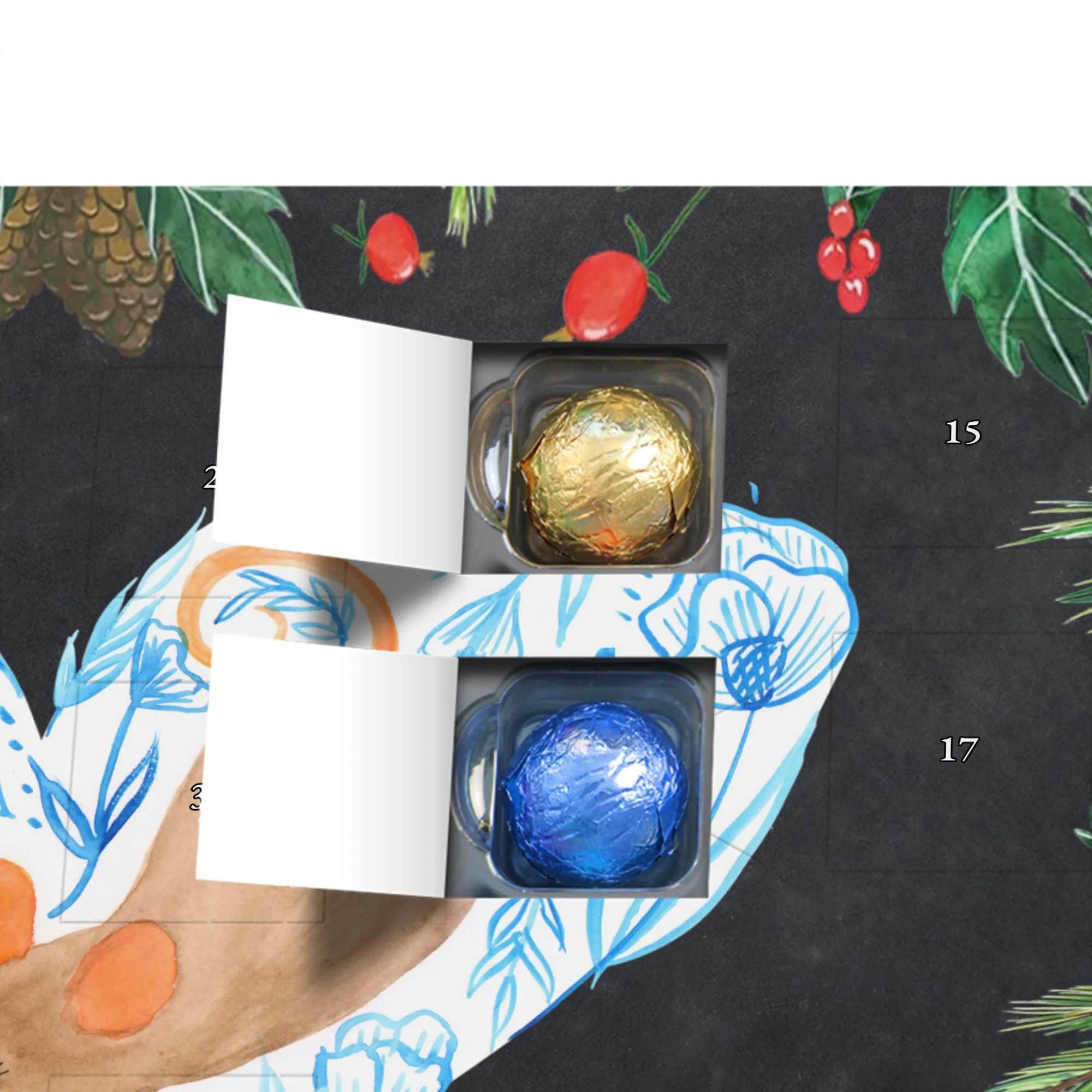 Wunderschöner Adventskalender Schokolade von Mr. & Mrs. Panda – die perfekte Mischung aus Charme und Genuss. Unser Adventskalender Schokolade ist liebevoll gestaltet und bedruckt mit wunderschönen Motiven & Sprüchen von Mr. & Mrs. Panda, die jede Adventszeit verschönern. Der Kalender ist nicht personalisierbar, aber dafür mit viel Liebe zum Detail produziert. Er besticht durch brillante Druckqualität mit seidenmatter Oberflächenveredelung und bedruckte Seitenflächen, die für eine elegante Optik sorgen. Maße: 233 mm x 178 mm x 24 mm. Durch seine stabile Form kannst du ihn aufstellen oder an die Wand hängen – Besonderheit: kann aufgehängt oder aufgestellt werden. Gefüllt mit MARKENNAMEN Schokolade und gefüllt mit leckeren Schokoladenkugeln, bietet er jeden Tag eine leckere Überraschung. Bitte beachte die besonderen Hinweise: (Kann Spuren von Haselnüssen, Mandeln, Gluten und Soja enthalten!), kühl und trocken lagern. Ob als kleines Geschenk, Tischdeko oder Adventsüberraschung für Kinder und Erwachsene – dieser Kalender bringt ein Lächeln in die Vorweihnachtszeit. Viel Spaß beim täglichen Türchenöffnen wünscht dir Mr. & Mrs. Panda!