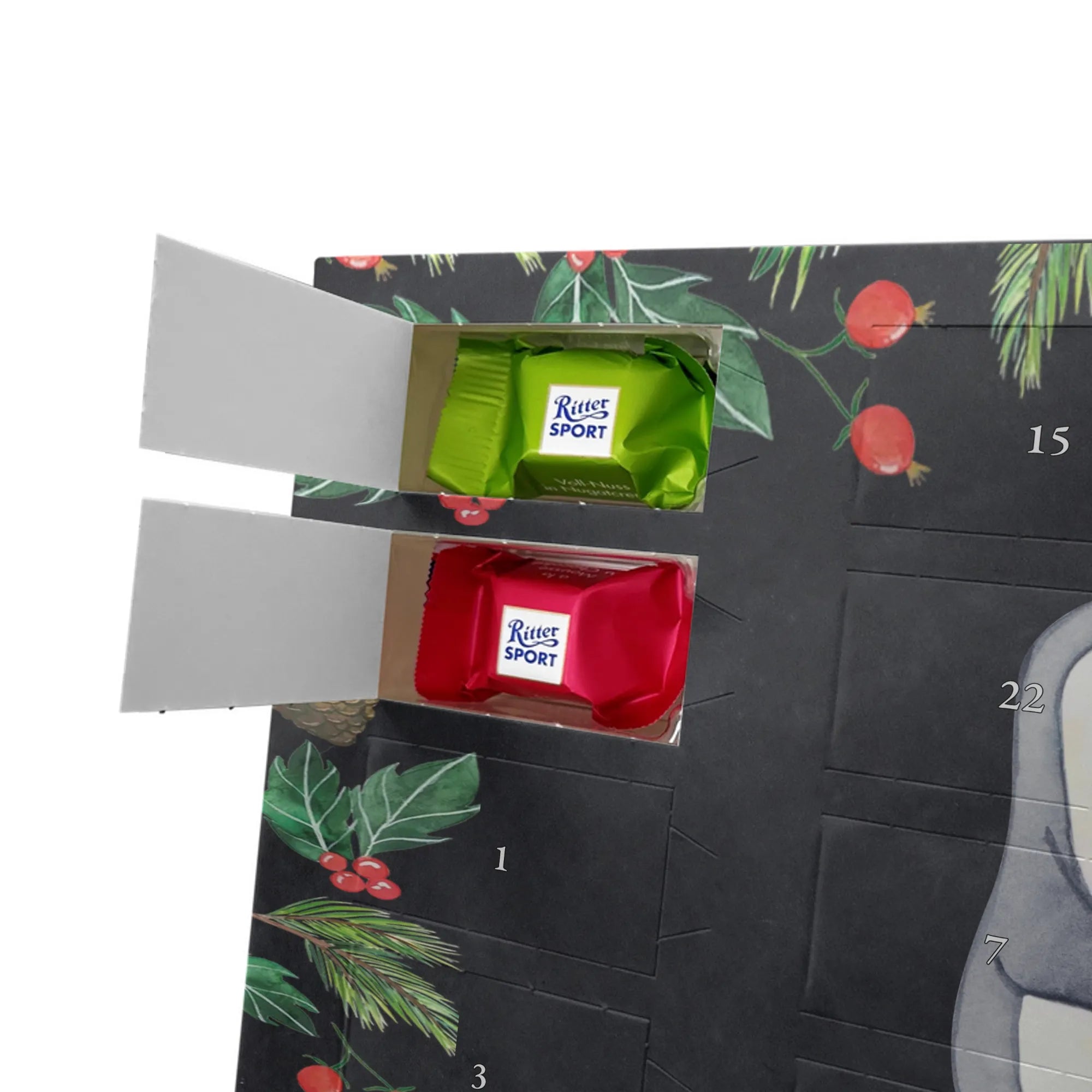 Adventskalender Schokolade von Mr. & Mrs. Panda – eine liebevolle Kombination aus hübschem Design und süßem Inhalt. Der Kalender ist bedruckt mit wunderschönen Motiven & Sprüchen von Mr. & Mrs. Panda und besticht durch brillante Druckqualität mit seidenmatter Oberflächenveredelung. Die Seitenflächen sind ebenfalls bedruckt, wodurch der Kalender rundum ein Hingucker ist. Er ist nicht personalisierbar. Maße: 325 mm x 225 mm x 27 mm. Besonders praktisch: Du kannst ihn sowohl aufgehängt als auch aufgestellt nutzen, je nachdem, wo er bei dir am schönsten wirkt. Gefüllt ist der Kalender mit Ritter Sport Schokowürfeln in verführerischen Sorten – Mousse au Chocolat, Schoko Crisp, Voll-Nuss in Nougatcreme, Karamell Duo, Joghurt und Erdbeer-Joghurt. Wichtiger Hinweis: Es handelt sich um einen Kalender gefüllt mit Ritter Sport Schokolade, nicht um einen Kalender der Marke Ritter Sport. Schenke deinen Liebsten oder dir selbst tägliche Schokoglücksmomente mit diesem charmanten Adventskalender.