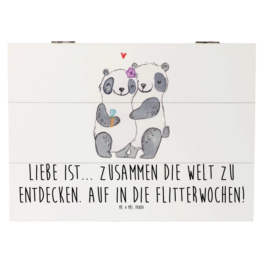 Die wunderschöne Holzkiste von Mr. & Mrs. Panda ist das perfekte Geschenk für frischvermählte Paare, die ihre unvergesslichen Momente aus den Flitterwochen sicher aufbewahren möchten. Diese liebevoll gestaltete Erinnerungskiste, bedruckt mit dem entzückenden Motiv "Flitterwochen" und dem romantischen Slogan "Liebe ist... zusammen die Welt zu entdecken. Auf in die Flitterwochen!", ist nicht nur praktisch, sondern auch ein zauberhaftes Dekorationsstück.