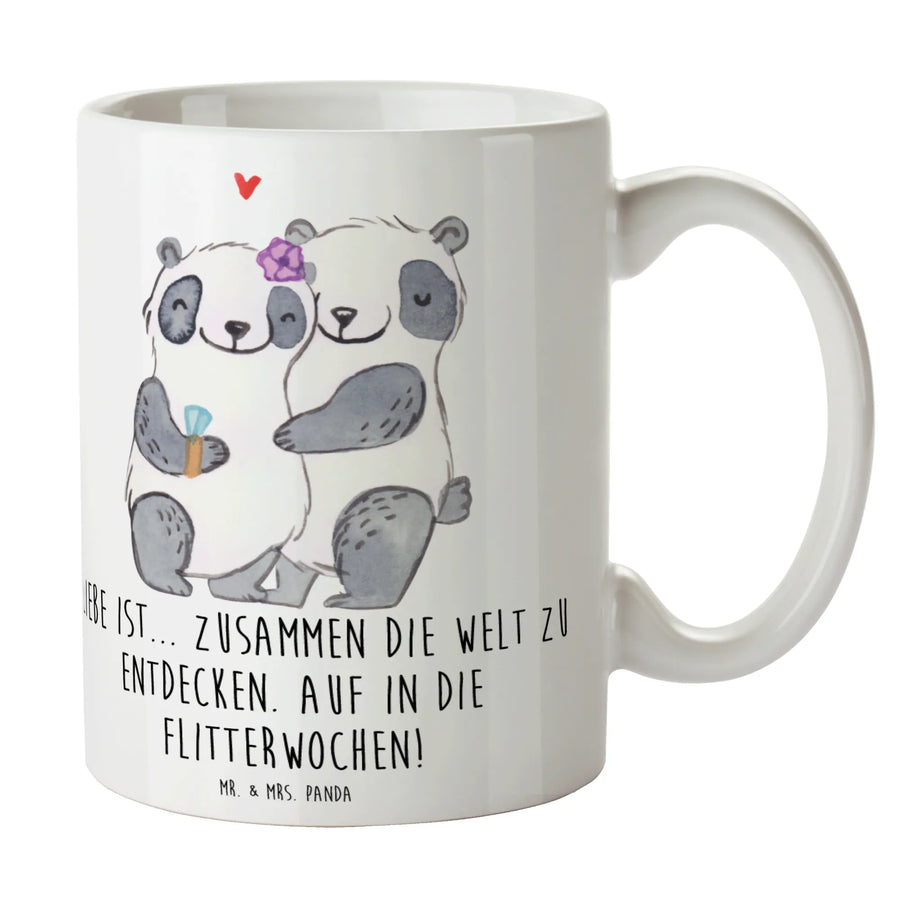 Die wunderschöne Tasse "Flitterwochen" von Mr. & Mrs. Panda ist das perfekte Geschenk für frisch verheiratete Paare und die, die es bald werden. Mit dem liebevollen Spruch "Liebe ist... zusammen die Welt zu entdecken. Auf in die Flitterwochen!" wird jeder Morgen zu einem besonderen Erlebnis.