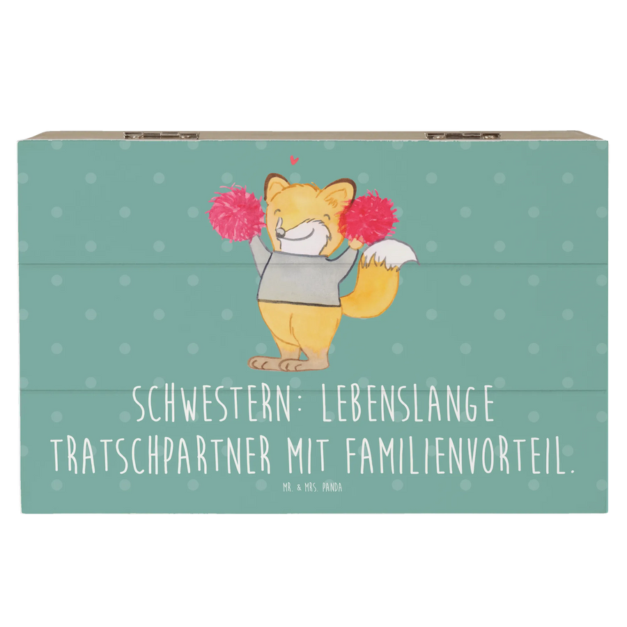 Die wunderschöne Holzkiste von Mr. & Mrs. Panda ist das perfekte Geschenk für Schwestern und ein echtes Highlight für jeden Anlass! Mit dem bezaubernden Motiv "Schwestern: Lebenslange Tratschpartner mit Familienvorteil" wird diese liebevolle Kiste zu einem unvergesslichen Erinnerungsstück. Ob für den Geburtstag, als Dankeschön oder einfach nur so zwischendurch, diese Schatzkiste bringt Freude und schafft Platz für die wertvollsten Schätze.