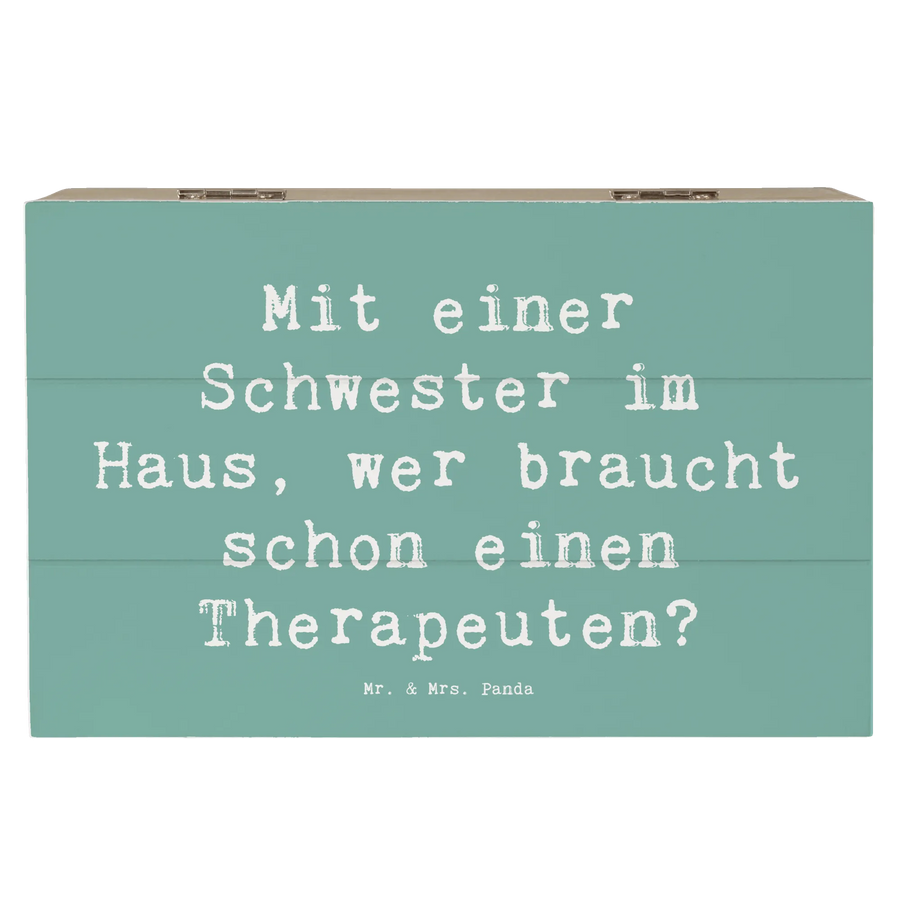 Die wunderschöne Holzkiste von Mr. & Mrs. Panda ist das perfekte Geschenk für alle, die eine besondere Beziehung zu ihrer Schwester haben. Mit dem herzerwärmenden Spruch "Mit einer Schwester im Haus, wer braucht schon einen Therapeuten?" wird diese Kiste nicht nur zum stilvollen Aufbewahrungsort für kleine Schätze, sondern auch zu einem liebevollen Erinnerungsstück.