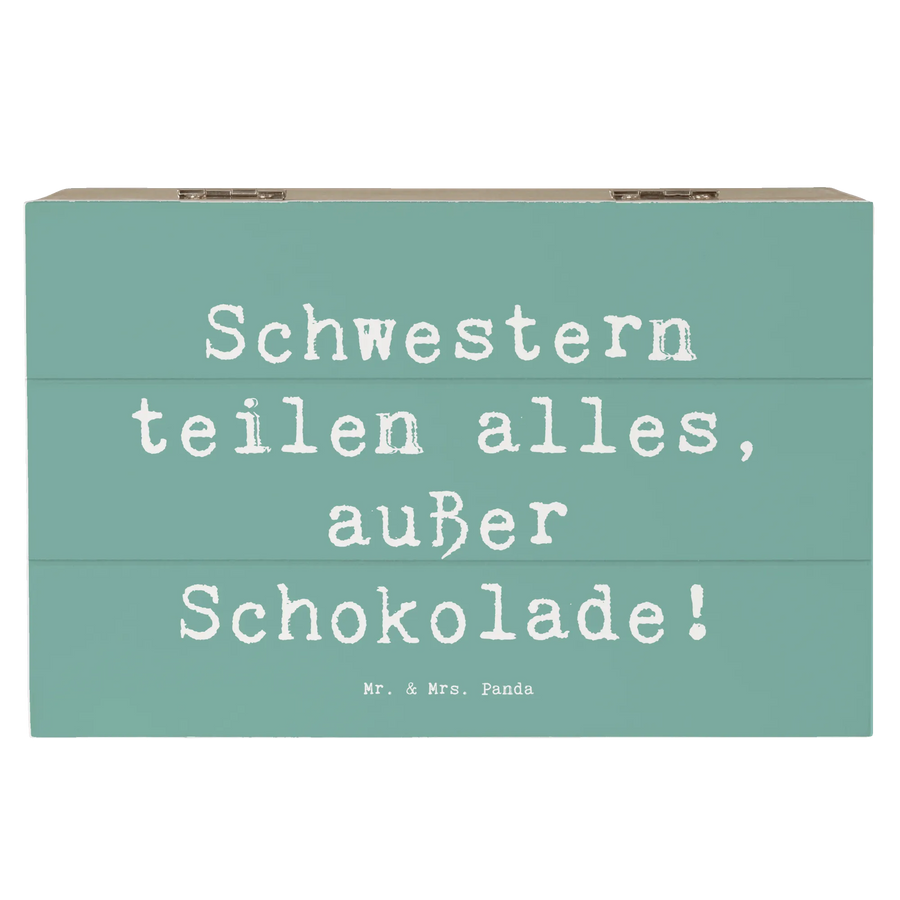 Die Holzkiste von Mr. & Mrs. Panda ist das perfekte Geschenk für Deine Schwester – egal ob für den Geburtstag, den Muttertag oder einfach nur so! Mit ihrem zauberhaften Motiv "Schwestern teilen alles, außer Schokolade!" bringt diese Schatzkiste ein Lächeln auf jedes Gesicht.
