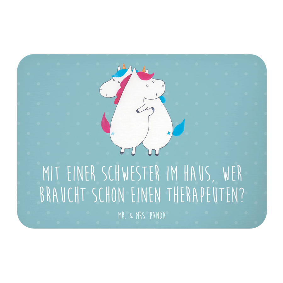 Der Spruch "Mit einer Schwester im Haus, wer braucht schon einen Therapeuten?" fängt das besondere Band zwischen Schwestern perfekt ein und sorgt für ein Schmunzeln jeden Tag. Mit seinen handgezeichneten, bunten Motiven und der angenehmen Oberfläche ist er nicht nur eine praktische Kühlschrankdekoration, sondern auch ein wunderschöner Hingucker.