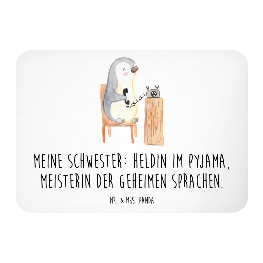 Der Kühlschrankmagnet mit dem süßen Motiv 'Schwester' aus der Familie & Verwandte Kollektion von Mr. & Mrs. Panda ist das perfekte Geschenk für alle, die die besondere Bindung zu ihrer Schwester feiern möchten. Wenn du deiner Schwester zeigen willst, wie wichtig sie für dich ist, dann ist dieser Magnet die ideale Wahl. Der Slogan 'Meine Schwester: Heldin im Pyjama, Meisterin der geheimen Sprachen' bringt mit einem Lächeln alles auf den Punkt.