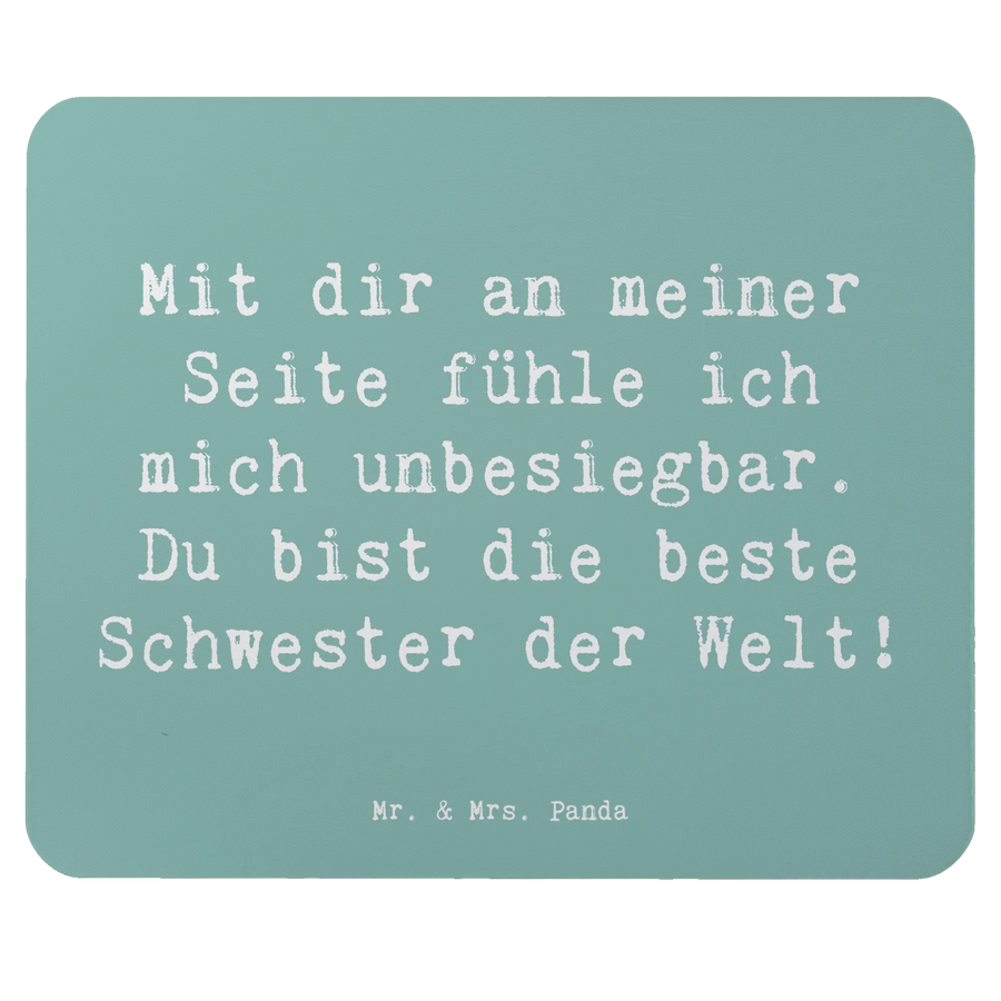 Das Mauspad "Schwester" aus der Dankes-Kollektion von Mr. & Mrs. Panda ist der perfekte Begleiter für deinen Schreibtisch und ein wunderschönes Dankeschön für die beste Schwester der Welt! Mit dem motivierenden Spruch "Mit dir an meiner Seite fühle ich mich unbesiegbar. Du bist die beste Schwester der Welt!" zaubert es jedem beim Arbeiten ein Lächeln ins Gesicht. Es ist nicht nur ein praktisches Stück Computer Zubehör, sondern auch eine liebevolle Aufmerksamkeit, die für jeden Anlass geeignet ist. Sei es zum Geburtstag, zu Weihnachten oder einfach so, um "Danke" zu sagen!