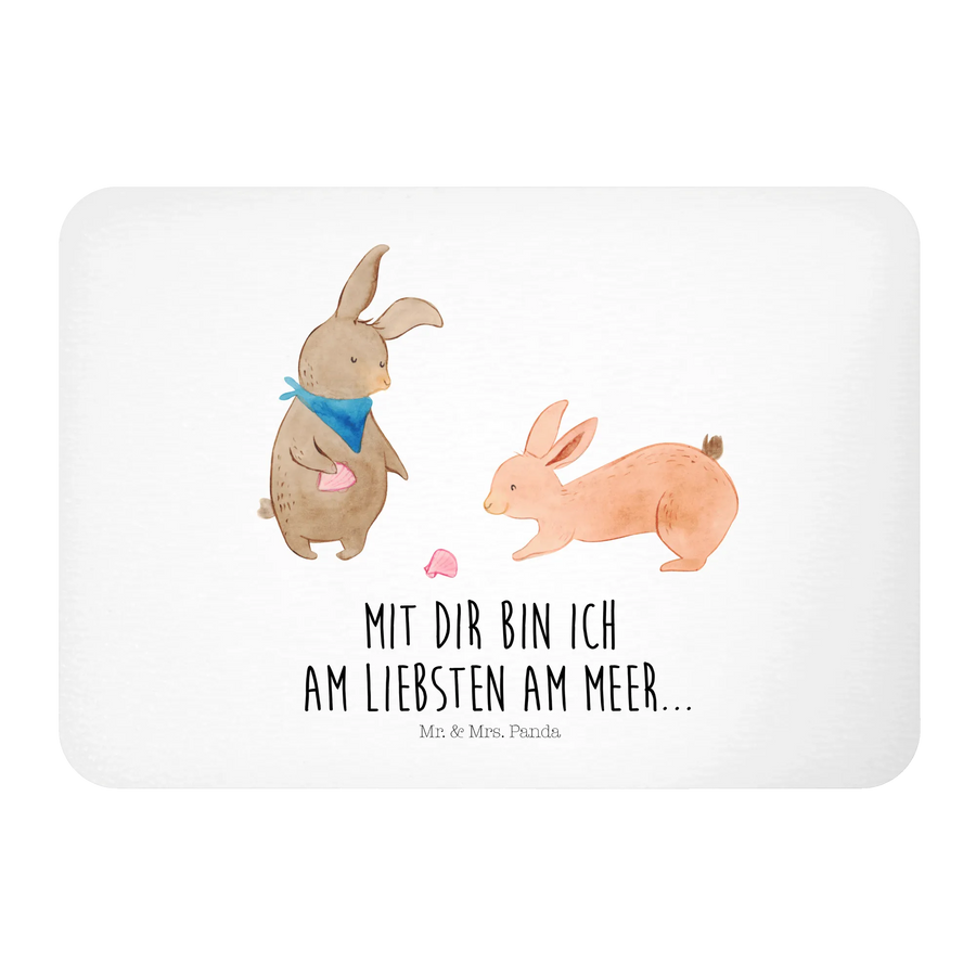 Die liebevolle Gestaltung zeigt zwei stilisierte Hasen, die die warme Atmosphäre am Meer einfangen – perfekt für all jene, die die Zeit mit Freunden und Familie am Strand lieben. Die sanften Farben und die angenehme Oberfläche machen ihn nicht nur funktional, sondern auch zu einem echten Hingucker.