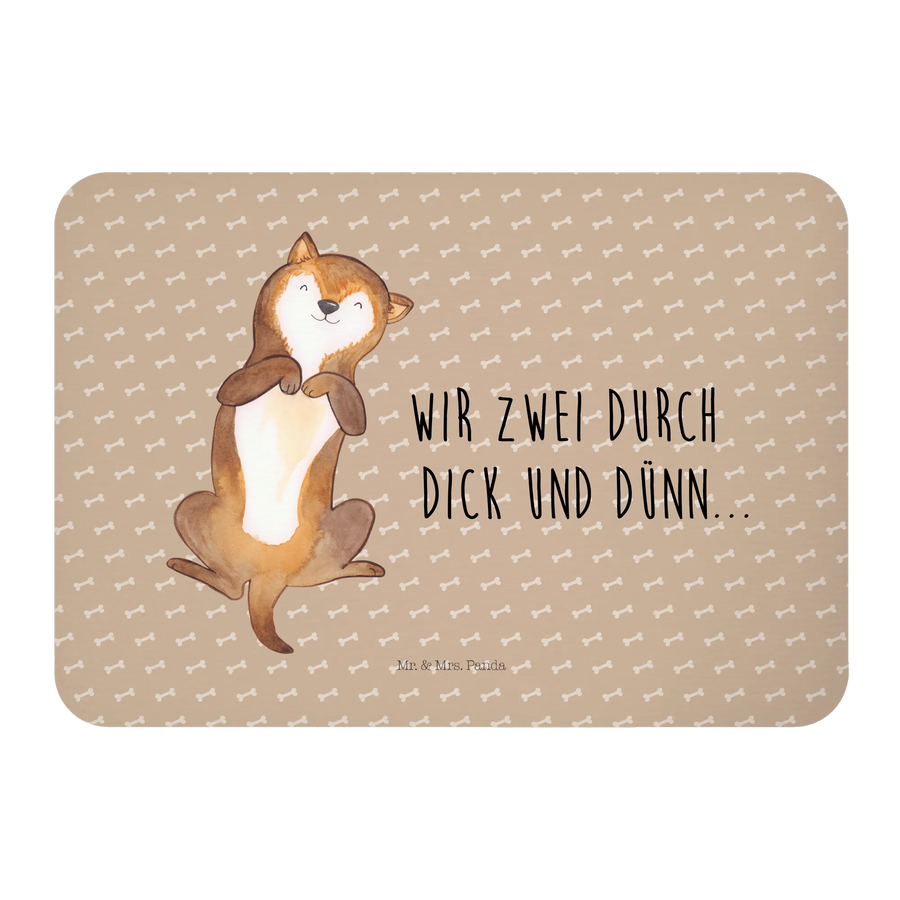Der Magnet wurde mit viel Liebe von Mrs. Panda entworfen und zeigt, wie sehr wir unsere treuen vierbeinigen Freunde lieben. Sein einzigartiger Spruch "Wir zwei durch dick und dünn..." spricht aus, was die innige Bindung zwischen Mensch und Hund verkörpert.