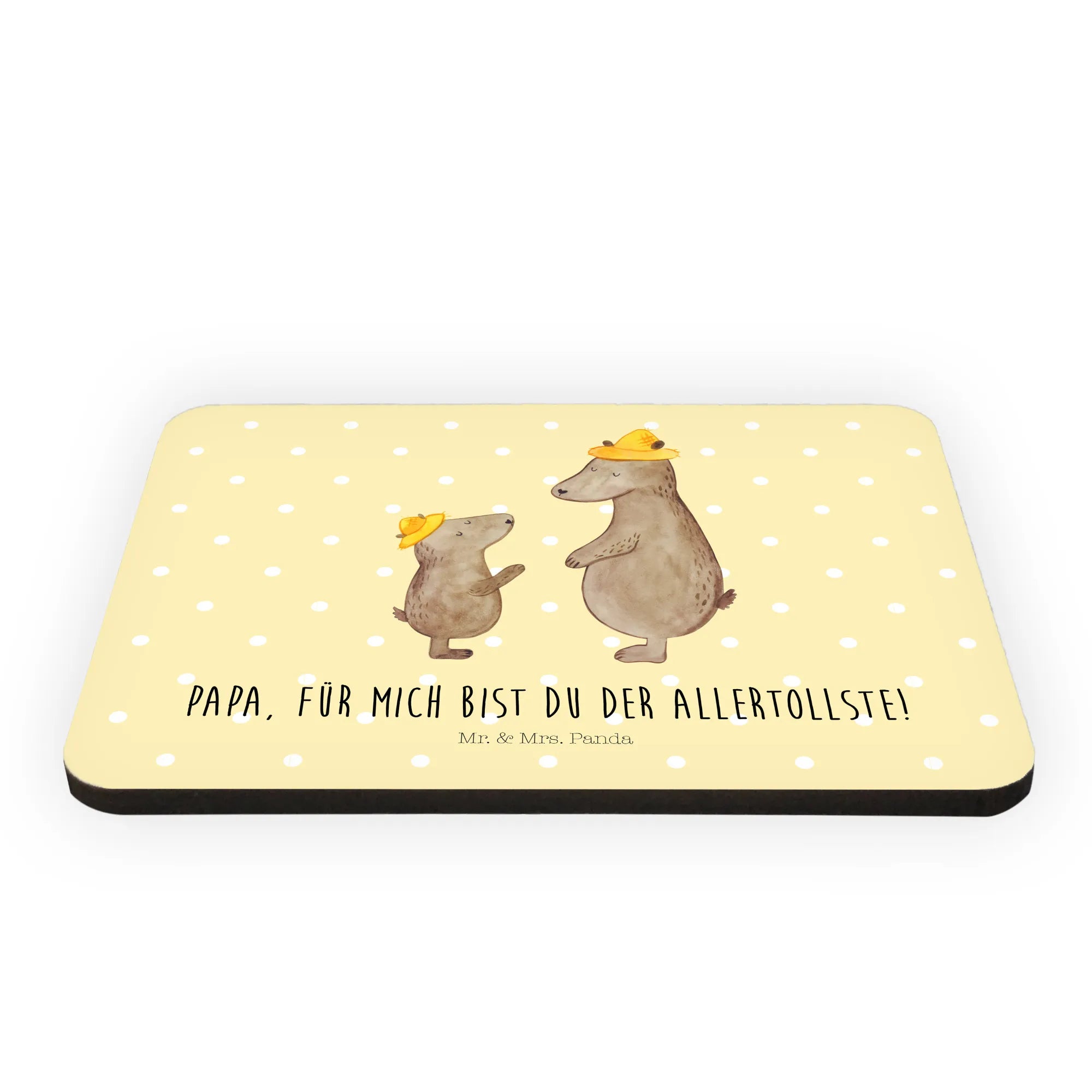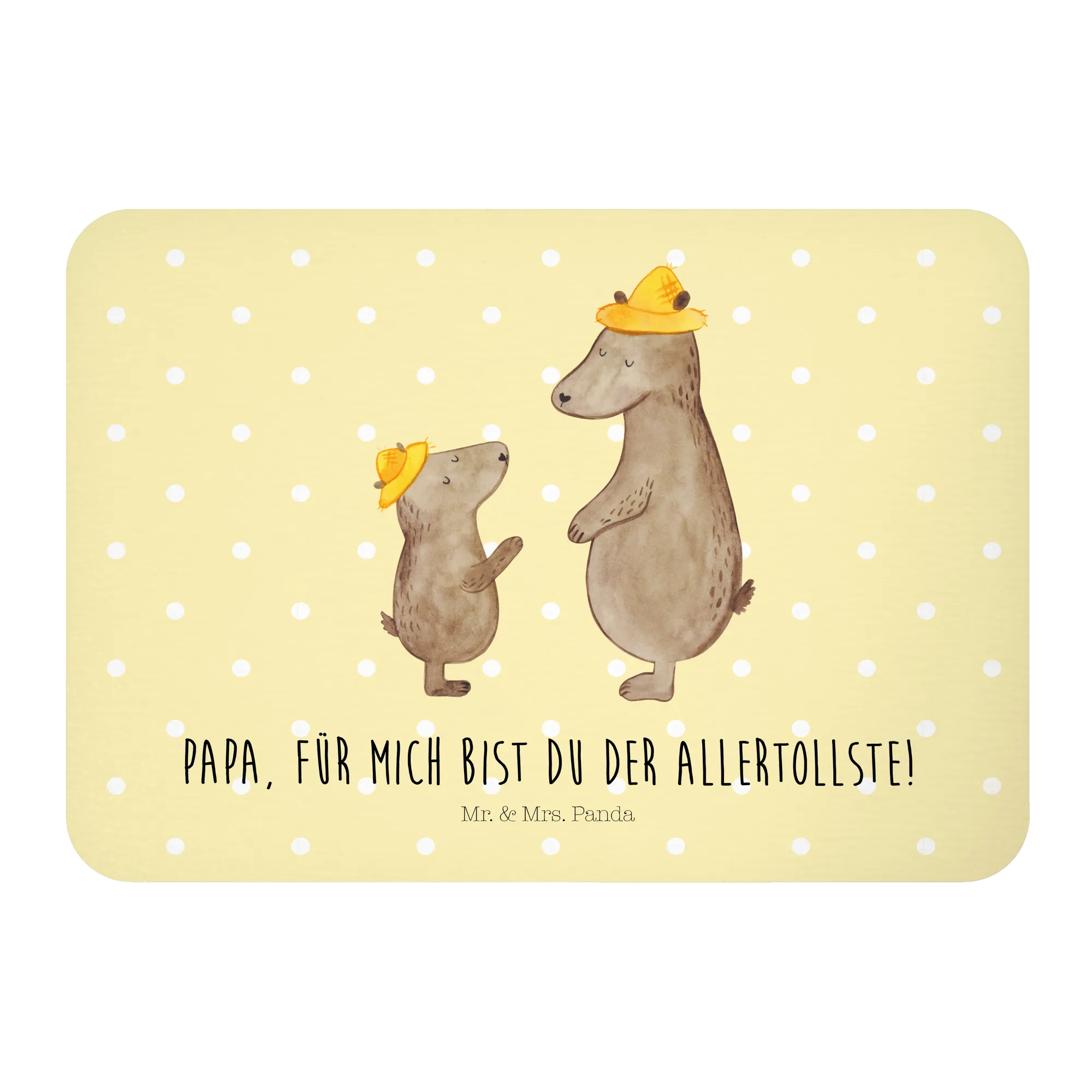 Suchst du nach dem perfekten Geschenk für den liebsten Papa? Dann ist der Kühlschrankmagnet mit den süßen Bären mit Hut aus der Mr. & Mrs. Panda Familienkollektion genau das richtige für dich! Dieser charmante Magnet ist nicht nur eine schöne Kühlschrankdekoration, sondern auch ein liebevolles Souvenir, das jeden Vater erfreuen wird. Die beiden Bären versprühen mit ihrem fröhlichen Aussehen und dem freundlichen Ausdruck eine heitere und familiäre Atmosphäre. Der größere Bär trägt einen modischen gelben Hut, während der kleinere Bär ihm bewundernd zusieht. Dieses verspielte Motiv ist eine wunderbare Art, deinem Vater zu zeigen, wie sehr du ihn schätzt. Ob zum Vatertag, Muttertag, oder einfach nur so – dieser Magnet erinnert jeden Tag an die besondere Verbindung zwischen Vater und Kind.