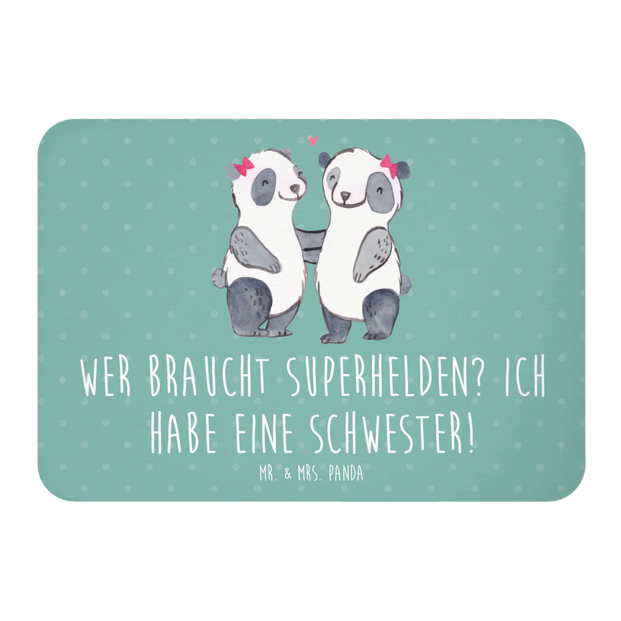 Bist Du auf der Suche nach dem perfekten Geschenk für Deine Schwester? Unser Kühlschrankmagnet mit dem liebevollen Motiv "Wer braucht Superhelden? Ich habe eine Schwester!" aus der bezaubernden Kollektion Familie & Verwandte von Mr. & Mrs. Panda könnte genau das richtige für Dich sein!