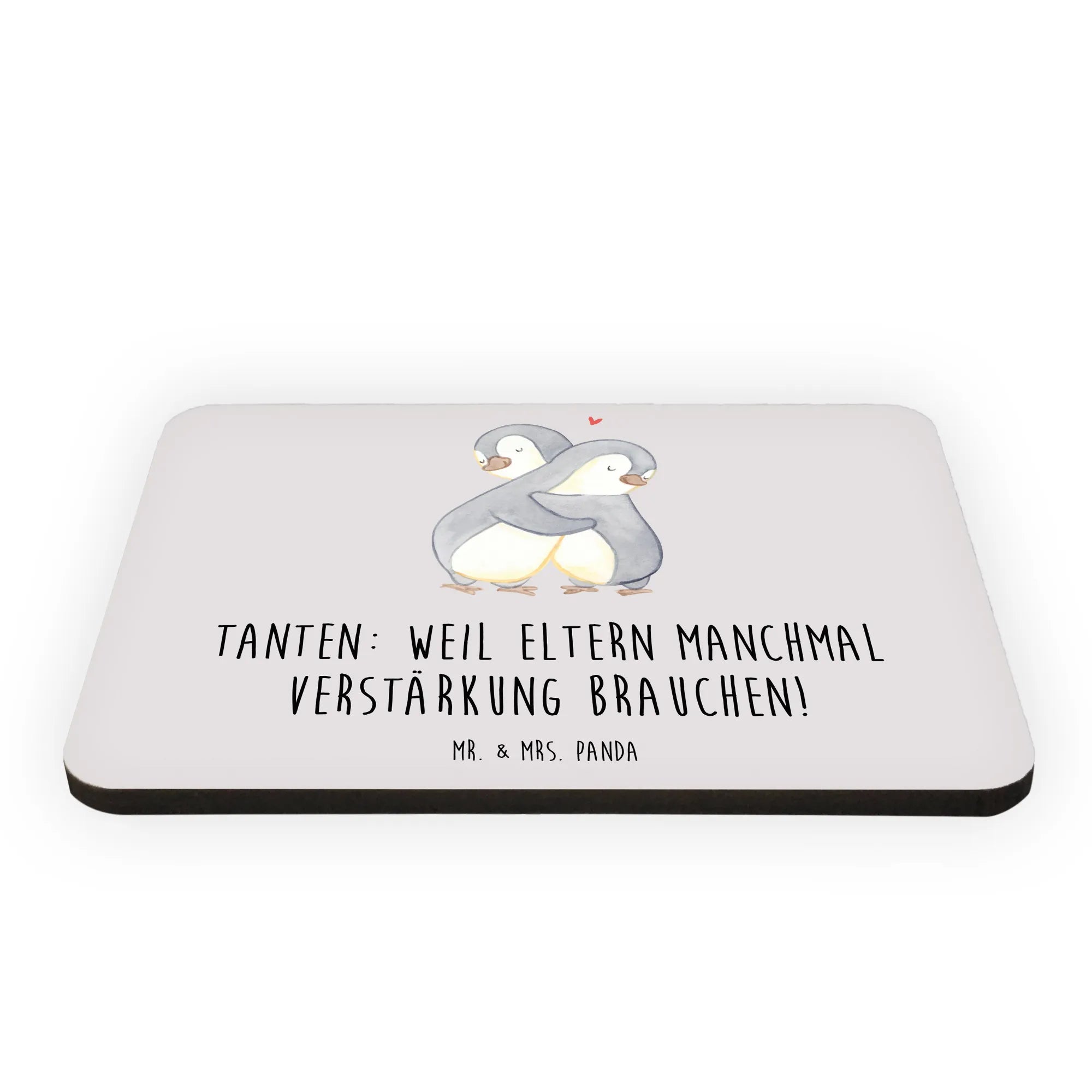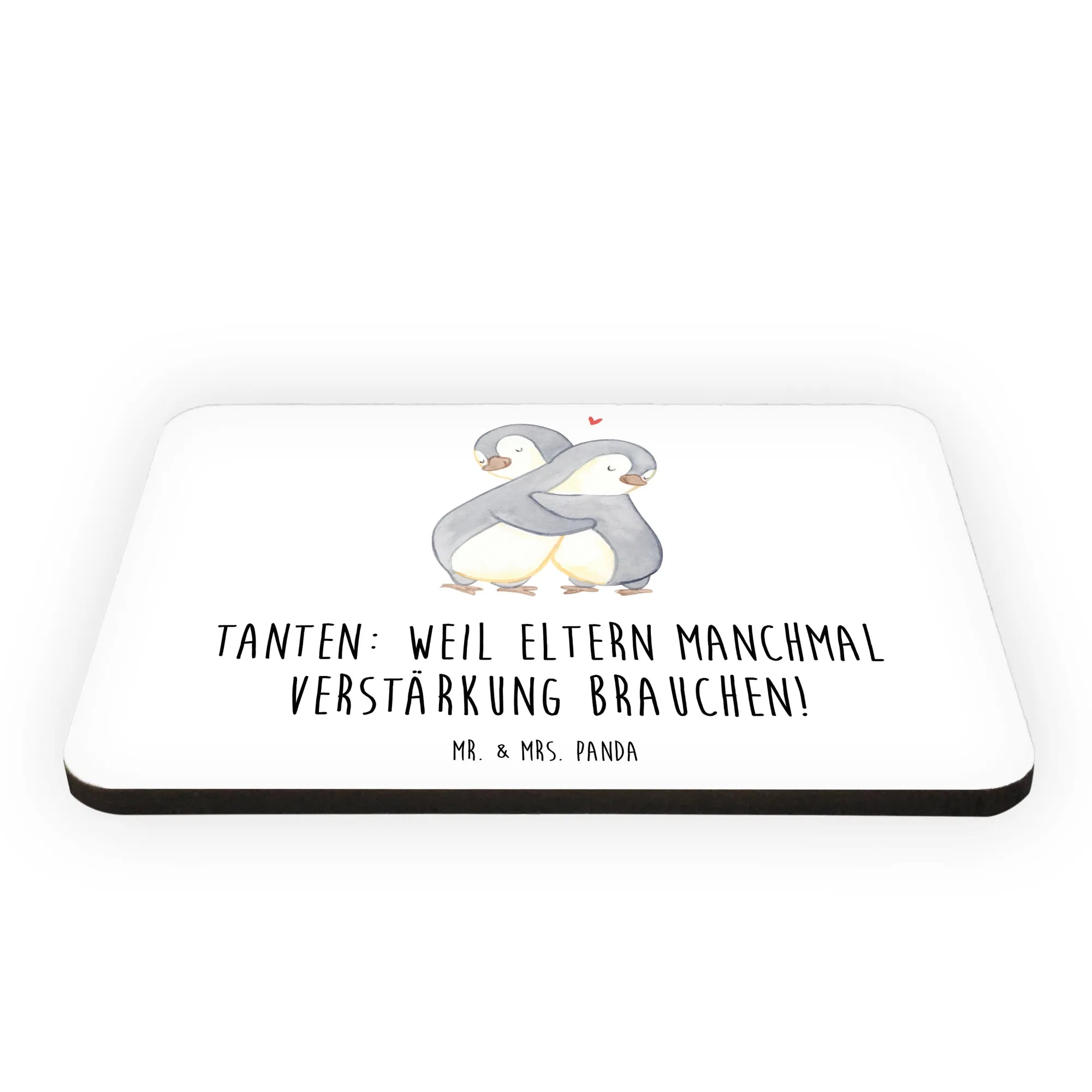 Der Magnet Tante von Mr. & Mrs. Panda ist das perfekte Geschenk für alle, die eine besondere Bindung zu ihrer Tante haben. Er erfreut sich einer liebevollen Gestaltung mit dem spritzigen Slogan 'Tanten: Weil Eltern manchmal Verstärkung brauchen!'. Dieser Kühlschrankmagnet ist mehr als nur ein praktisches Deko-Element – er feiert die herzliche Beziehung zwischen Tanten und ihren Nichten oder Neffen.