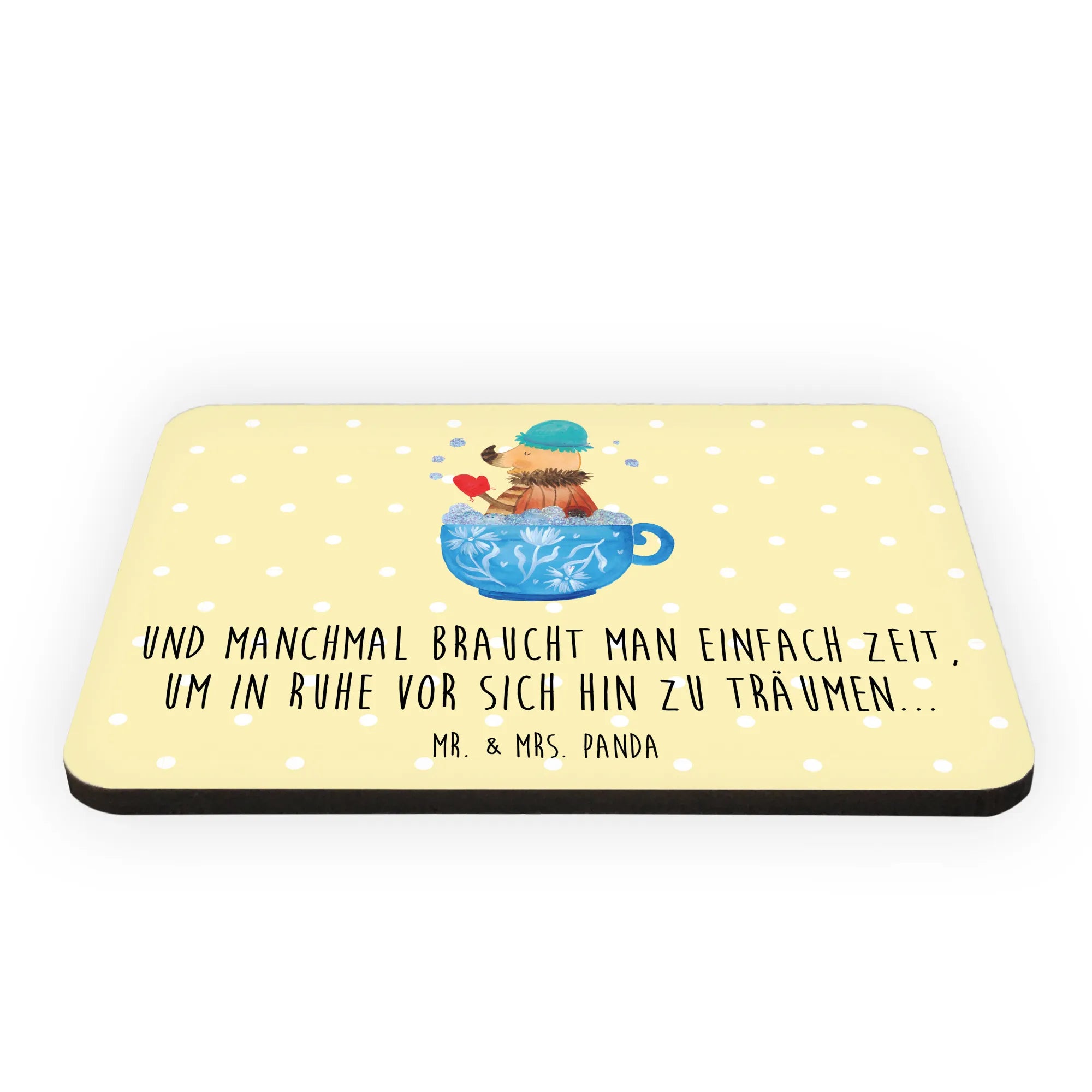 Herzlich Willkommen in der Welt des Nachtfalters Schaumbad von Mr. & Mrs. Panda! Dieser zauberhafte Kühlschrankmagnet bringt die Magie des Badezimmers direkt an Deine Wand. Der kleine Nachtfalter, der es sich in einer Kaffeetasse gemütlich gemacht hat, und das entspannende Schaumbad sorgen für eine wohlige Atmosphäre und laden zum Träumen ein.