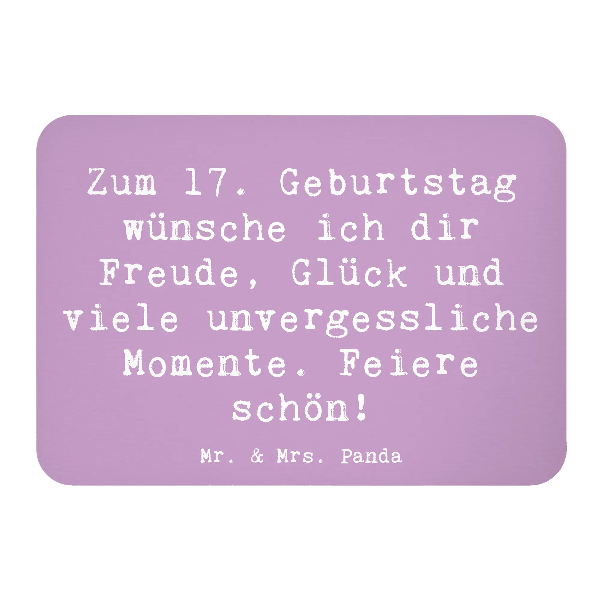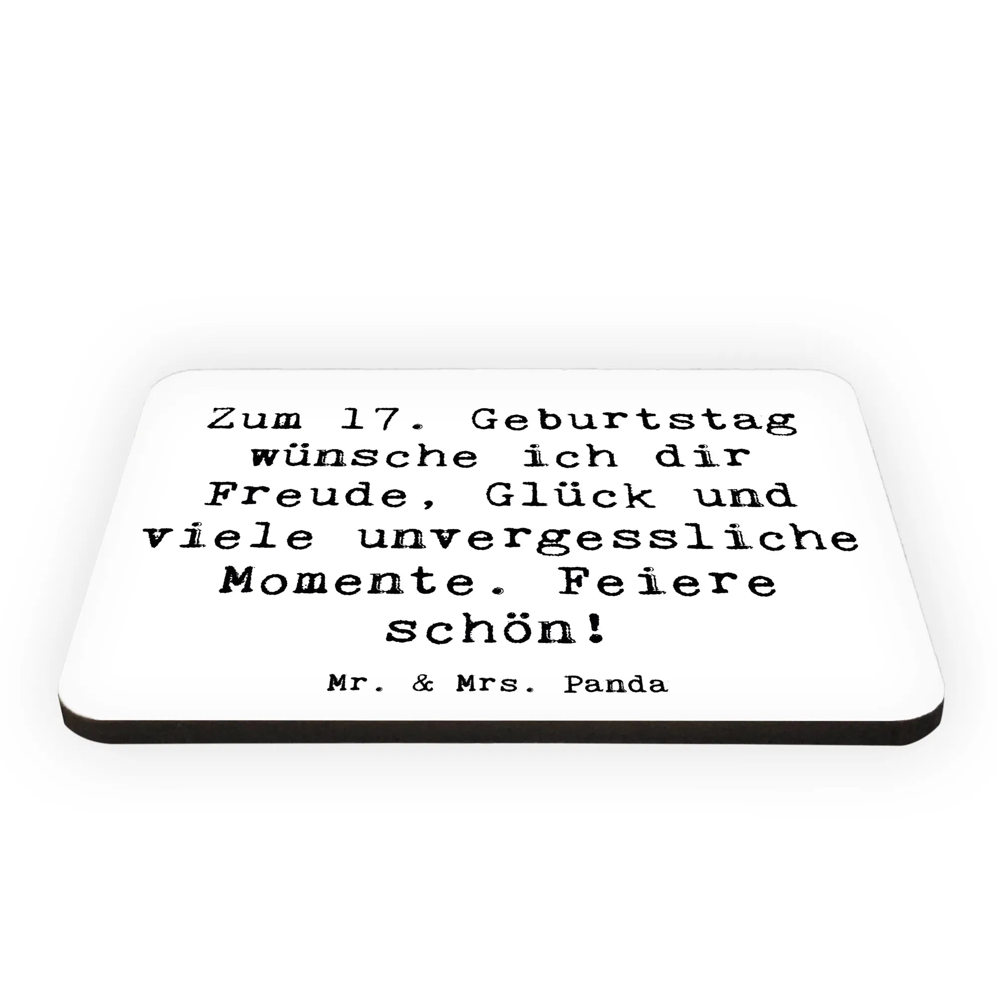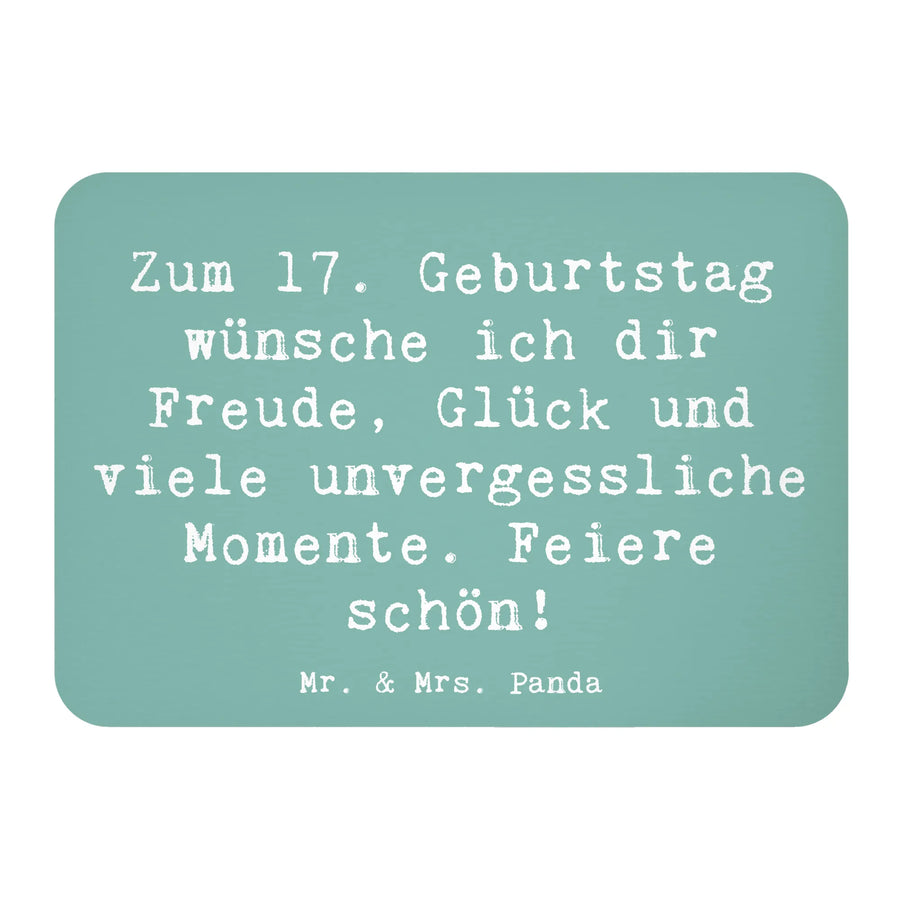 Der Kühlschrankmagnet "Zum 17. Geburtstag wünsche ich dir Freude, Glück und viele unvergessliche Momente. Feiere schön!" von Mr. & Mrs. Panda ist das perfekte Geschenk für jeden, der den besonderen Tag seines 17. Geburtstags feiert!