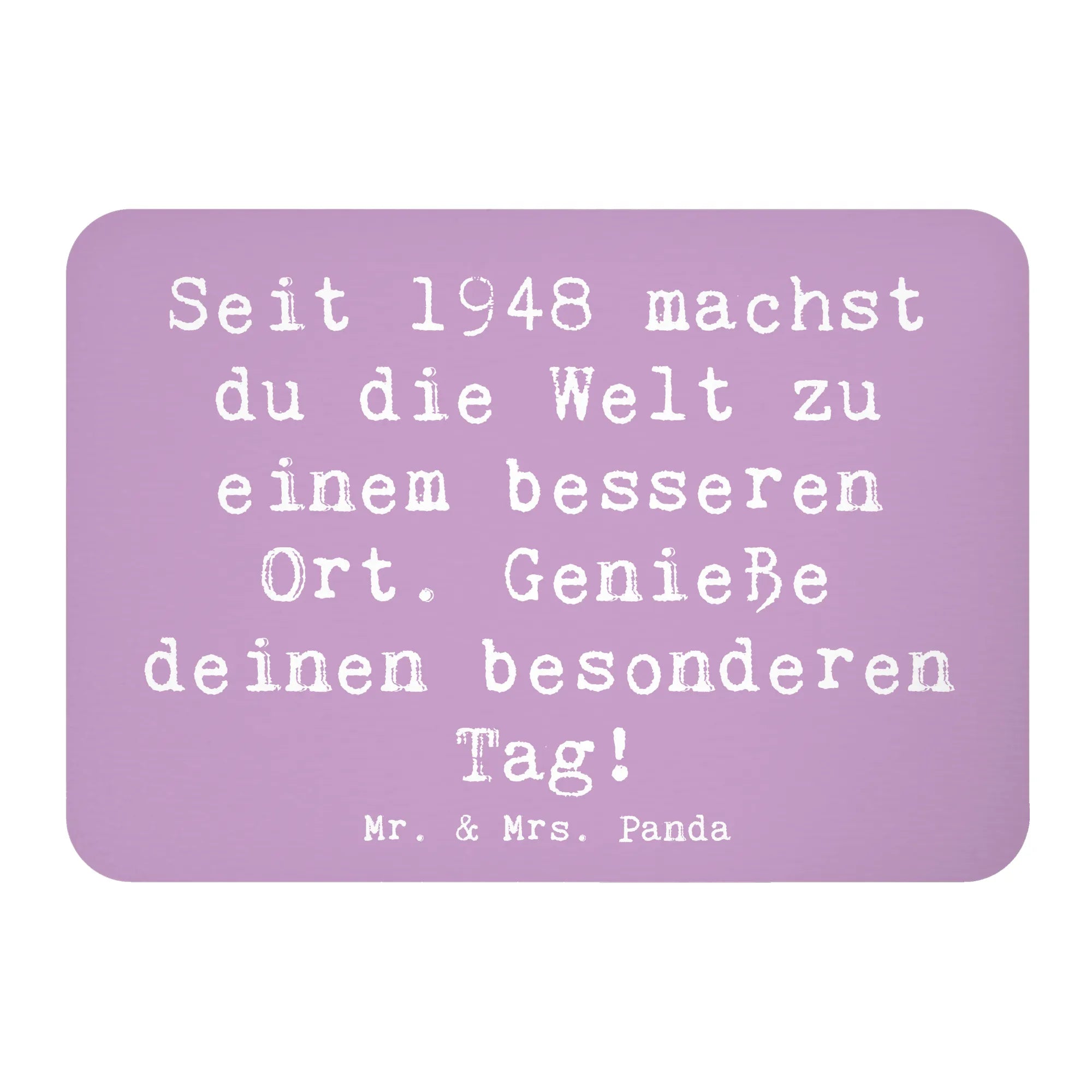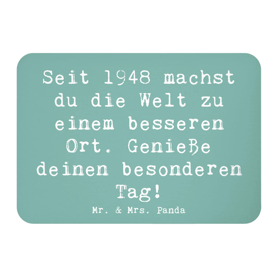 Suchst du nach einem ganz besonderen Geschenk? Unser Kühlschrankmagnet "1948 Geburtstag" von Mr. & Mrs. Panda ist die perfekte Wahl! Eigens für Menschen geboren im Jahr 1948 oder für Freunde, die diesen besonderen Meilenstein feiern möchten, haben wir diesen supermagnetischen Deko-Magnet kreiert. Mit dem süßen Motiv und dem liebevollen Slogan "Seit 1948 machst du die Welt zu einem besseren Ort. Genieße deinen besonderen Tag!" ist dieser Magnet nicht nur ein toller Hingucker für deinen Kühlschrank, sondern auch eine schöne Erinnerung an einen besonderen Geburtstag.