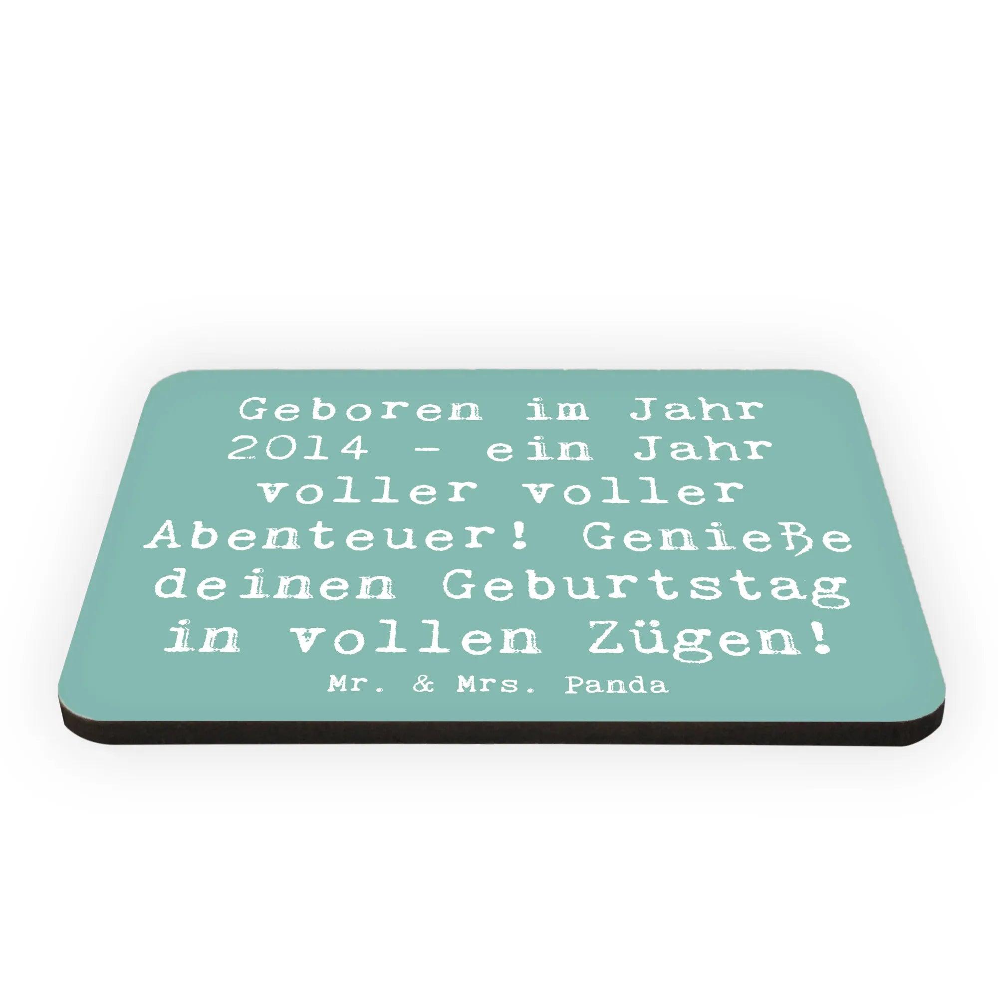 Der Kühlschrankmagnet von Mr. & Mrs. Panda mit dem Motiv "Geboren im Jahr 2014 - ein Jahr voller Abenteuer! Genieße deinen Geburtstag in vollen Zügen!" ist das perfekte Geschenk für alle, die 2014 das Licht der Welt erblickt haben. Mit seiner ansprechenden, bunten Gestaltung bringt er Freude in jede Küche und macht das Erinnern an einen ganz besonderen Geburtstag zu einem wahren Vergnügen.