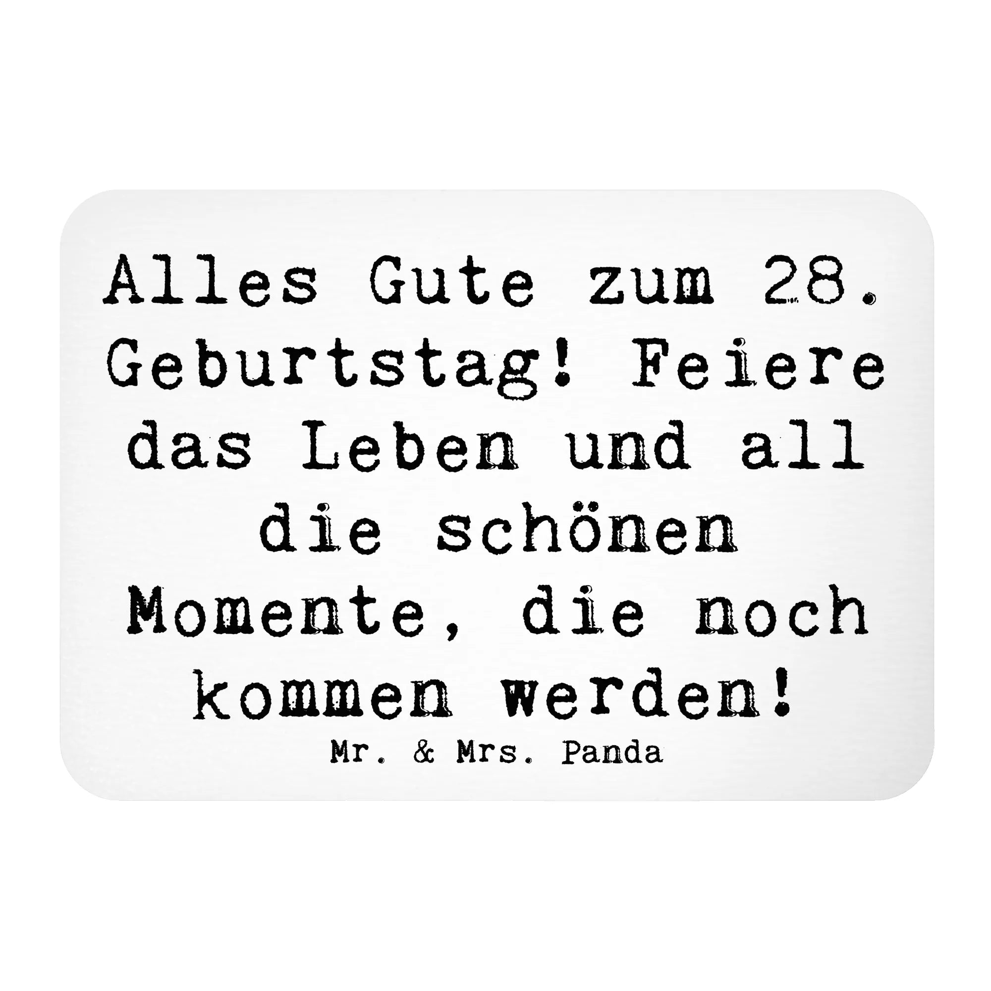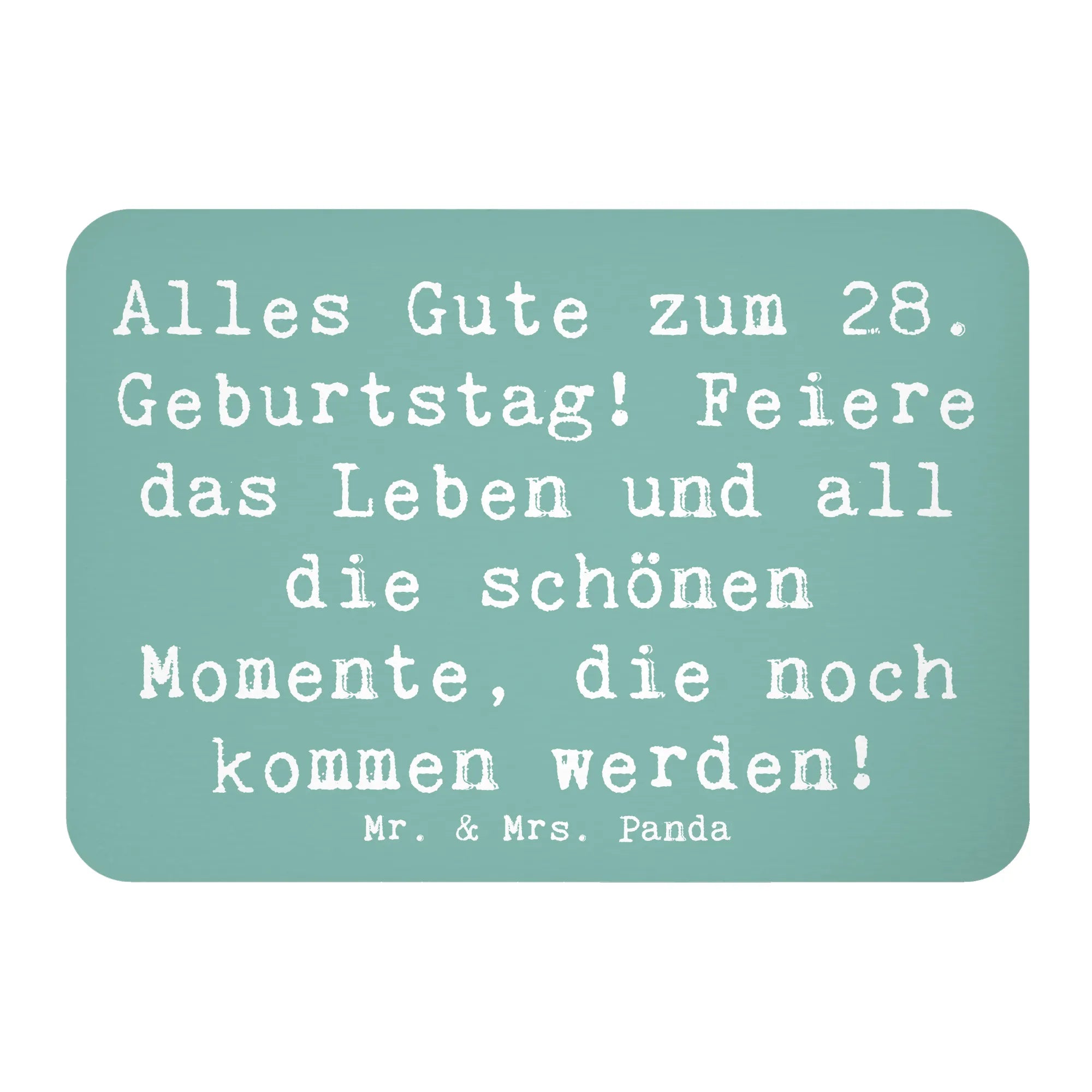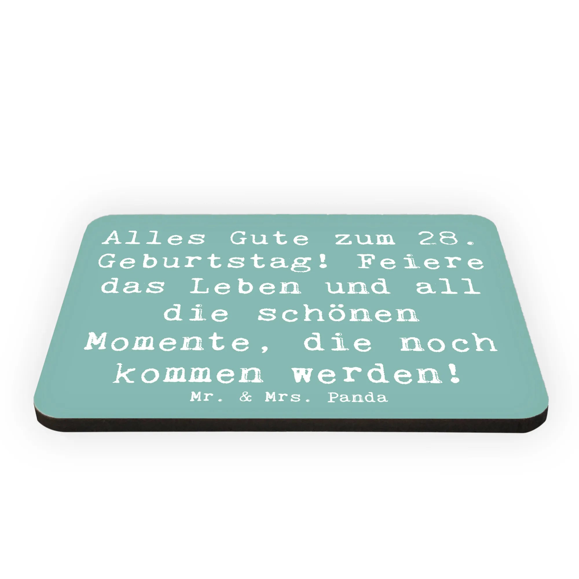 Unser Kühlschrankmagnet zum 28. Geburtstag von Mr. & Mrs. Panda ist das perfekte Geschenk, um diesen besonderen Tag gebührend zu feiern! Mit dem fröhlichen Spruch "Alles Gute zum 28. Geburtstag! Feiere das Leben und all die schönen Momente, die noch kommen werden!" zauberst Du Deinen Freunden und Familie ein Lächeln ins Gesicht.