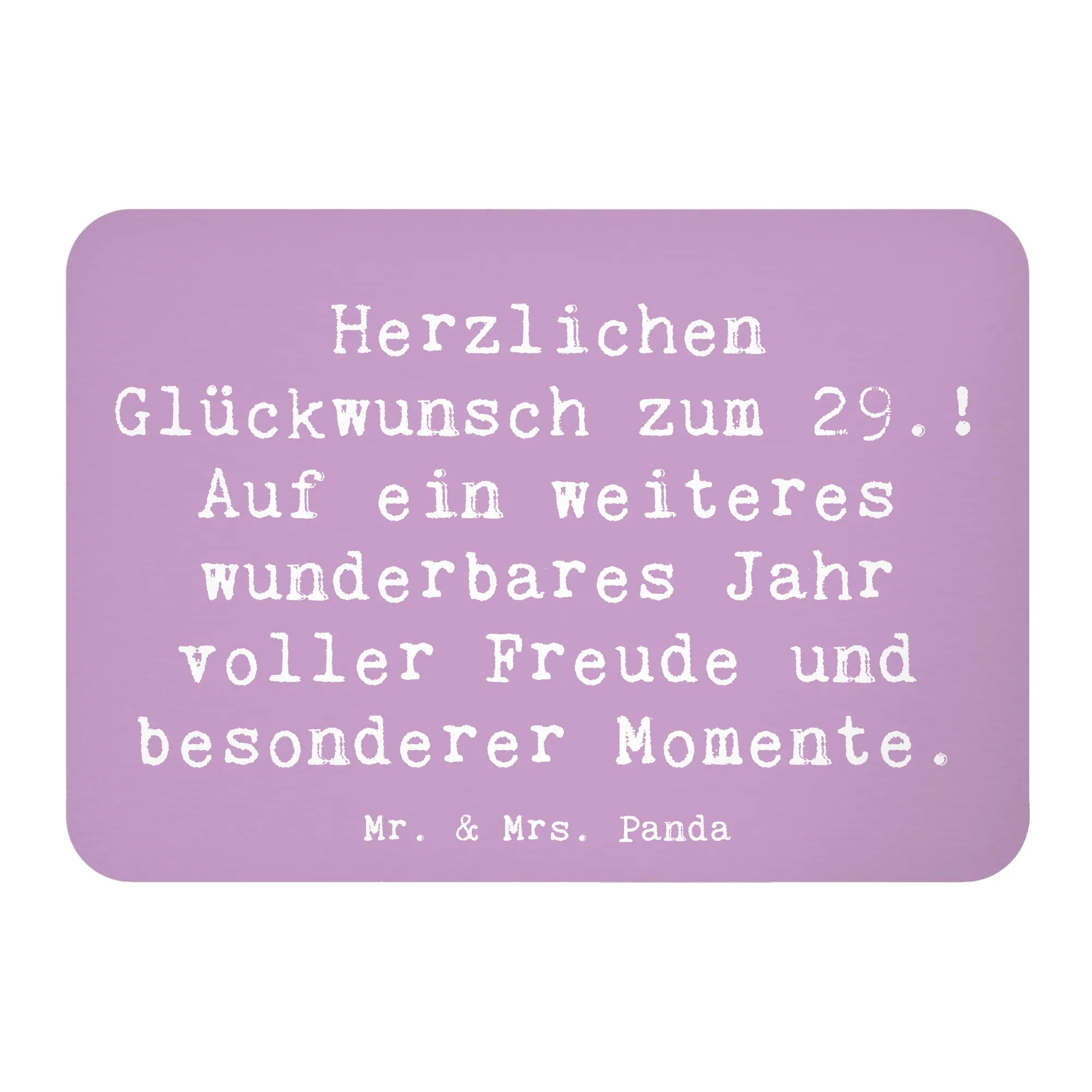 Der Kühlschrankmagnet 'Herzlichen Glückwunsch zum 29.! Auf ein weiteres wunderbares Jahr voller Freude und besonderer Momente.' aus der besonderen Kollektion 'Geburtstag Alter' von Mr. & Mrs. Panda ist das perfekte Geschenk für deinen liebsten Menschen, der bald seinen 29. Geburtstag feiert.