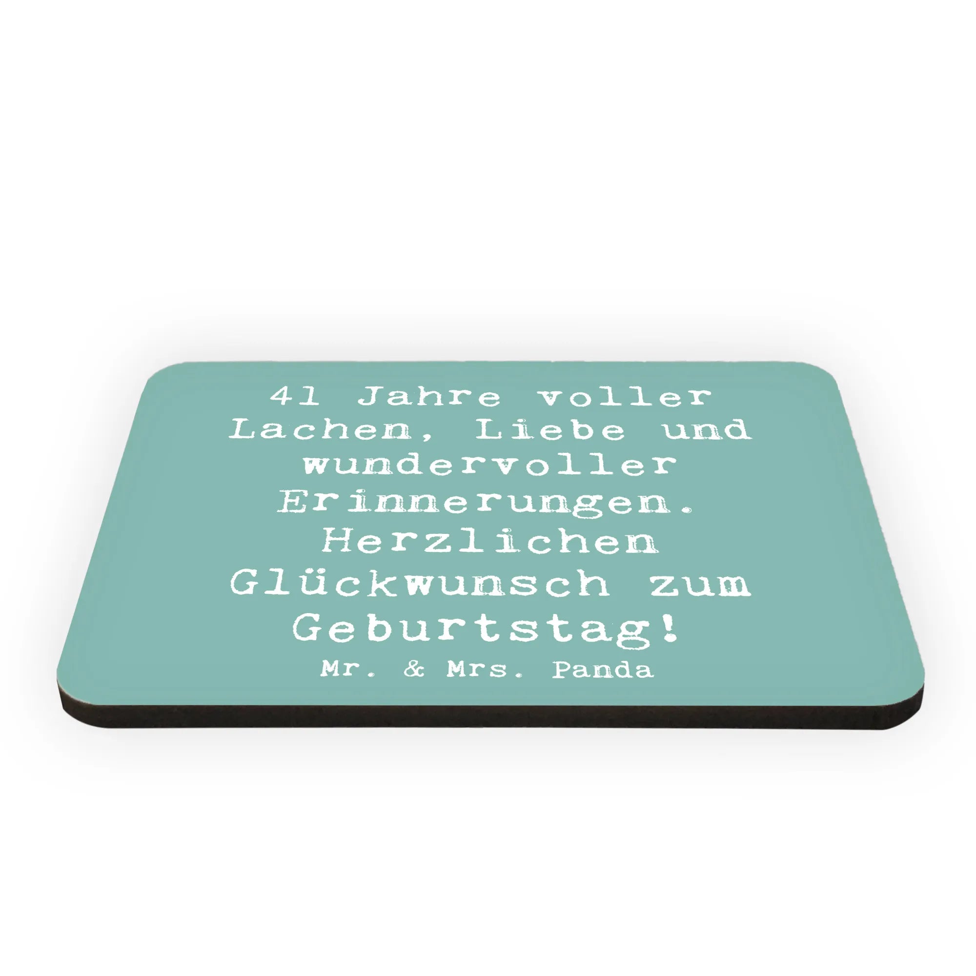 Suchst du das perfekte Geschenk zum 41. Geburtstag? Dann ist unser Kühlschrankmagnet von Mr. & Mrs. Panda genau das Richtige! Er trägt den liebevollen Spruch "41 Jahre voller Lachen, Liebe und wundervoller Erinnerungen. Herzlichen Glückwunsch zum Geburtstag!" und eignet sich bestens, um diesen besonderen Tag unvergesslich zu machen.