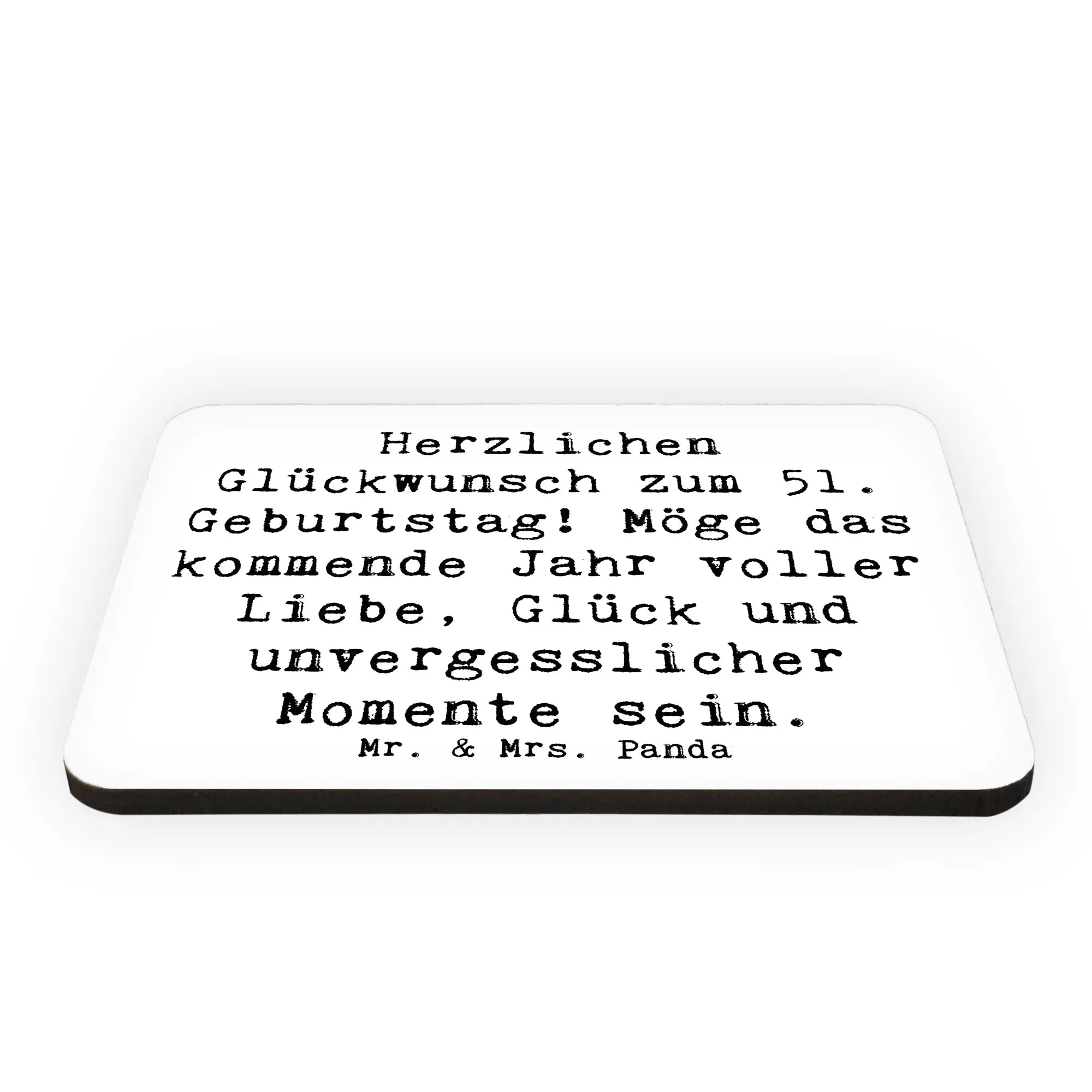 Du suchst nach dem perfekten Geschenk für einen besonderen Menschen, der seinen 51. Geburtstag feiert? Dann ist der Kühlschrankmagnet "Herzlichen Glückwunsch zum 51. Geburtstag! Möge das kommende Jahr voller Liebe, Glück und unvergesslicher Momente sein." von Mr. & Mrs. Panda genau das Richtige für dich!