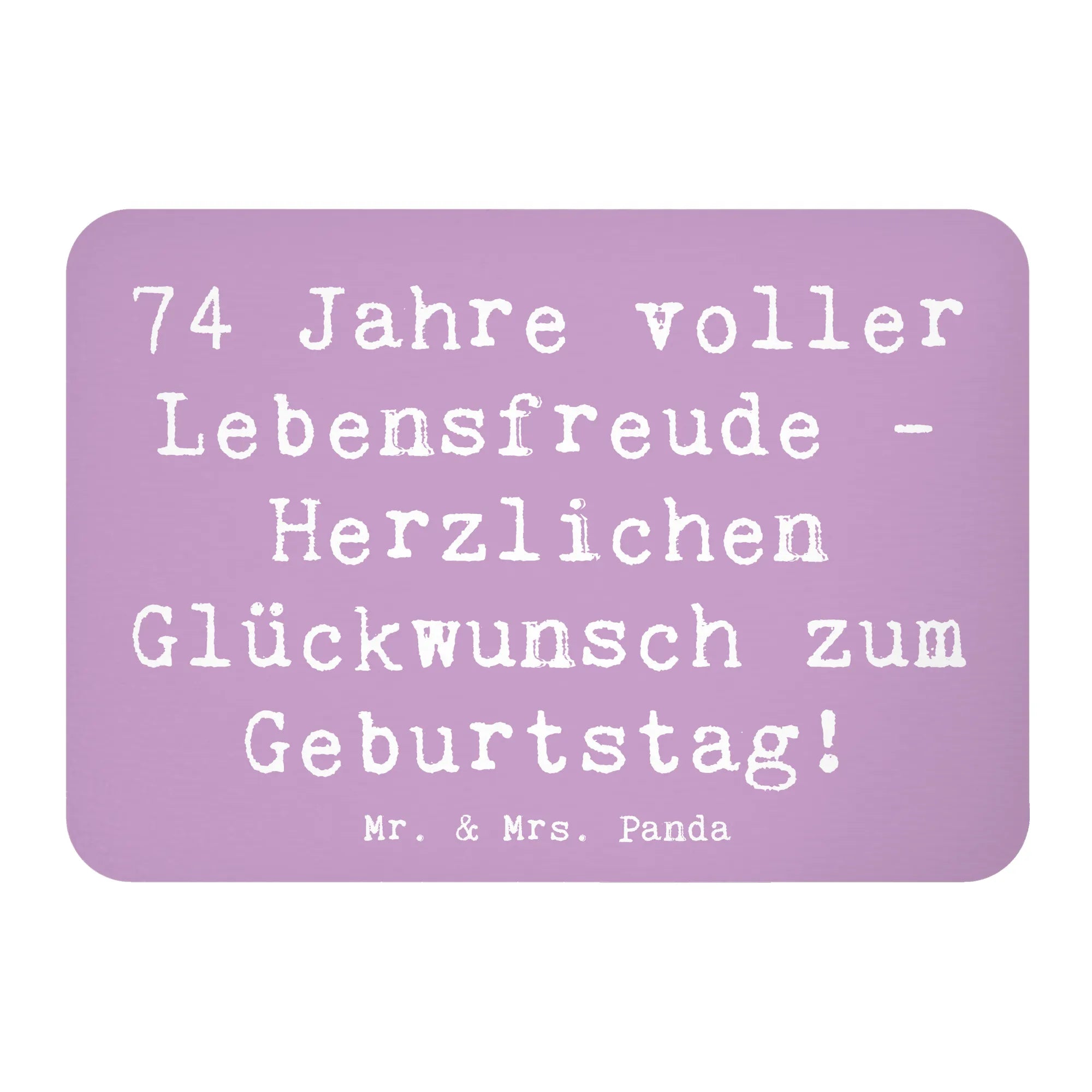 Der perfekte Kühlschrankmagnet von Mr. & Mrs. Panda für den 74. Geburtstag ist die ideale Möglichkeit, um besonderen Menschen in Deinem Leben zu gratulieren! Mit dem liebevollen Spruch "74 Jahre voller Lebensfreude - Herzlichen Glückwunsch zum Geburtstag!" zauberst Du jedem ein Lächeln ins Gesicht.