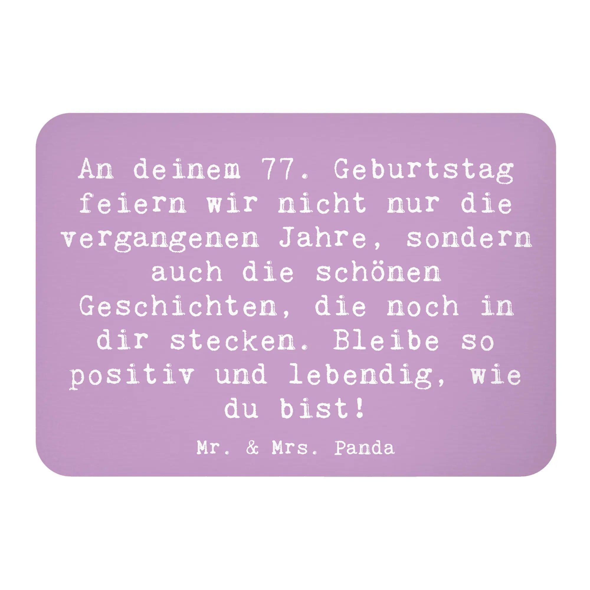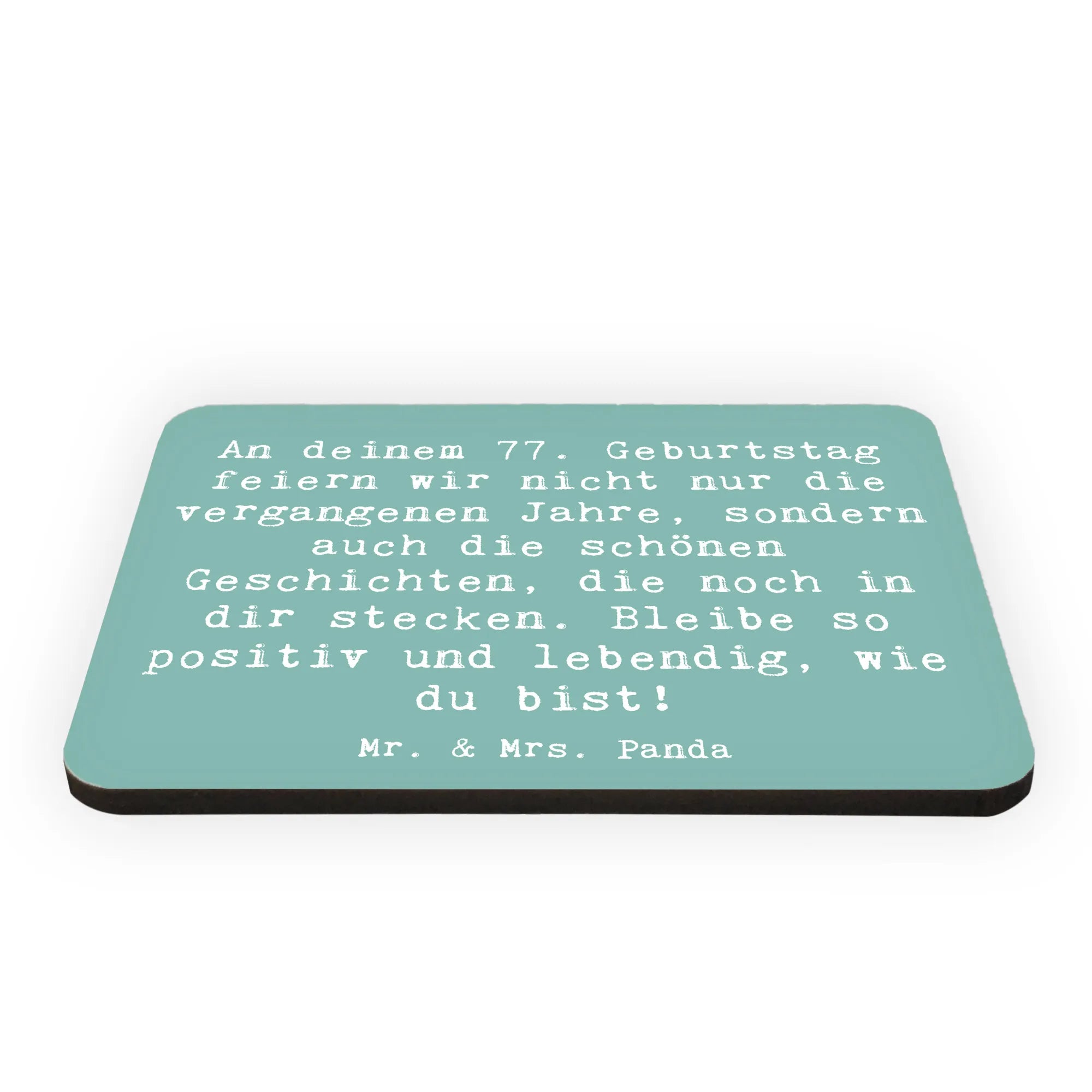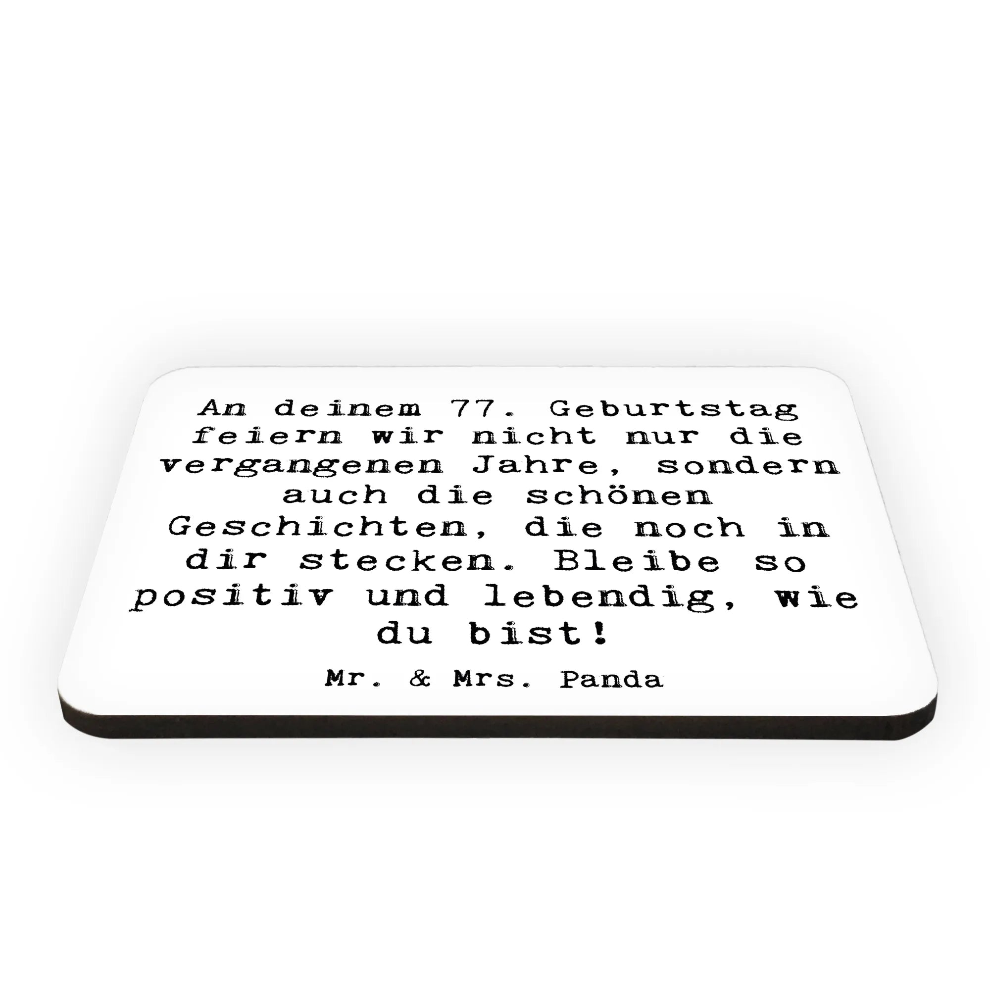 Das perfekte Geschenk für den 77. Geburtstag: Der wunderschöne Kühlschrankmagnet von Mr. & Mrs. Panda verbindet praktische Funktionalität mit herzlichen Worten! Wenn du auf der Suche nach einem besonderen Geburtstagsgeschenk bist, das sowohl nützlich als auch eine liebevolle Note hat, dann ist dieser Magnet genau das Richtige für dich. Mit dem Spruch "An deinem 77. Geburtstag feiern wir nicht nur die vergangenen Jahre, sondern auch die schönen Geschichten, die noch in dir stecken. Bleibe so positiv und lebendig, wie du bist!" zaubert dieser Magnet jedem ein Lächeln ins Gesicht.