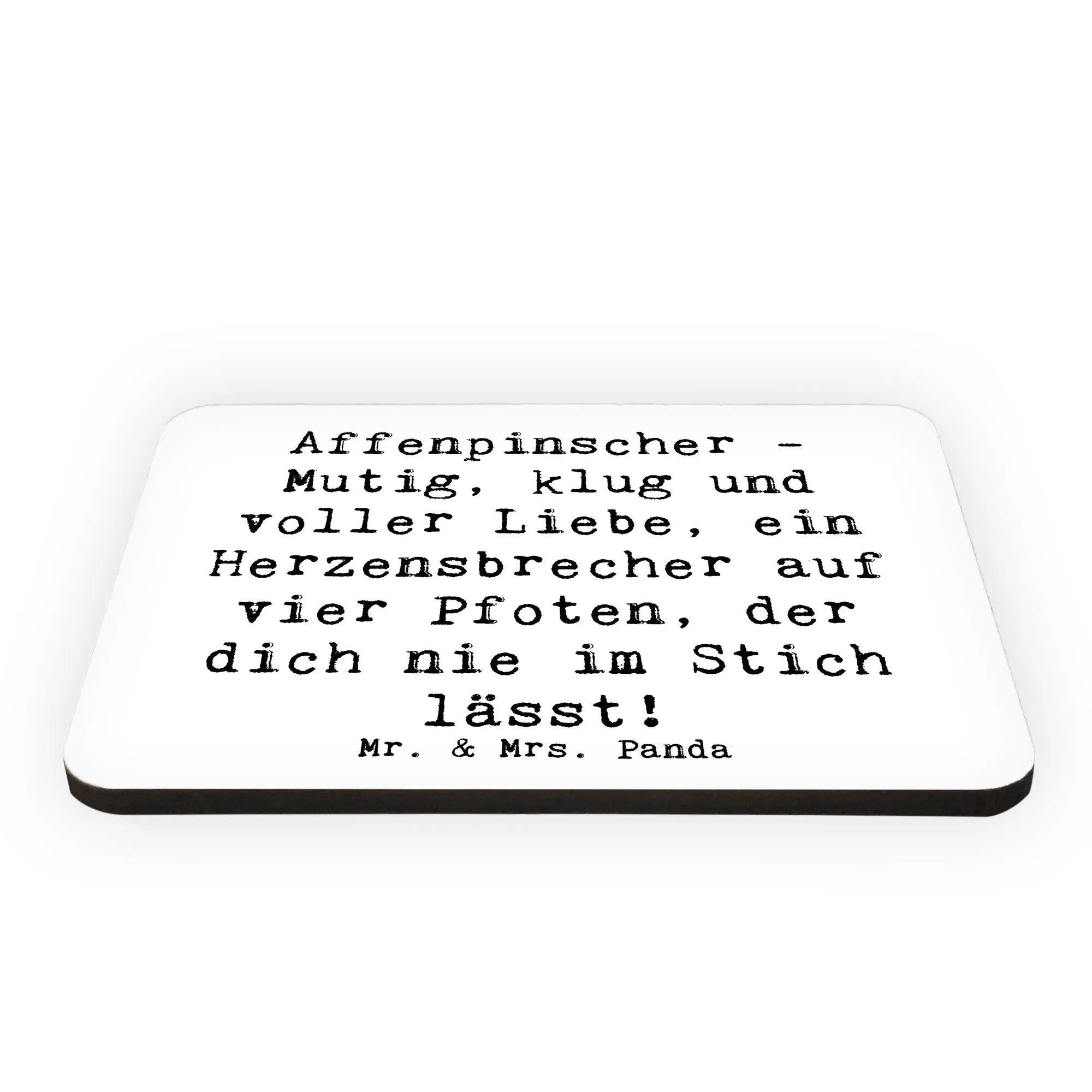 Der Kühlschrankmagnet "Affenpinscher - Mutig, klug und voller Liebe, ein Herzensbrecher auf vier Pfoten, der dich nie im Stich lässt!" aus der Hunderassen Kollektion von Mr. & Mrs. Panda ist das perfekte Geschenk für Hunde- und Tierliebhaber! 🐶