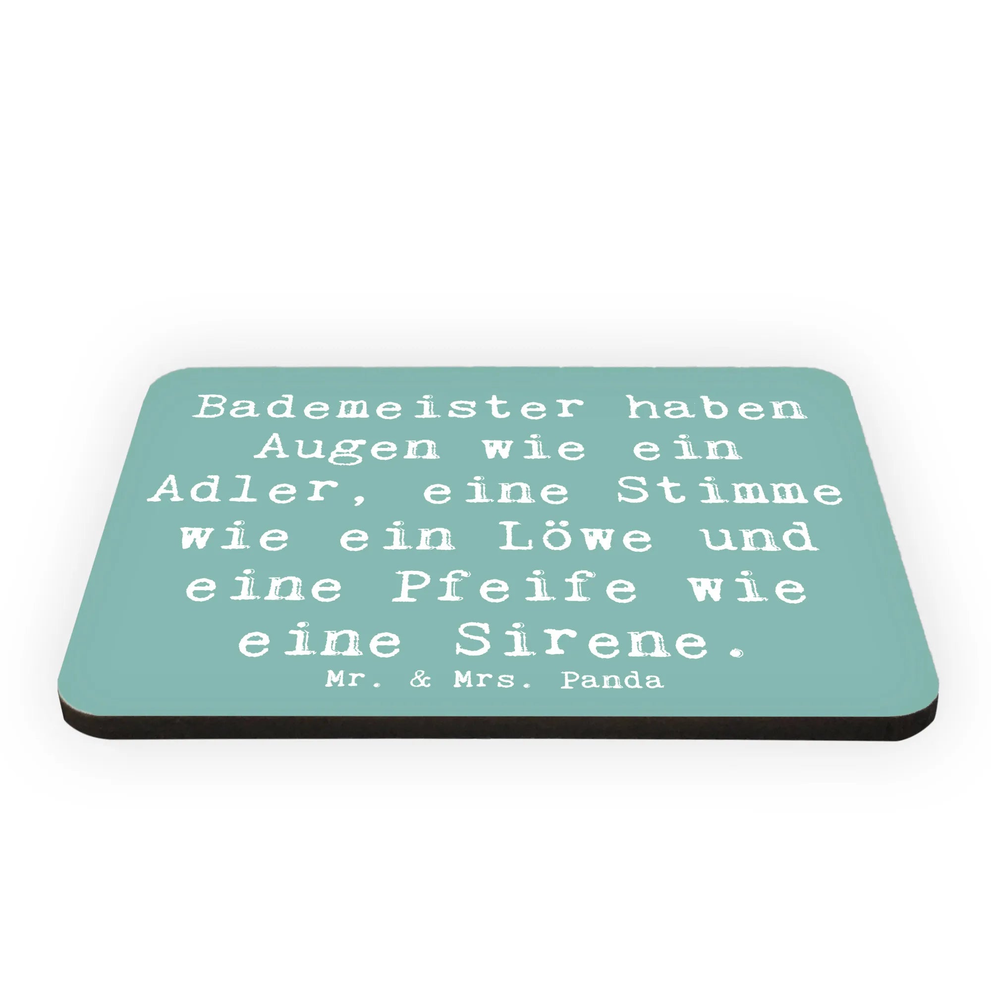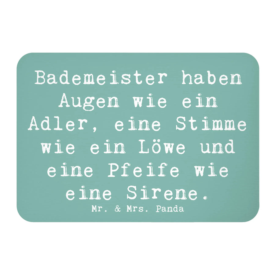 Der Kühlschrankmagnet Bademeister aus der einzigartigen Berufe Kollektion von Mr. & Mrs. Panda ist das perfekte Geschenk für jeden, der mit Wasser zu tun hat, sei es im Schwimmbad oder in der Freizeit. Mit dem witzigen Spruch: "Bademeister haben Augen wie ein Adler, eine Stimme wie ein Löwe und eine Pfeife wie eine Sirene." bringt dieser Magnet garantiert ein Lächeln ins Gesicht. Egal, ob Du ihn für einen Bademeister, einen Schwimmlehrer oder einfach nur für einen Freund suchst, dieser Magnet eignet sich hervorragend als Geschenk oder zum Selbstbehalten.