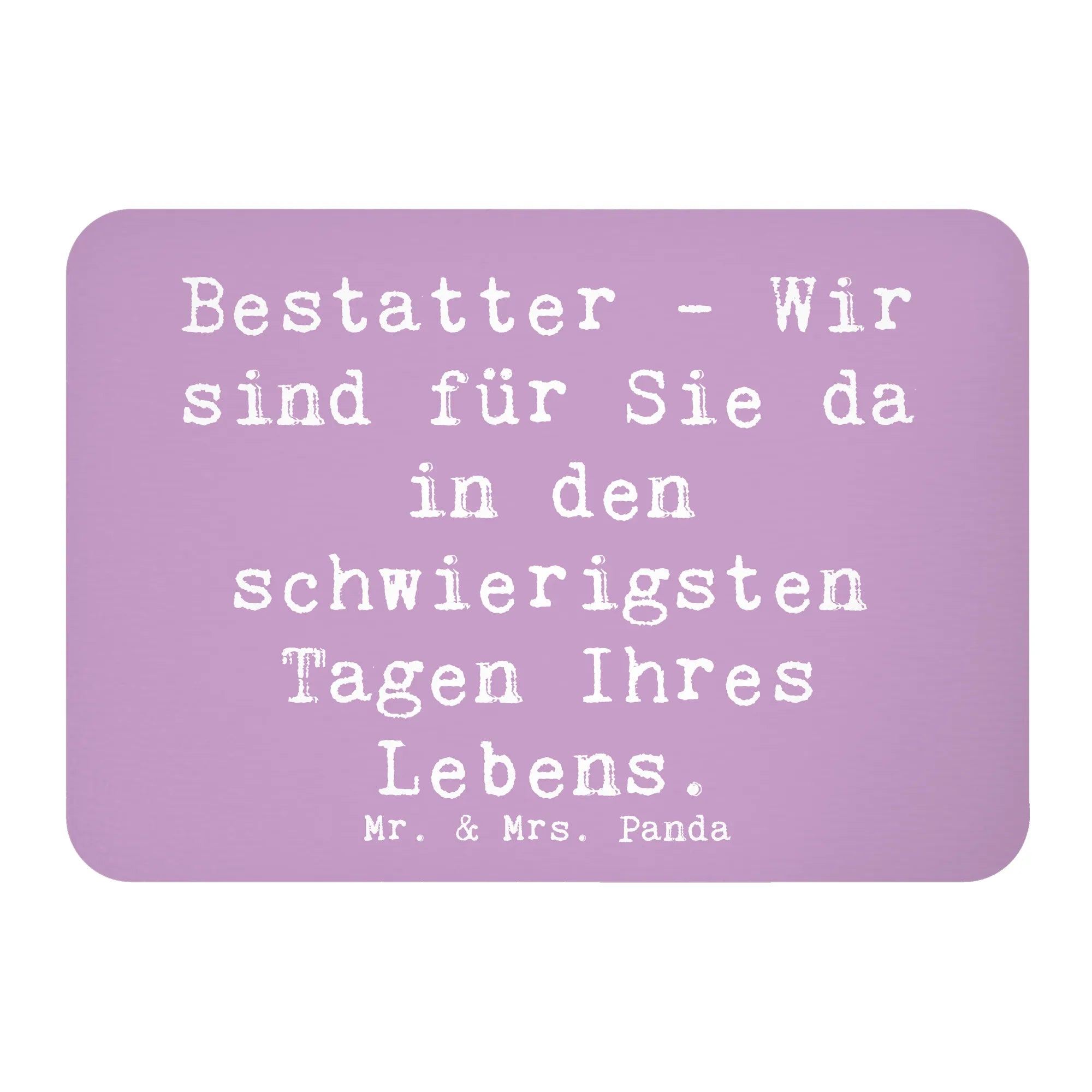 Der Kühlschrankmagnet "Bestatter - Wir sind für Sie da in den schwierigsten Tagen Ihres Lebens" aus der Berufe-Kollektion von Mr. & Mrs. Panda ist mehr als nur ein praktisches Utensil. Mit seiner liebevollen und farbenfrohen Gestaltung ist dieser Magnet nicht nur ein Blickfang für jeden Kühlschrank oder das Whiteboard, sondern auch eine kleine Botschaft der Wertschätzung und des Mitgefühls.