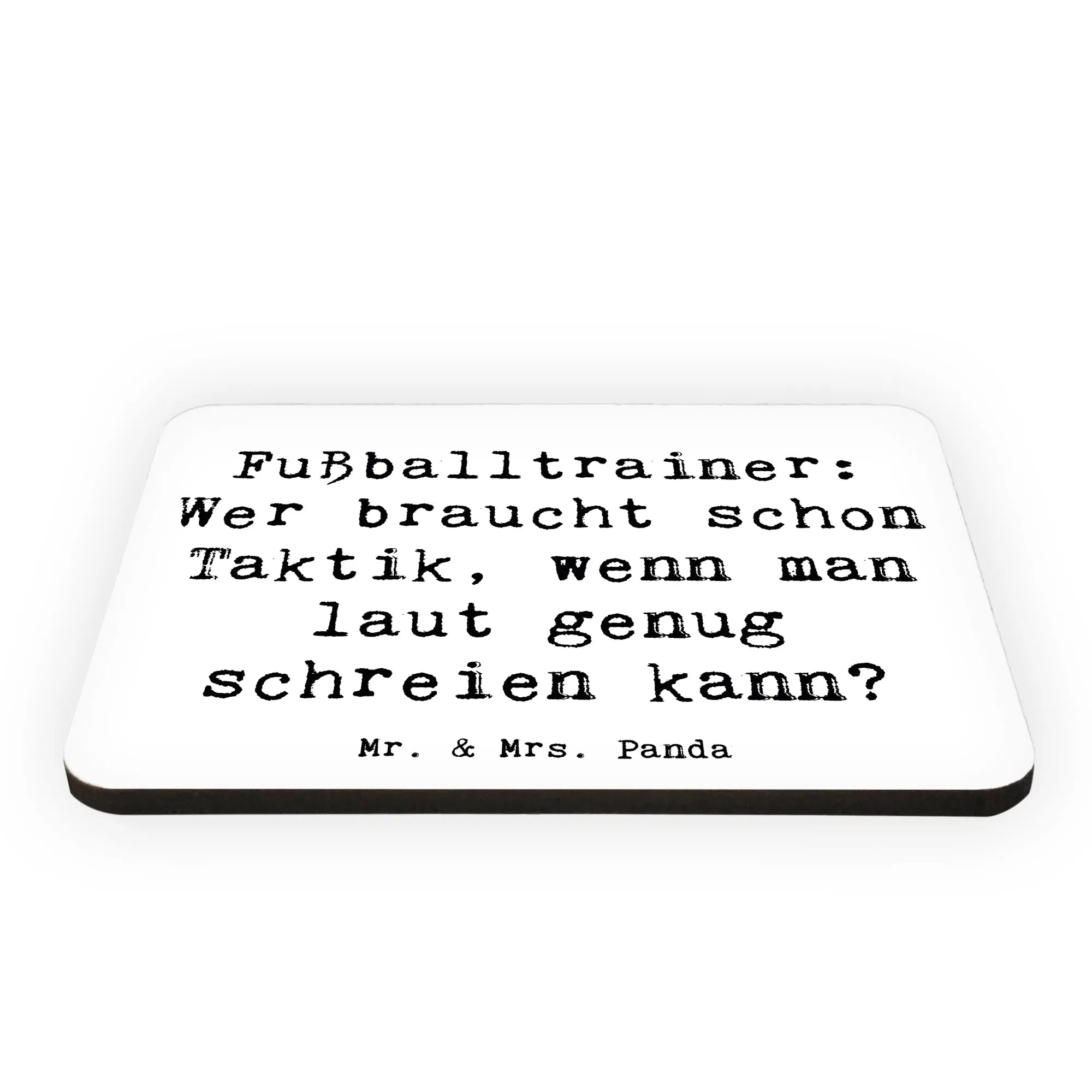 Der Kühlschrankmagnet "Fußballtrainer: Wer braucht schon Taktik, wenn man laut genug schreien kann?" von Mr. & Mrs. Panda ist das perfekte Geschenk für alle leidenschaftlichen Fußballtrainer und Sportbegeisterte! Dieser Magnet ist nicht nur eine praktische Hilfe, um Einkaufszettel oder wichtige Notizen an deinem Kühlschrank oder Whiteboard zu befestigen, sondern bringt auch eine ordentliche Portion Humor in dein Zuhause.