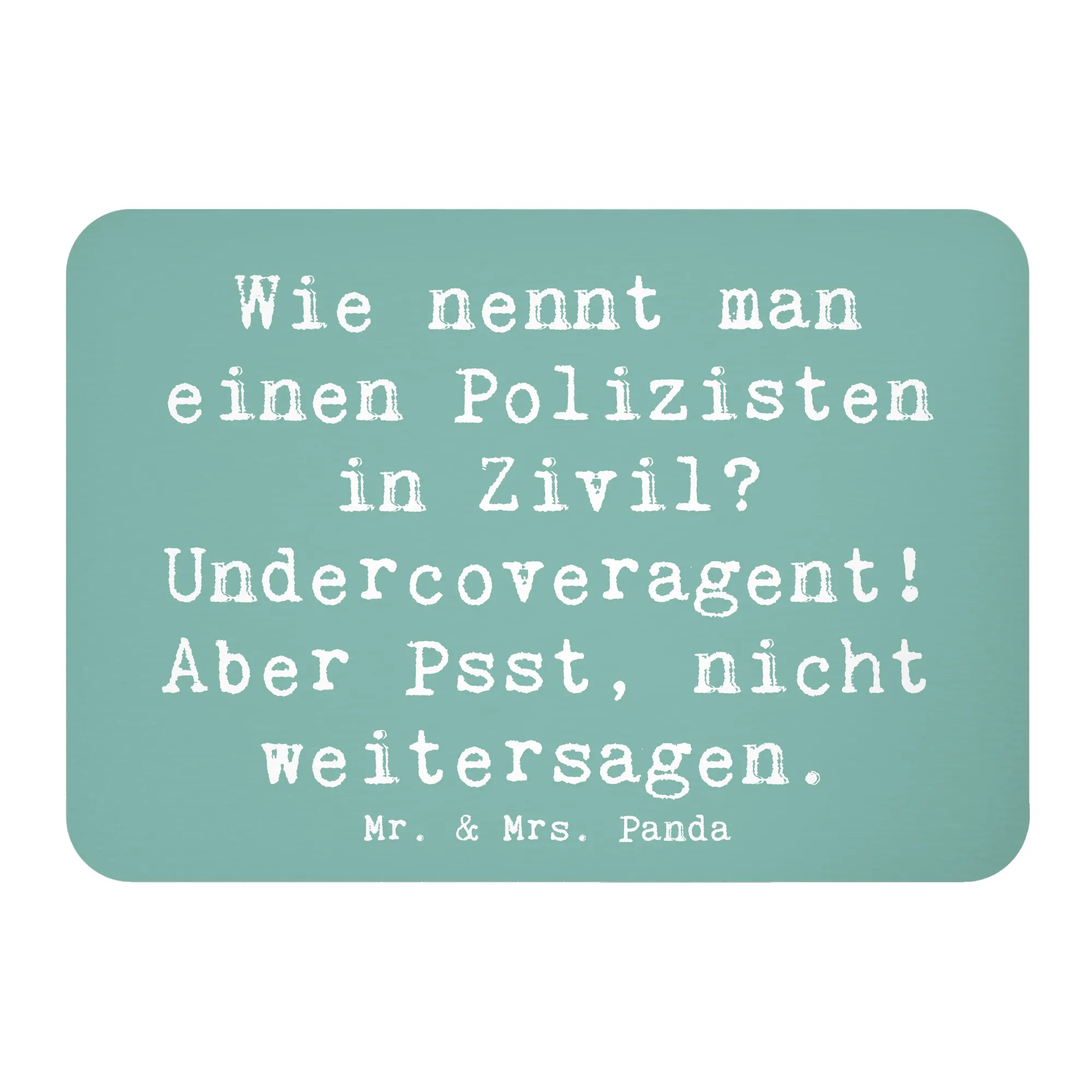 Entdecke den perfekten Magneten für alle Polizisten-Fans und Berufsliebhaber! Der Mr. & Mrs. Panda Kühlschrankmagnet mit dem niedlichen Polizei-Motiv und dem witzigen Spruch "Wie nennt man einen Polizisten in Zivil? Undercoveragent! Aber Psst, nicht weitersagen." ist das ideale Geschenk für jeden Anlaß.
