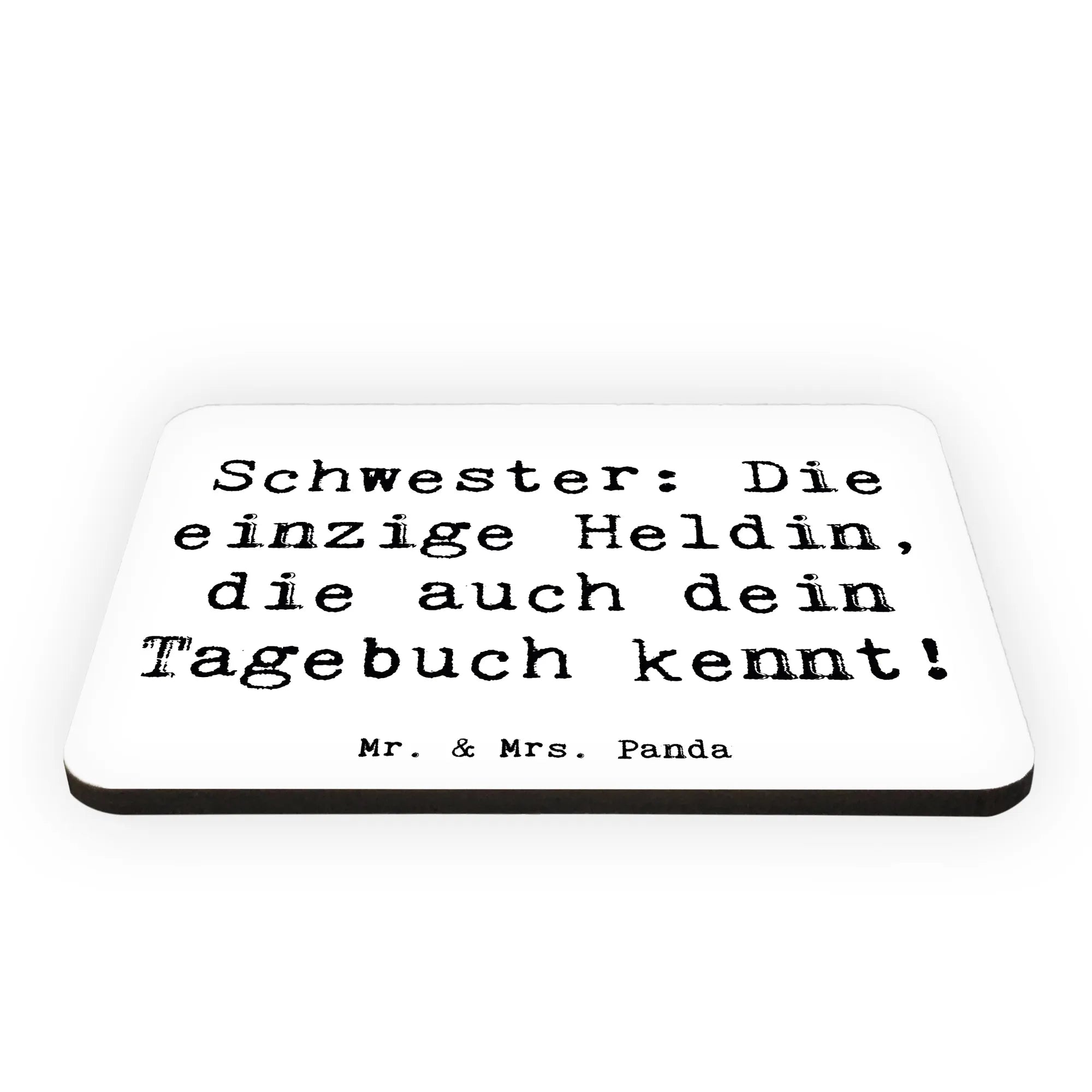 Der Kühlschrankmagnet "Schwester: Die einzige Heldin, die auch dein Tagebuch kennt!" aus der einzigartigen Familie & Verwandte Kollektion von Mr. & Mrs. Panda ist mehr als nur ein praktisches Deko-Element – er feiert die besondere Verbindung zu deiner Schwester. Jede Schwester hat eine einzigartige Beziehung zu ihren Geschwistern, die durch gemeinsame Erlebnisse, Geheimnisse und viel Lachen geprägt ist.