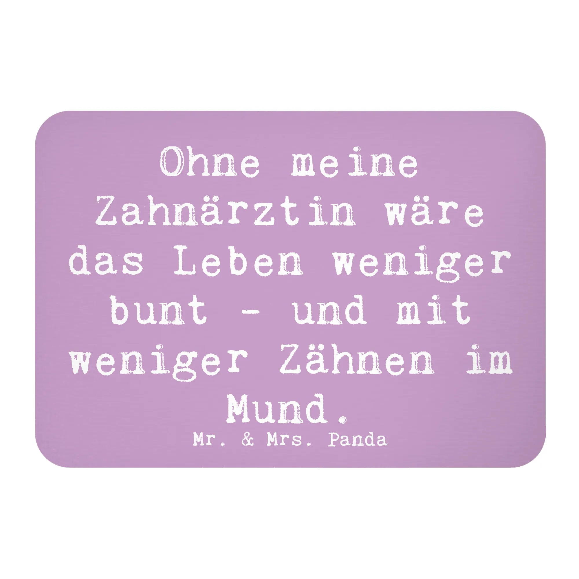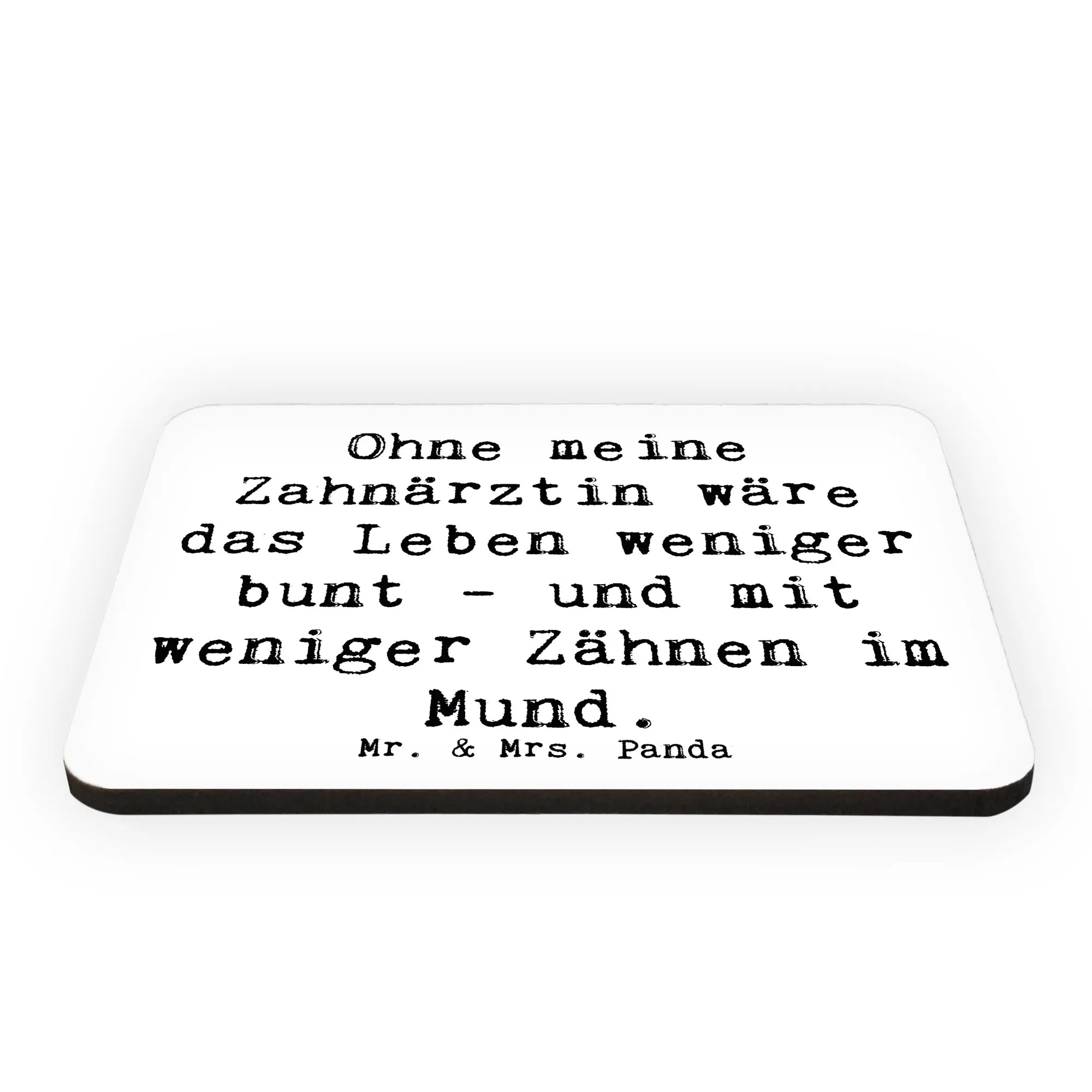 Suchst Du nach einem besonderen Geschenk für Deine Zahnärztin oder vielleicht für jemanden, der in diesem wunderbaren Beruf arbeitet? Dann ist der Kühlschrankmagnet "Ohne meine Zahnärztin wäre das Leben weniger bunt - und mit weniger Zähnen im Mund." von Mr. & Mrs. Panda genau das Richtige für Dich! Dieser Magnet verbindet Funktionalität mit Charme und bringt auf jede Pinnwand Schwung und Farbe.
