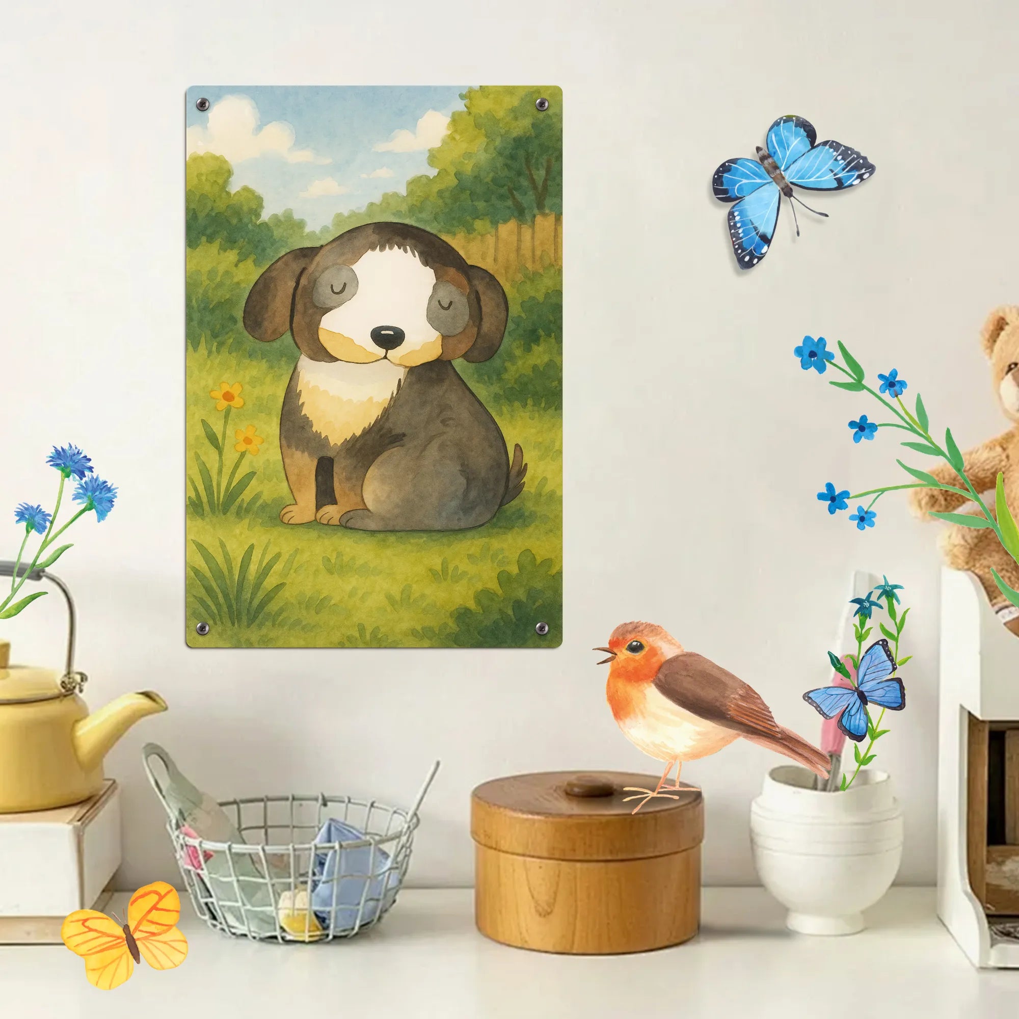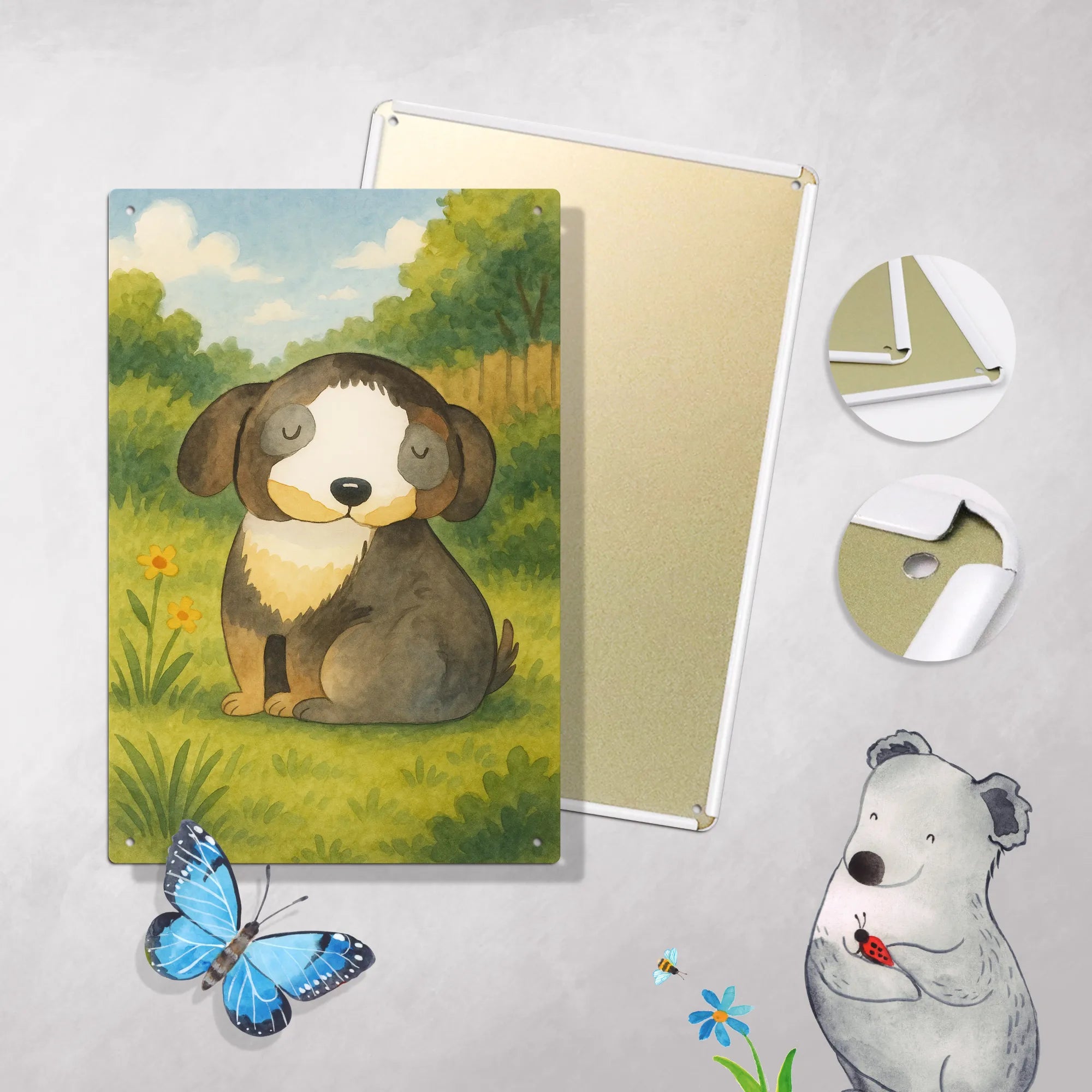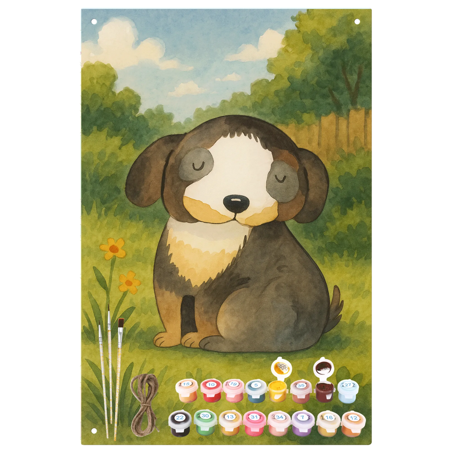 Malen nach Zahlen Metallschild Hund Entspannen Design