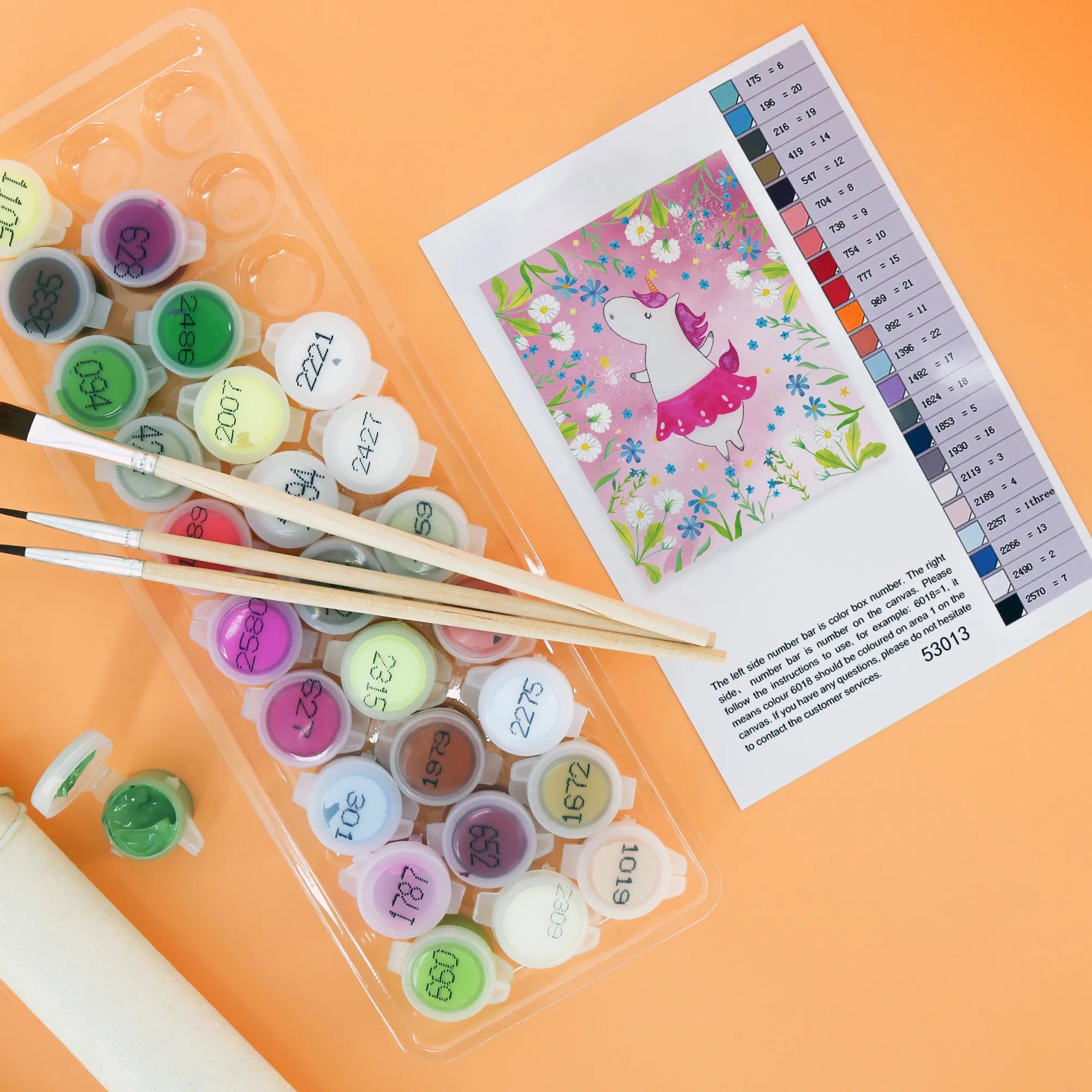 Jeder Pinselstrich lässt dich ein Stück tiefer in die zauberhafte Welt der Einhörner eintauchen und es ist eine großartige Möglichkeit, um Stress abzubauen und die eigene Kreativität zu revitalisieren. Der leuchtende Farbenmix sorgt dafür, dass dein Kunstwerk nach dem Malen lebendig und fröhlich aussieht. Die hochwertigen Acrylfarben sorgen dafür, dass deine Kreation auch nach längerem Ausstellen noch strahlend bleibt.