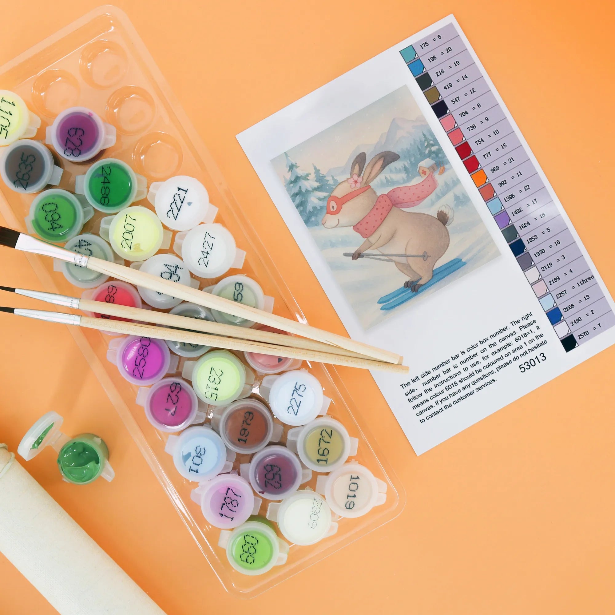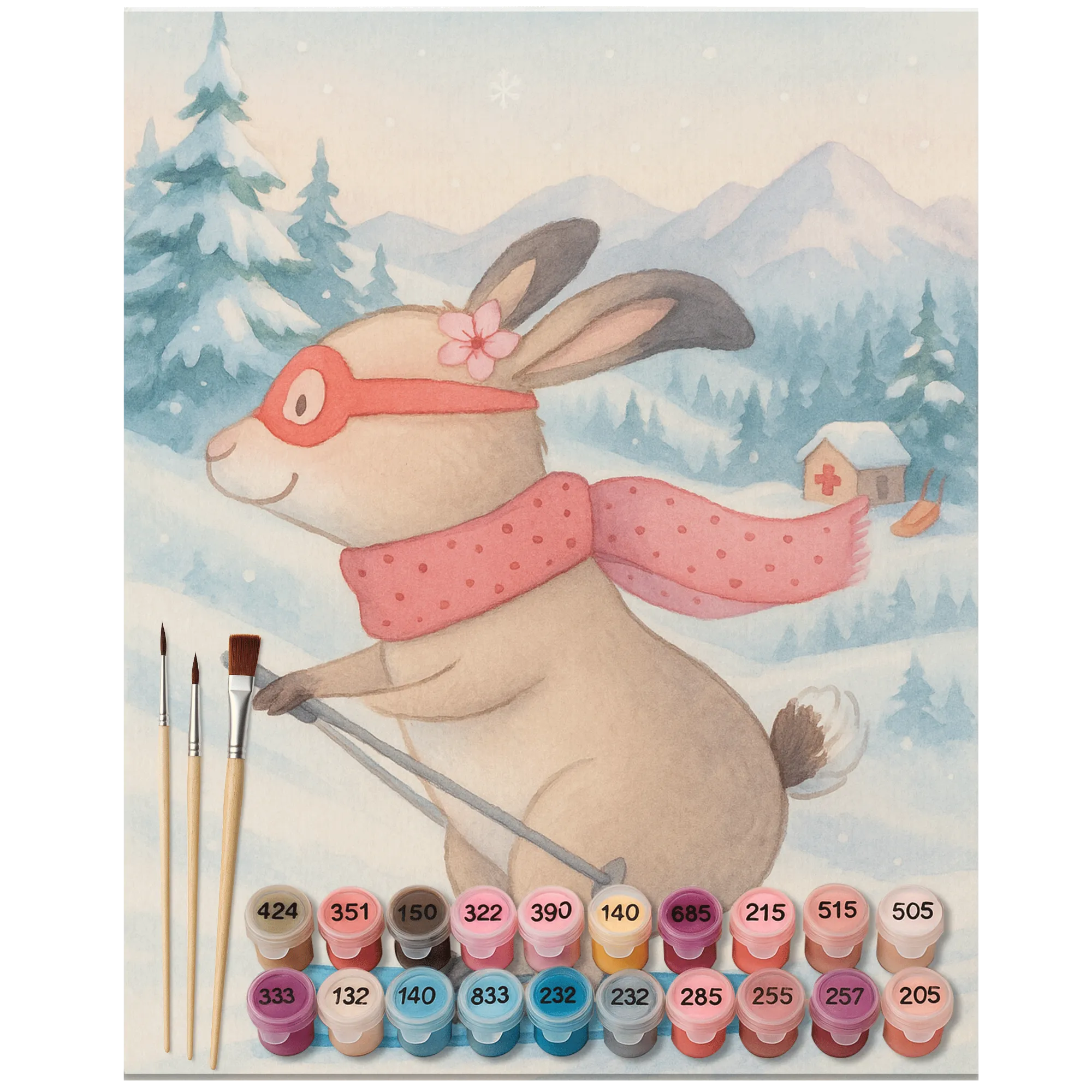 Malen nach Zahlen Hase Skifahren Design - Ohne Rahmen - 24 Farben (Standard)