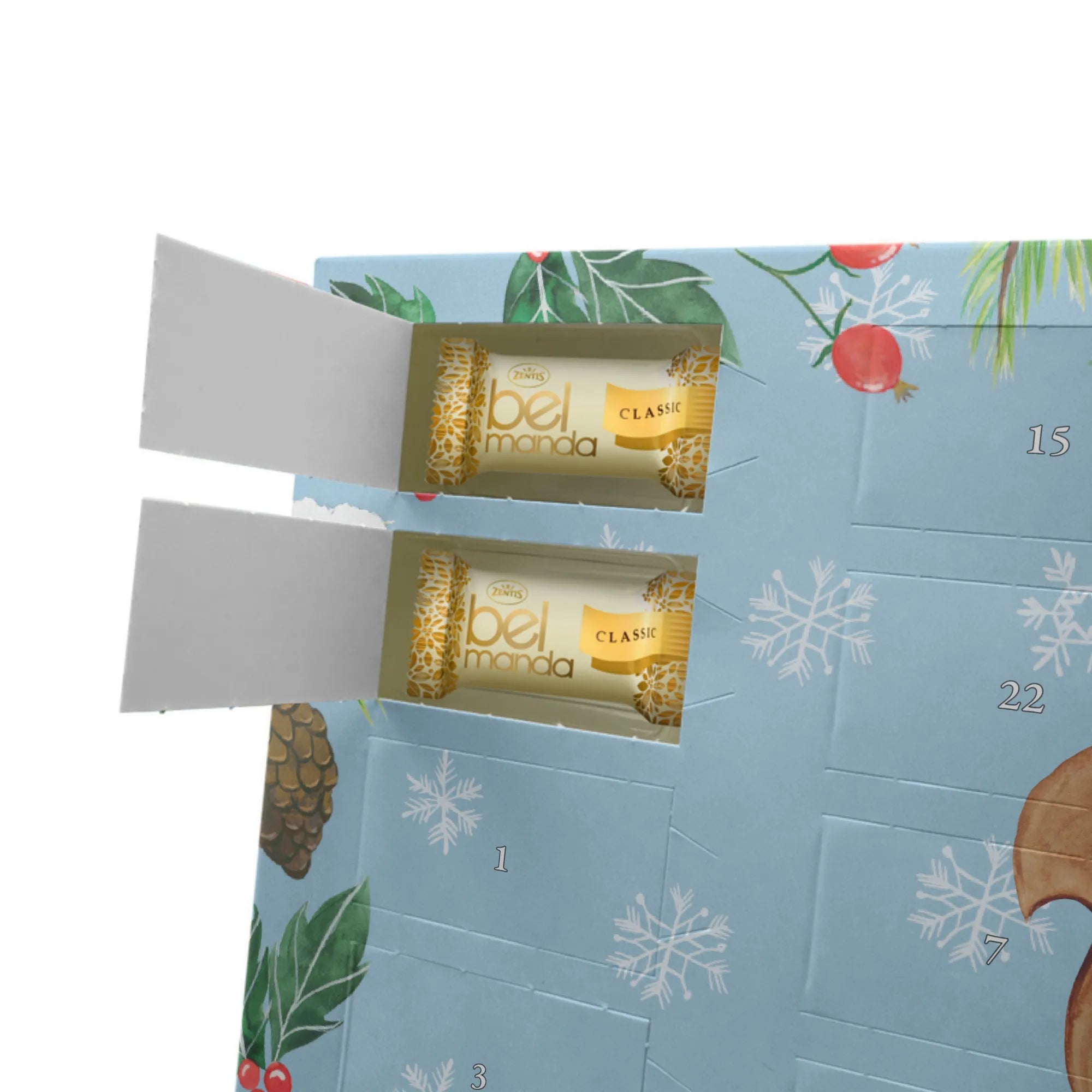 Marzipan Adventskalender Eichhörnchen Weihnachten - Blau Pastell
