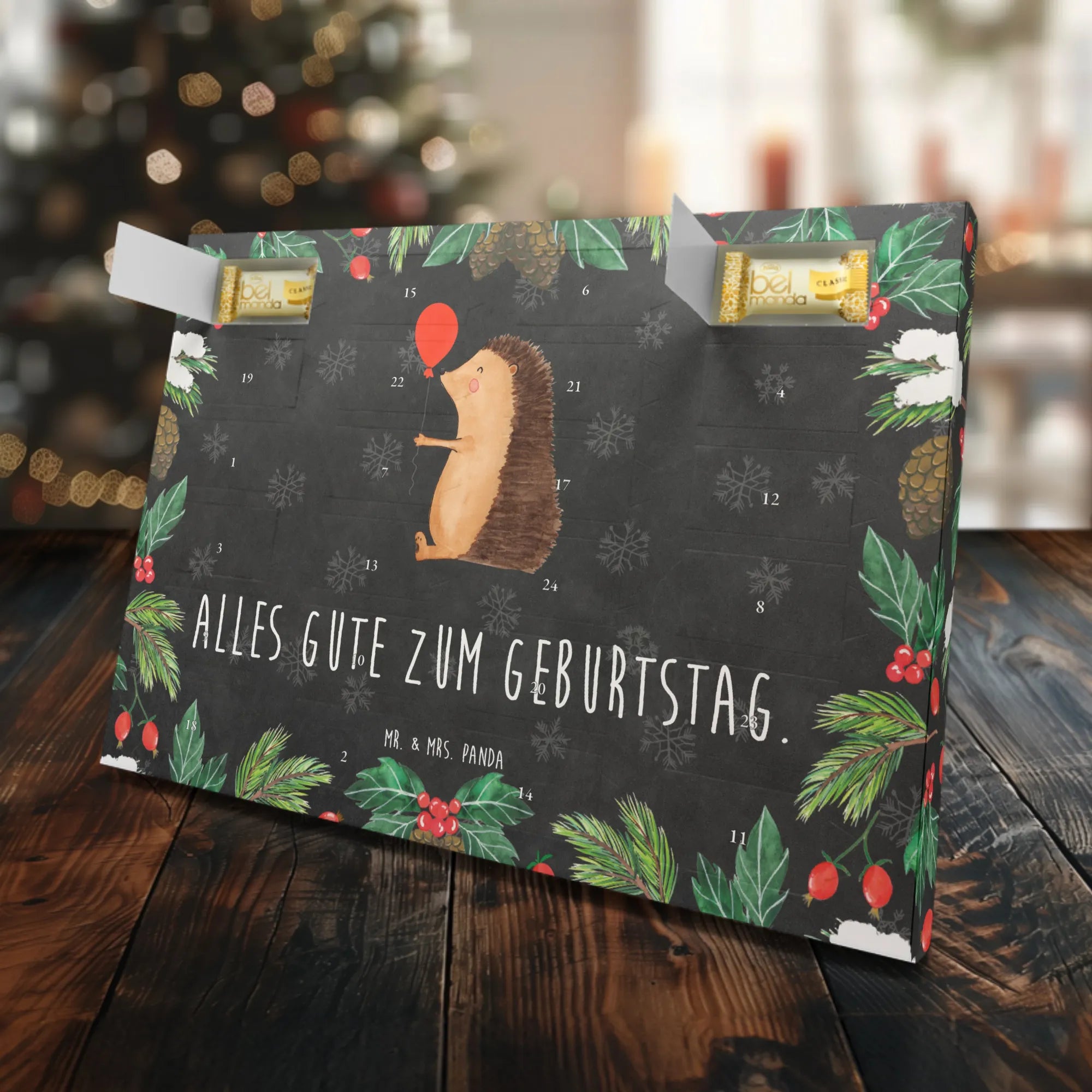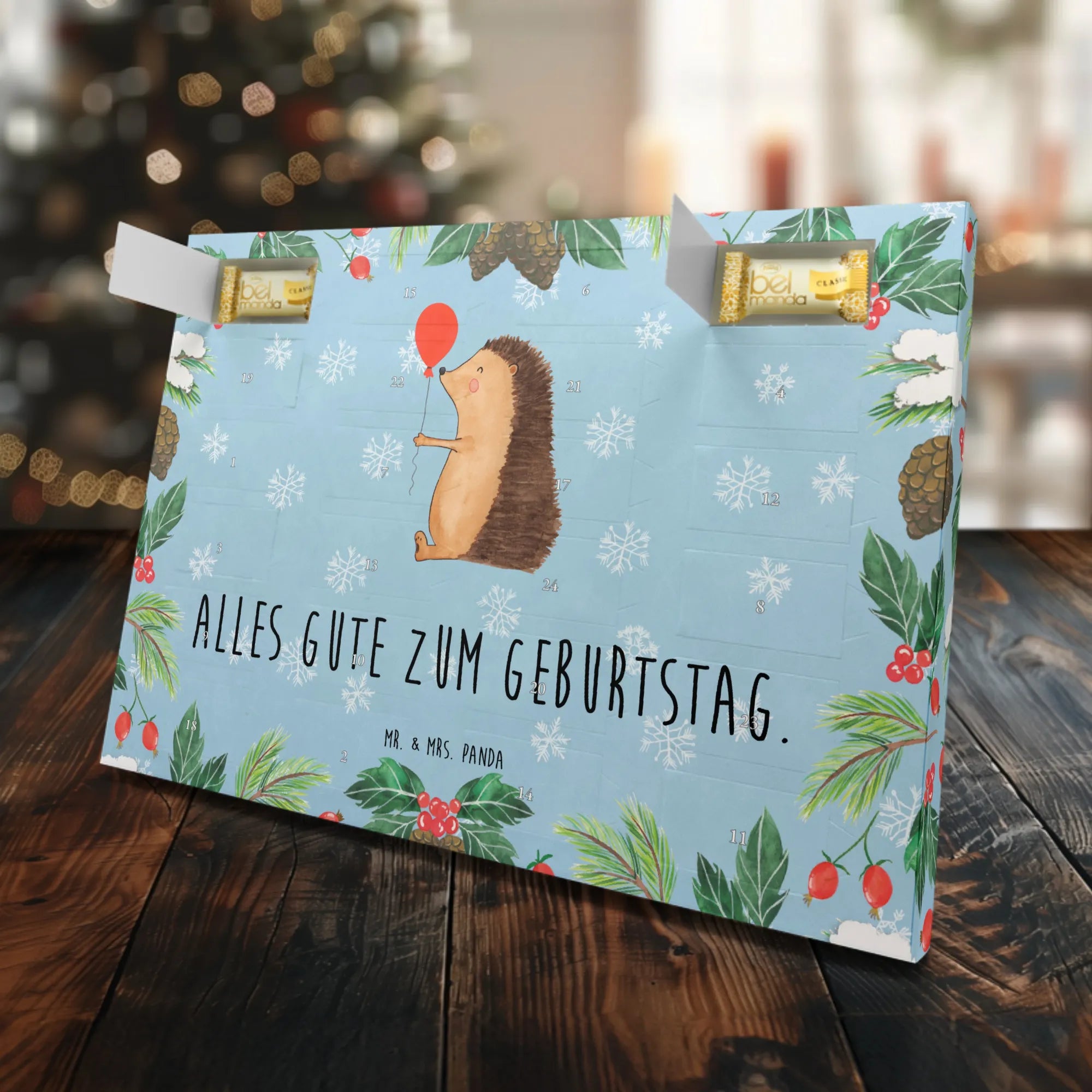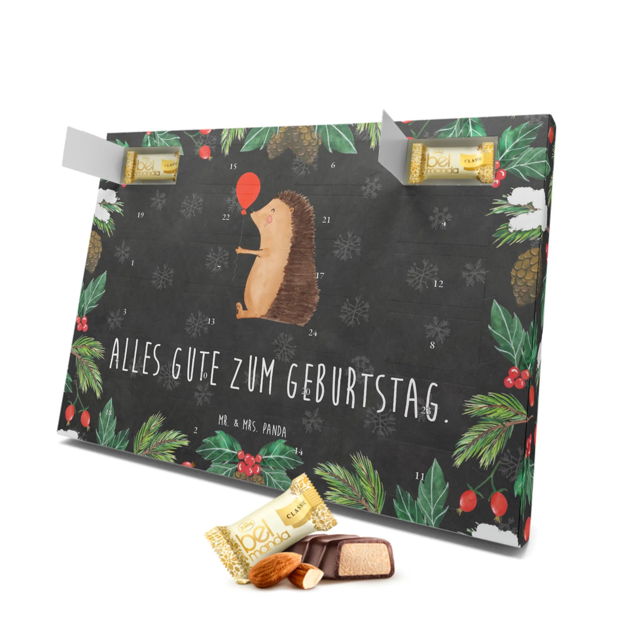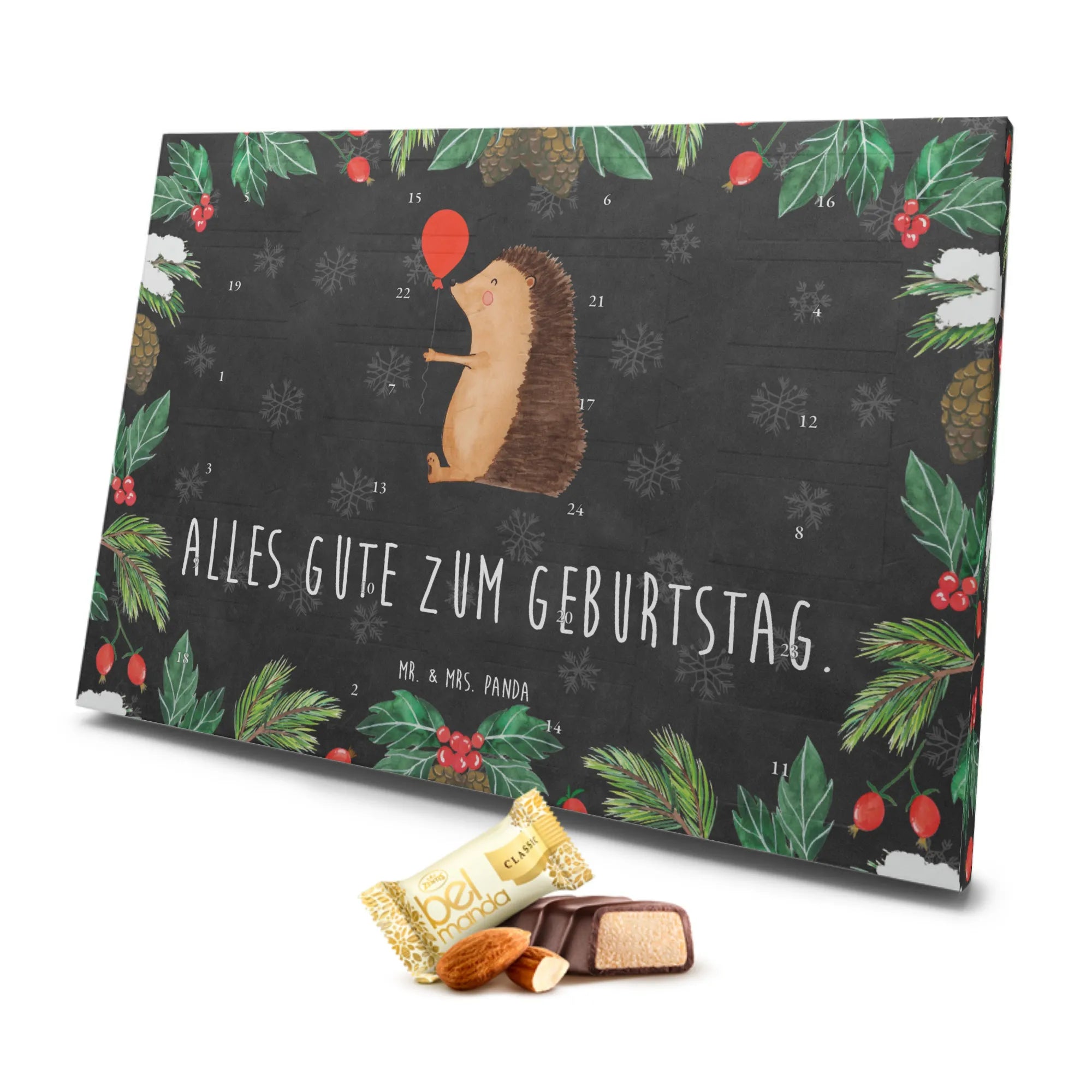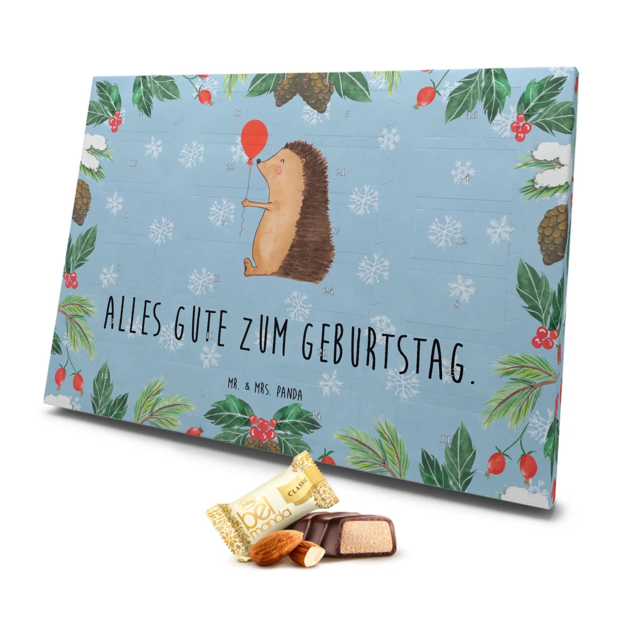 Der Marzipan Adventskalender "Igel mit Luftballon" von Mr. & Mrs. Panda ist das perfekte Geschenk für alle, die das Besondere lieben. Mit seinem fröhlichen Motiven und einer liebevollen Botschaft "Alles Gute zum Geburtstag" ist er ideal für Geburtstagsüberraschungen. Die süße Illustration des Igels, der glücklich einen Luftballon schwingt, bringt garantiert gute Laune und zaubert jedem ein Lächeln aufs Gesicht.