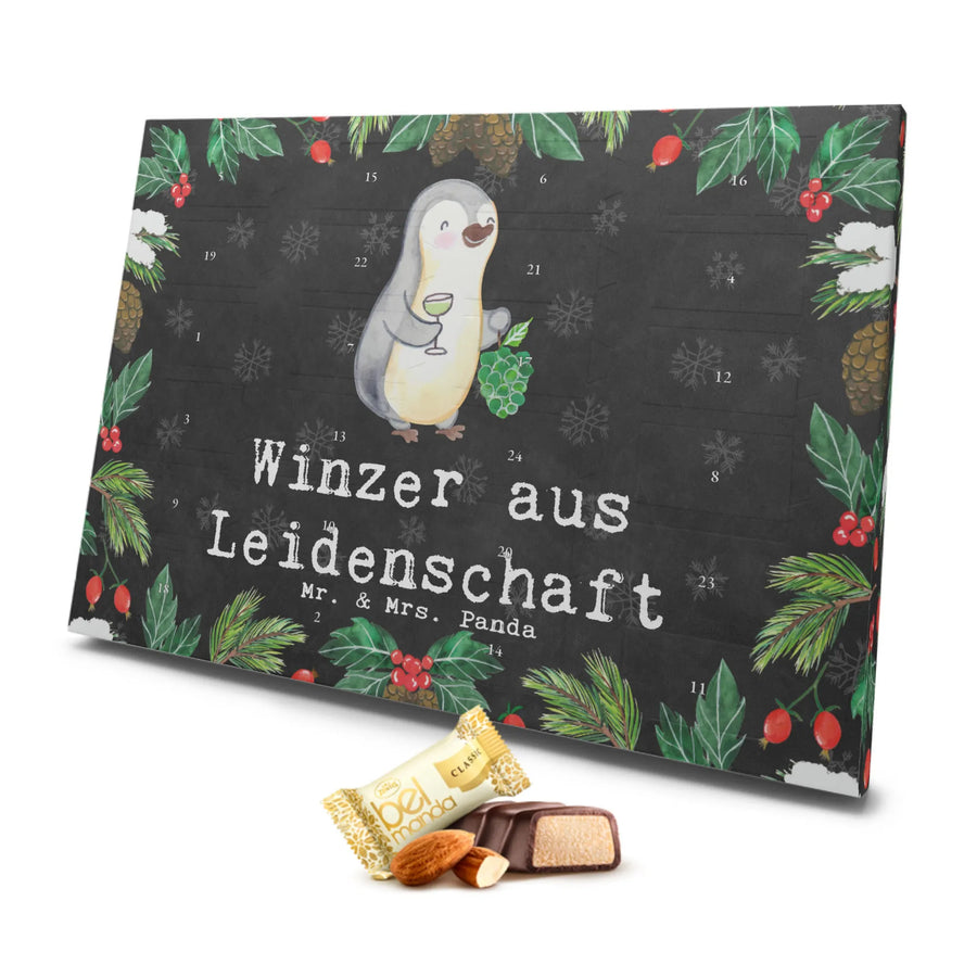 Die liebevoll gestaltete Verpackung zeigt einen fröhlichen Pinguin, der stolz Weintrauben und ein gefülltes Glas Wein in den Händen hält. Mit dem Slogan "Winzer aus Leidenschaft" ist dieser Kalender nicht nur eine leckere Überraschung, sondern auch eine wunderbare Möglichkeit, Wertschätzung und Dank an Kollegen, Mitarbeiter oder Freunde auszudrücken.