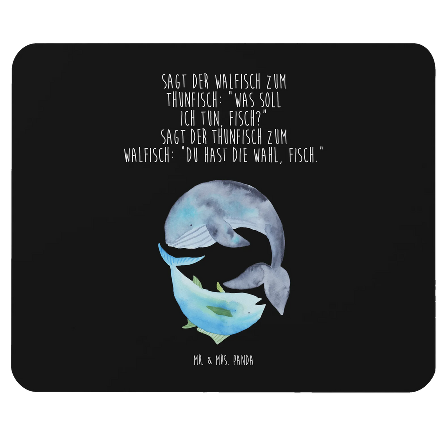 Wenn Du auf der Suche nach einem einzigartigen Mauspad bist, das nicht nur funktional, sondern auch unglaublich charmant ist, dann ist das Mauspad mit dem Motiv Walfisch & Thunfisch aus der Small World Kollektion von Mr. & Mrs. Panda genau das richtige für Dich! Mit der originellen Spruchillustration "Sagt der Walfisch zum Thunfisch: “Was soll ich tun, Fisch?” Sagt der Thunfisch zum Walfisch: “Du hast die Wahl, Fisch." bringt es eine gehörige Portion Humor an Deinen Arbeitsplatz.