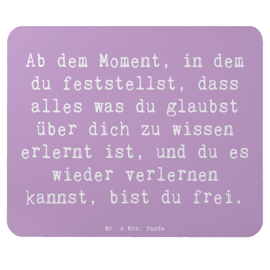 Das Mauspad "Erleuchtung" von Mr. & Mrs. Panda ist mehr als nur ein praktisches Büroaccessoire – es ist ein täglicher Begleiter, der dein Arbeitsumfeld erhellt und motiviert! Wenn du der Art von Person bist, die Inspiration in jedem Detail sucht, dann ist dieses liebevoll gestaltete Mauspad genau das Richtige für dich. Mit dem inspirierenden Spruch: "Ab dem Moment, in dem du feststellst, dass alles, was du glaubst, über dich zu wissen, erlernt ist, und du es wieder verlernen kannst, bist du frei." bietet es dir einen kleinen, aber bedeutenden Anstoß, dein Denken zu hinterfragen und dich in eine positive Stimmung zu versetzen.