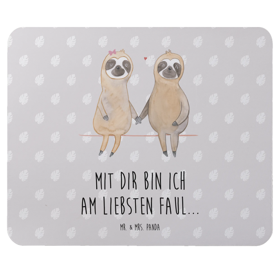 Mauspad Faultier Pärchen - mit Spruch - Grau Pastell