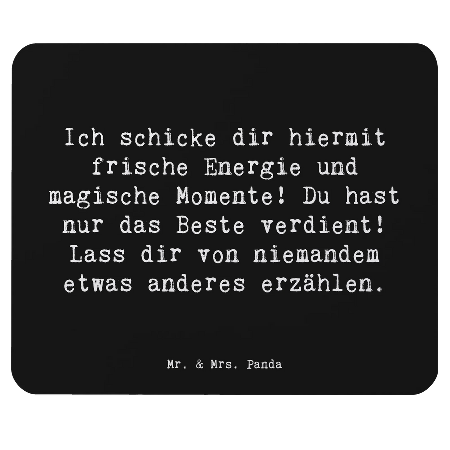 Mit einem Slogan, der besagt: "Ich schicke dir hiermit frische Energie und magische Momente! Du hast nur das Beste verdient! Lass dir von niemandem etwas anderes erzählen", bringt das Mauspad Freude nicht nur Farbe, sondern auch Motivation in deinen Arbeitsalltag. Ob du es dir selbst gönnst oder es einem lieben Menschen zum Geburtstag, zu Weihnachten oder einfach so schenkst, es wird garantiert ein Lächeln hervorrufen.