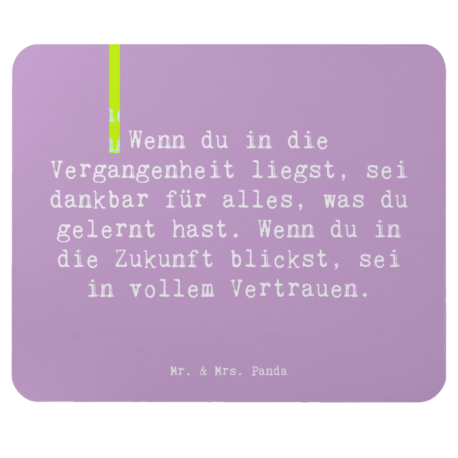 Das Mauspad wird aus hochwertigem Zellkautschuk in Deutschland gefertigt und bietet eine rutschfeste und ergonomische Oberfläche. So wird das Arbeiten am Computer nicht nur einfacher, sondern auch gesünder für Deine Handgelenke. Die abriebfeste und feuchtigkeitsabweisende Beschichtung sorgt dafür, dass Du lange Freude an diesem Accessoire hast. Mache Deinen Arbeitsplatz zum Ort der Inspiration mit einem hübschen Spruch, der Dir stets ein Lächeln ins Gesicht zaubert: "Wenn du in die Vergangenheit liegst, sei dankbar für alles, was du gelernt hast. Wenn du in die Zukunft blickst, sei in vollem Vertrauen."